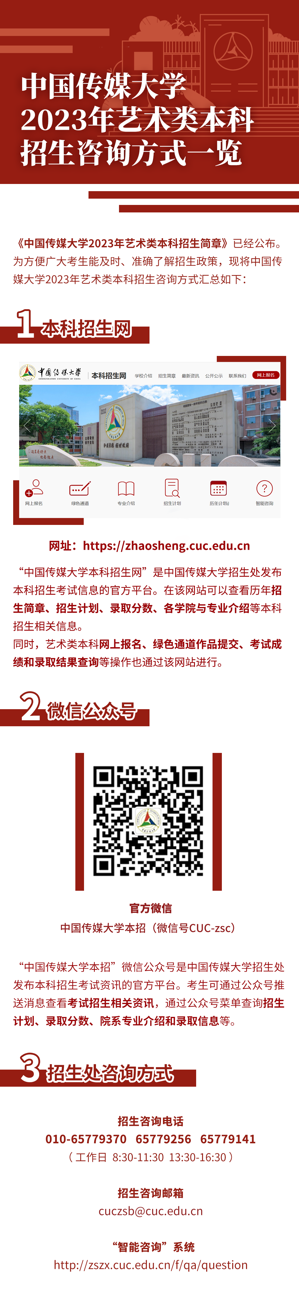 【一图读懂】中国传媒大学2023年艺术类本科招生咨询方式