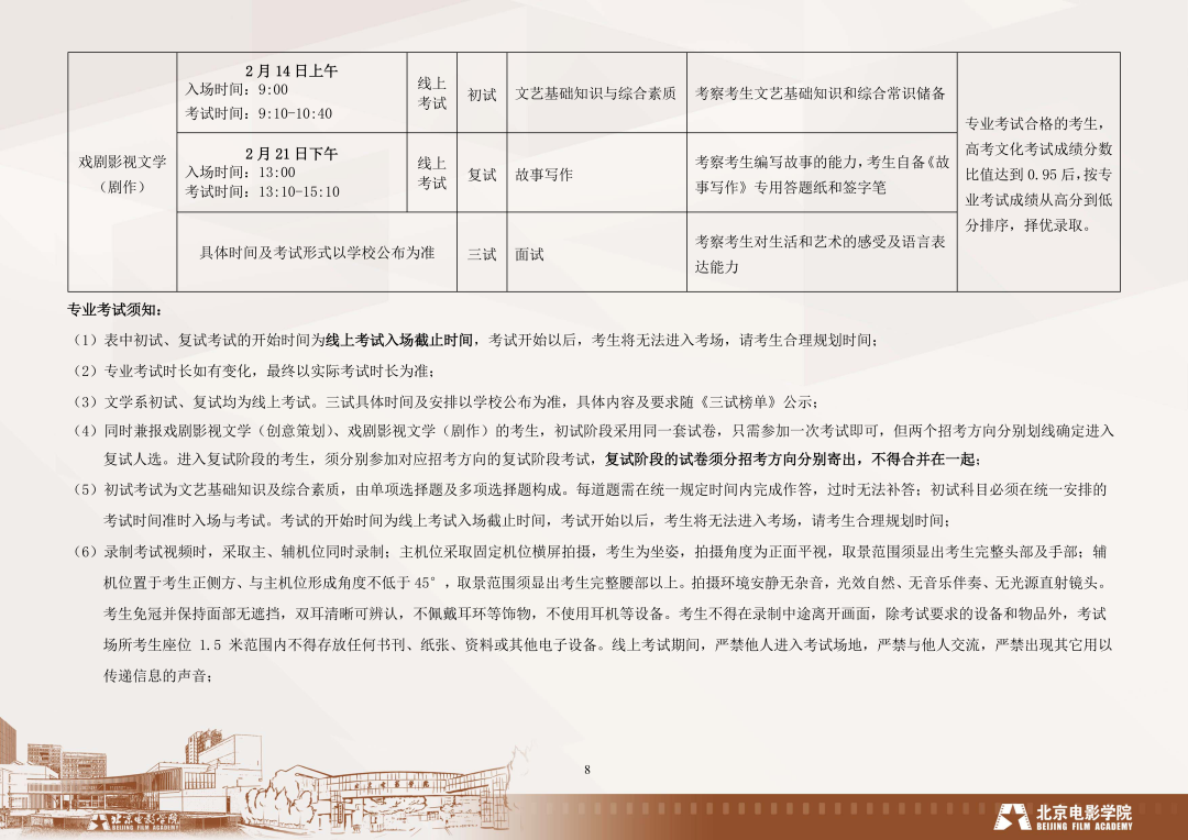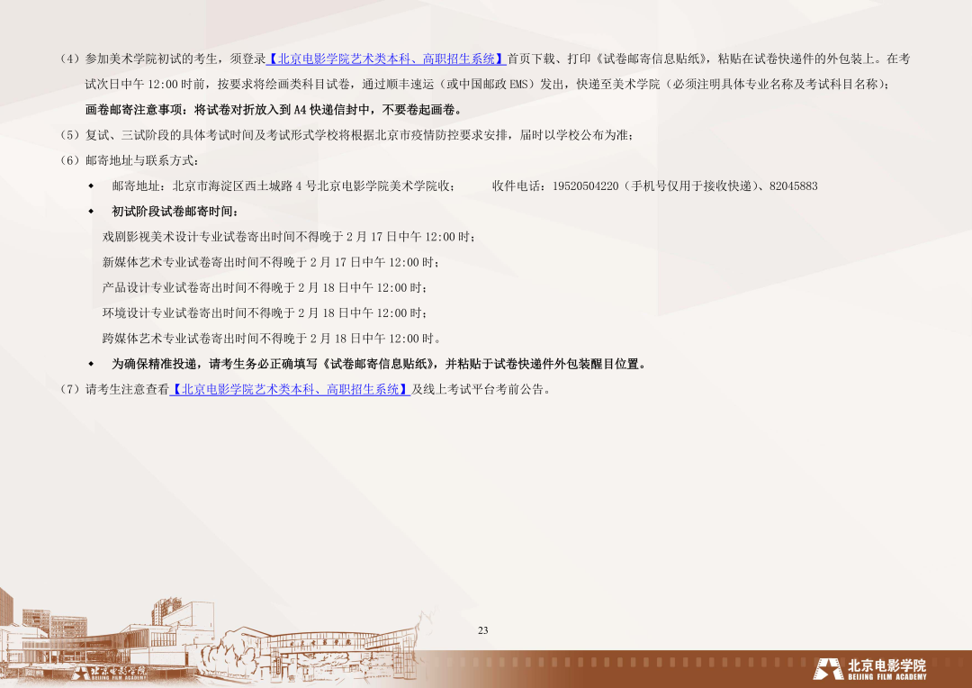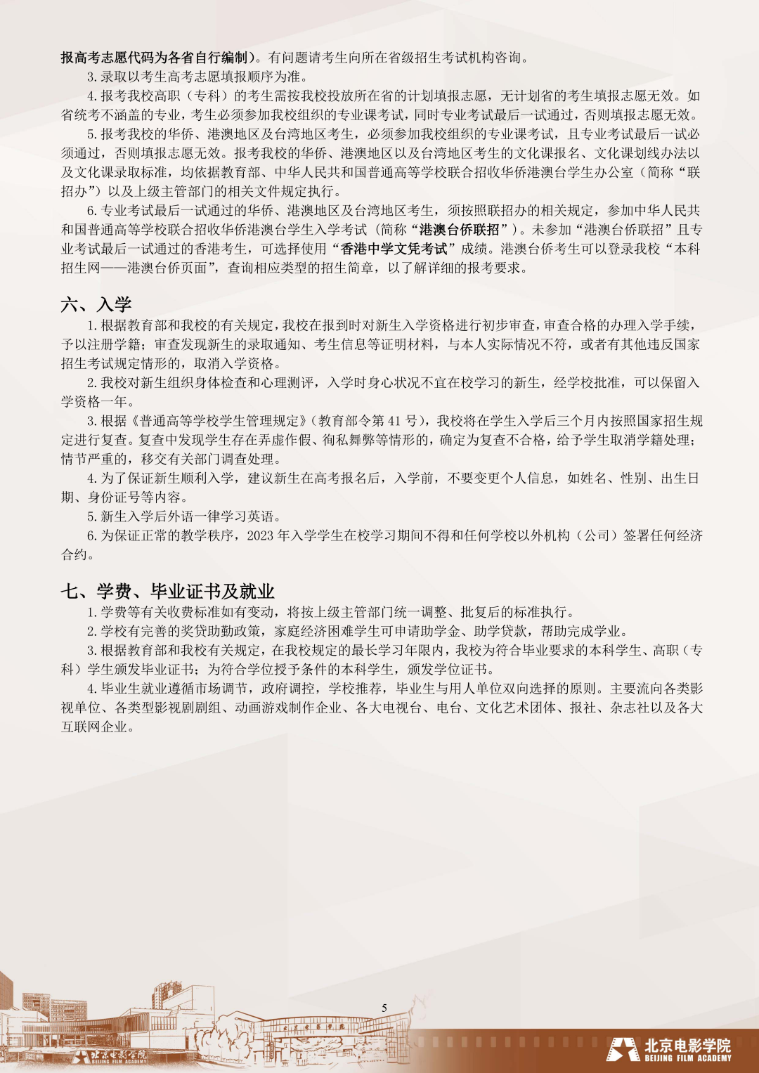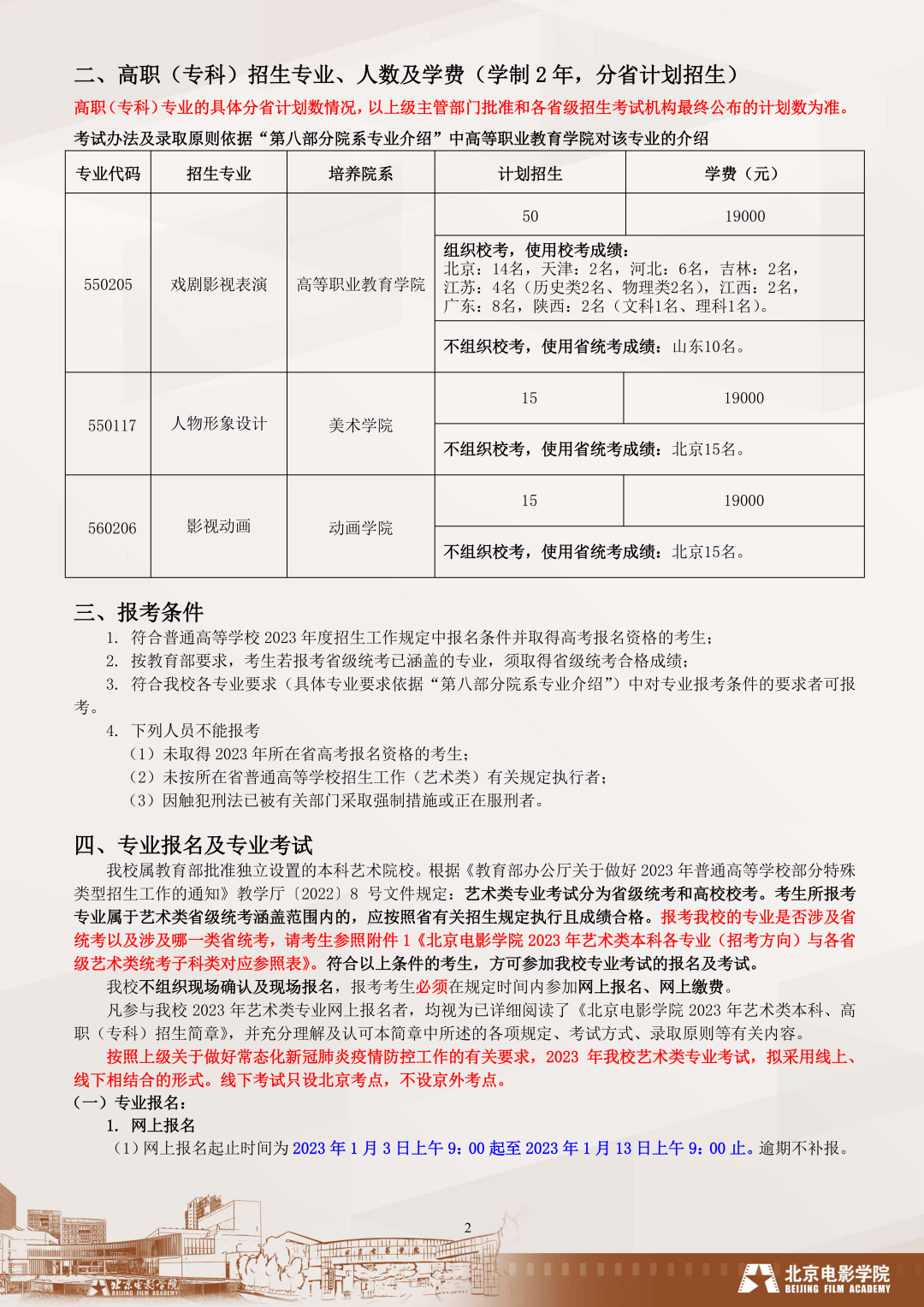 北京电影学院 2023 年艺术类本科、高职(专科)招生简章