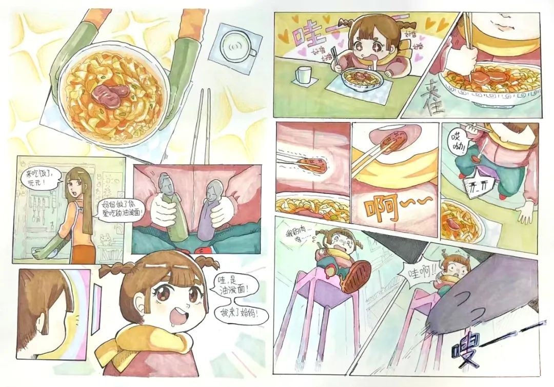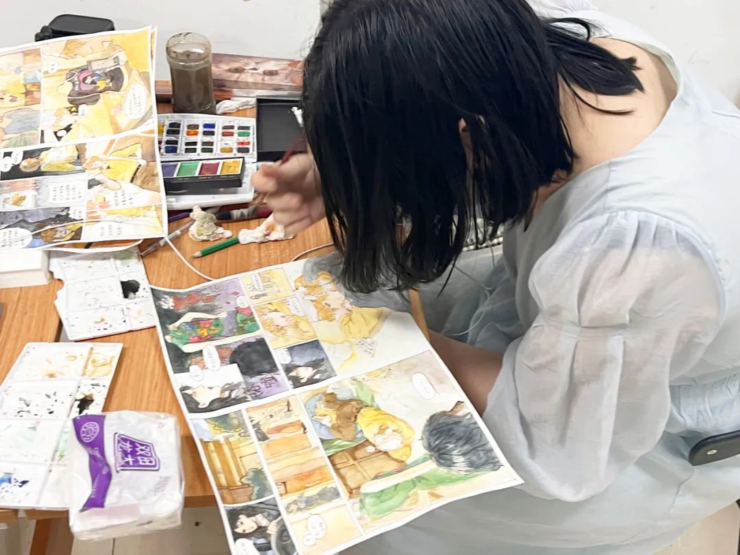 第一次尝试创作,我很难把自己想象的画面呈现出来,但老师会十分耐心地给我指导,激发了我很多灵感。在老师指导改画的过程中,我收获的最有价值的是创作的思维,老师想出的很妙的点子总让我回味良久。
