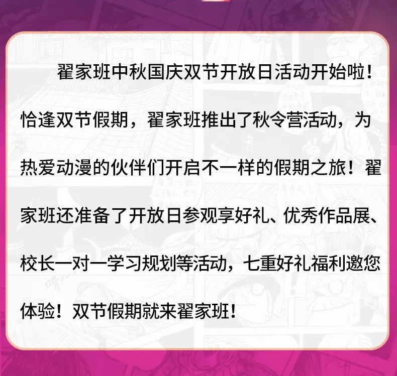 参观开放日丨双节同庆 首届动漫秋令营开课啦!这个假期就在翟家班!