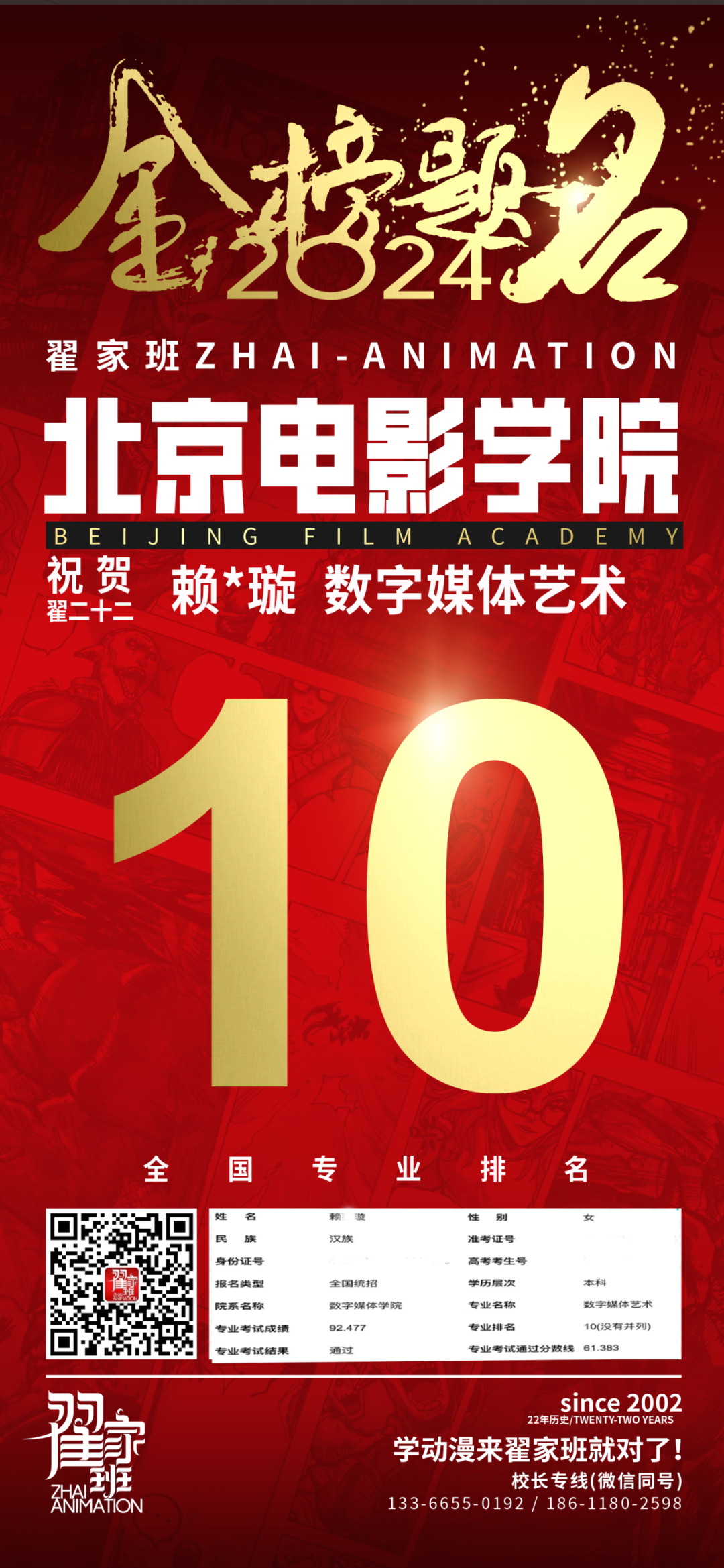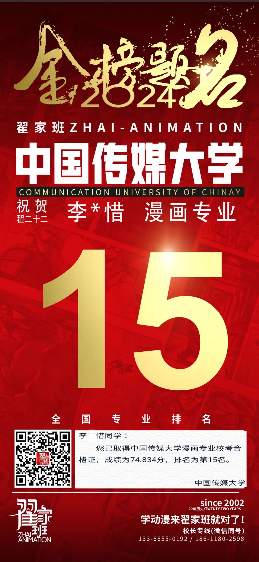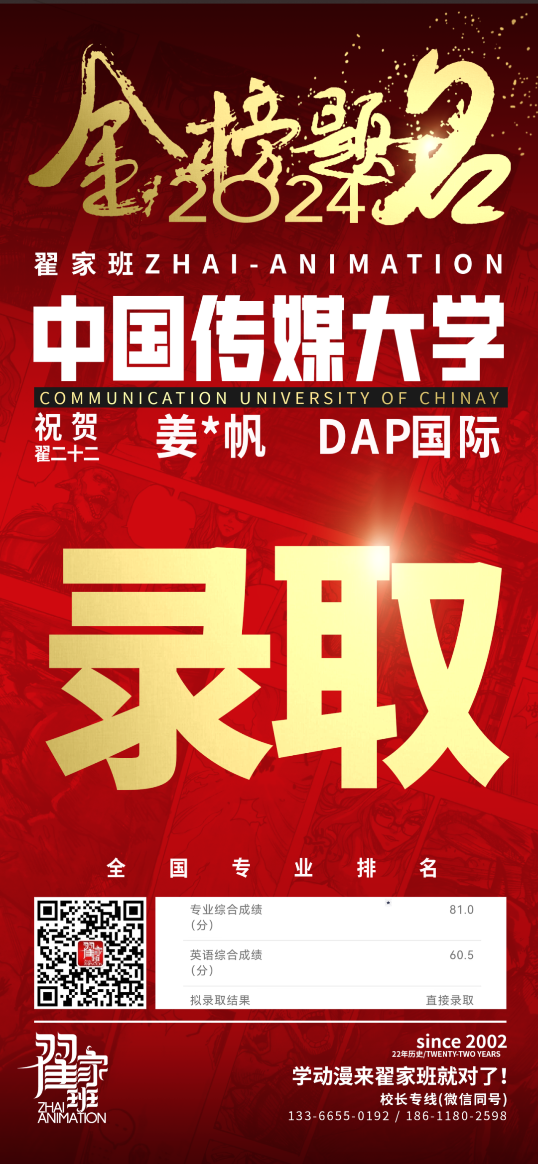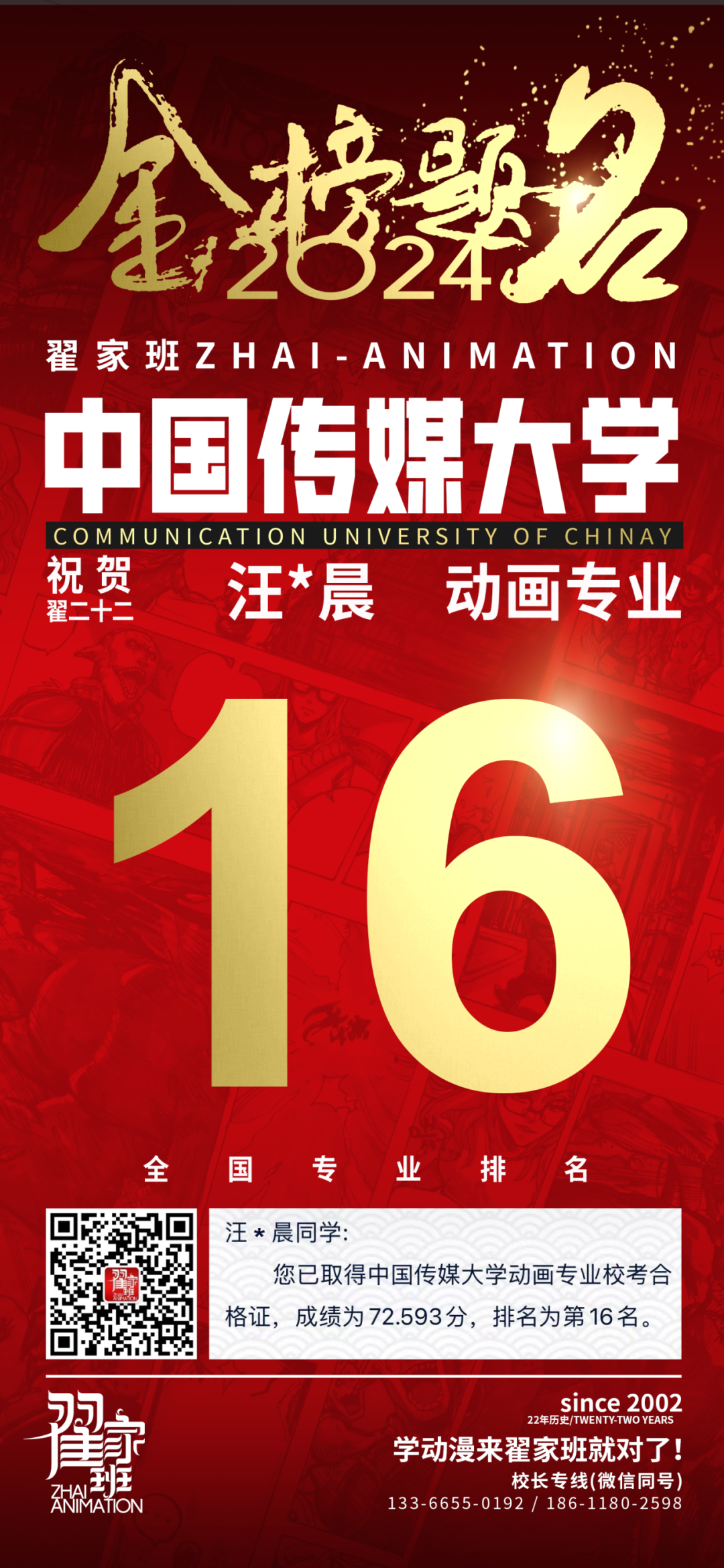 【荣耀战报】2024年动漫翟家班中传&北影校考大捷!