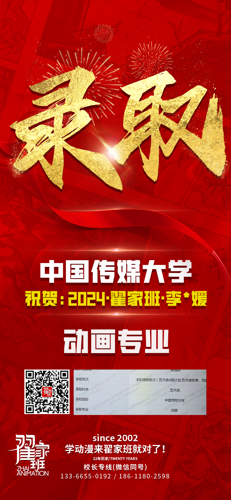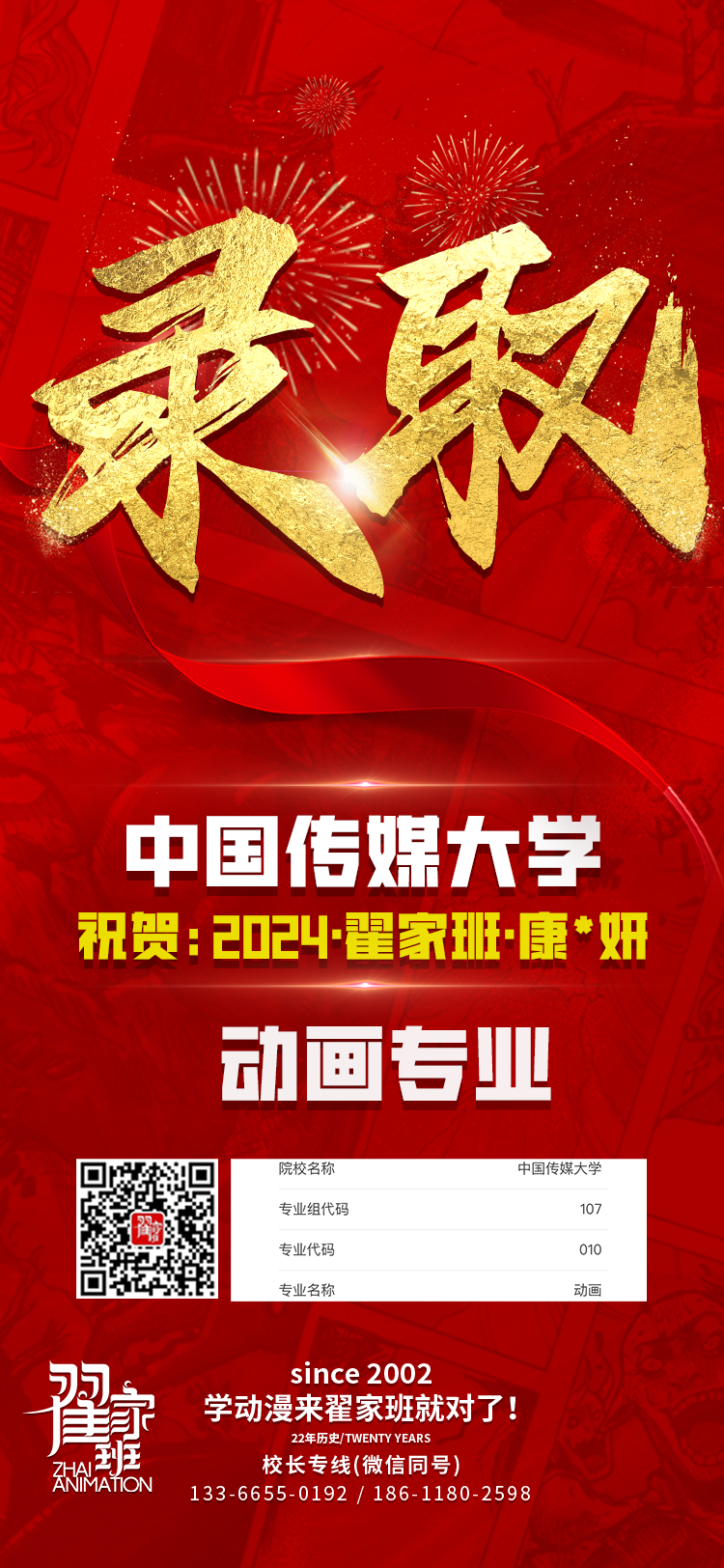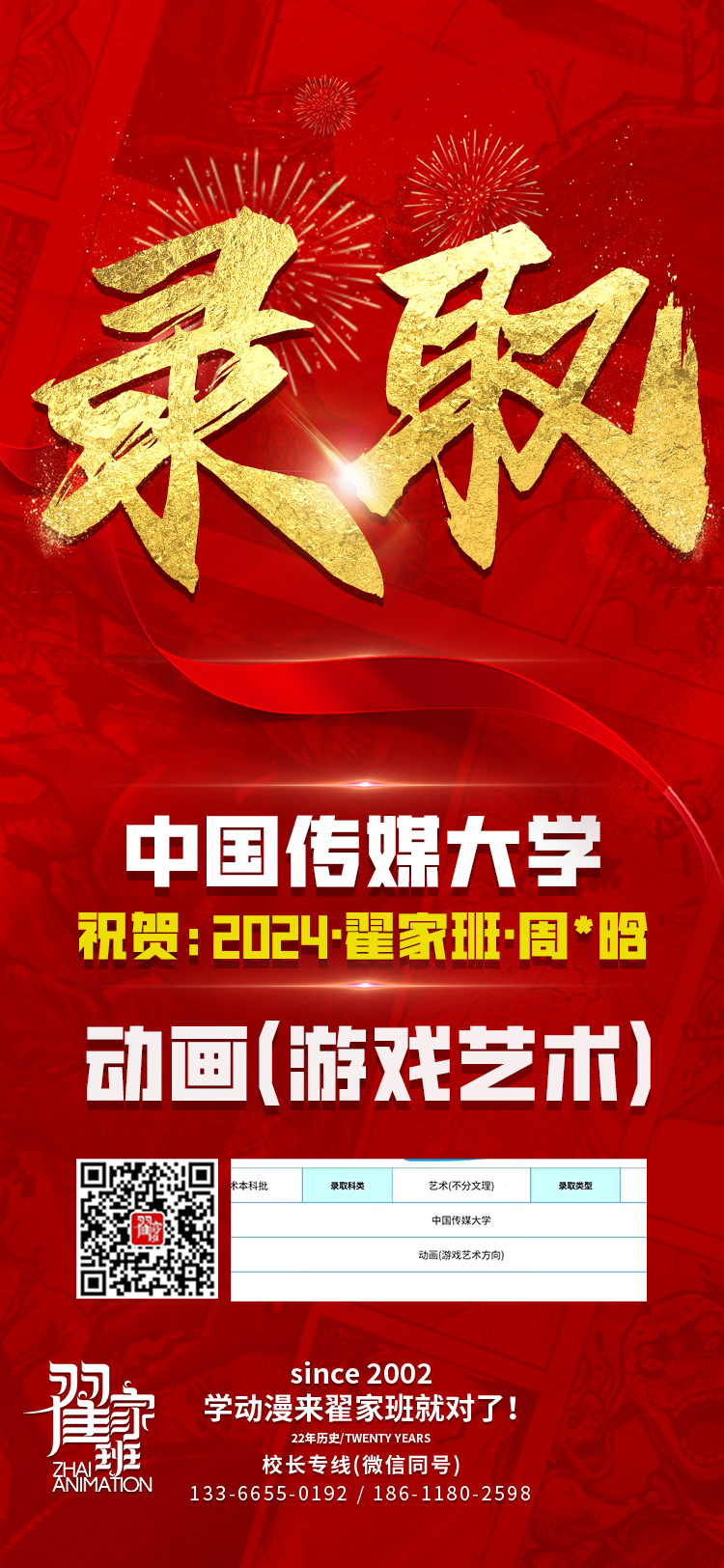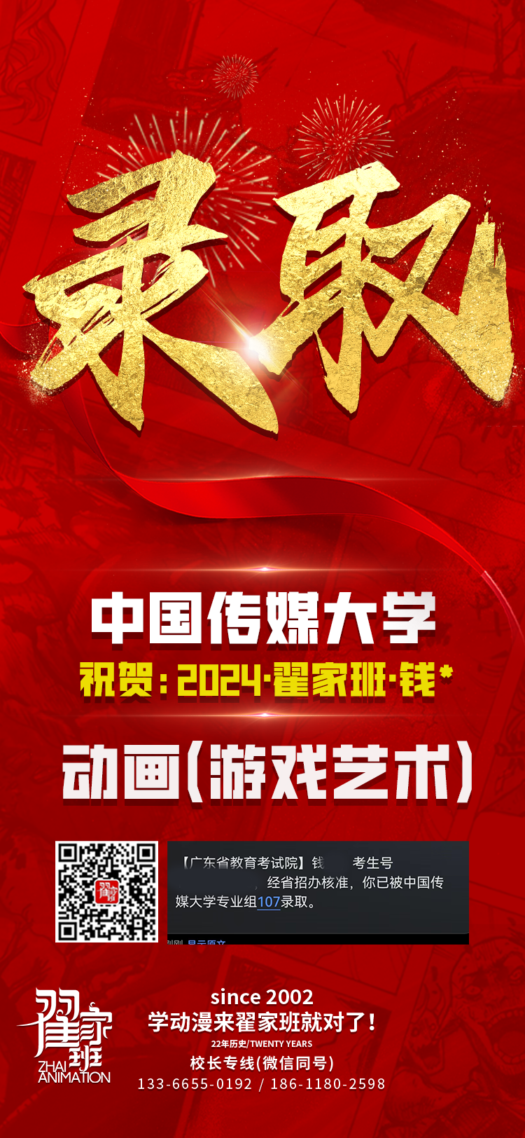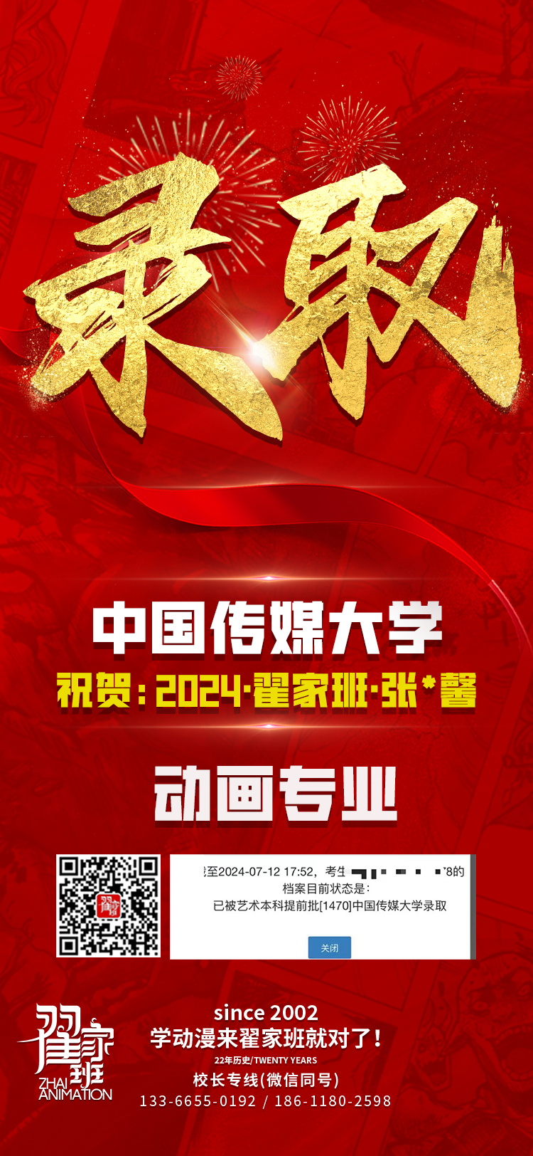 2024翟家班录取捷报丨连续三年中传北影录取率超1/3!王者实力再续辉煌战绩!