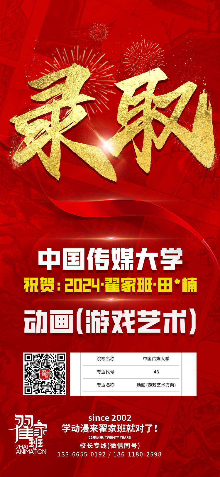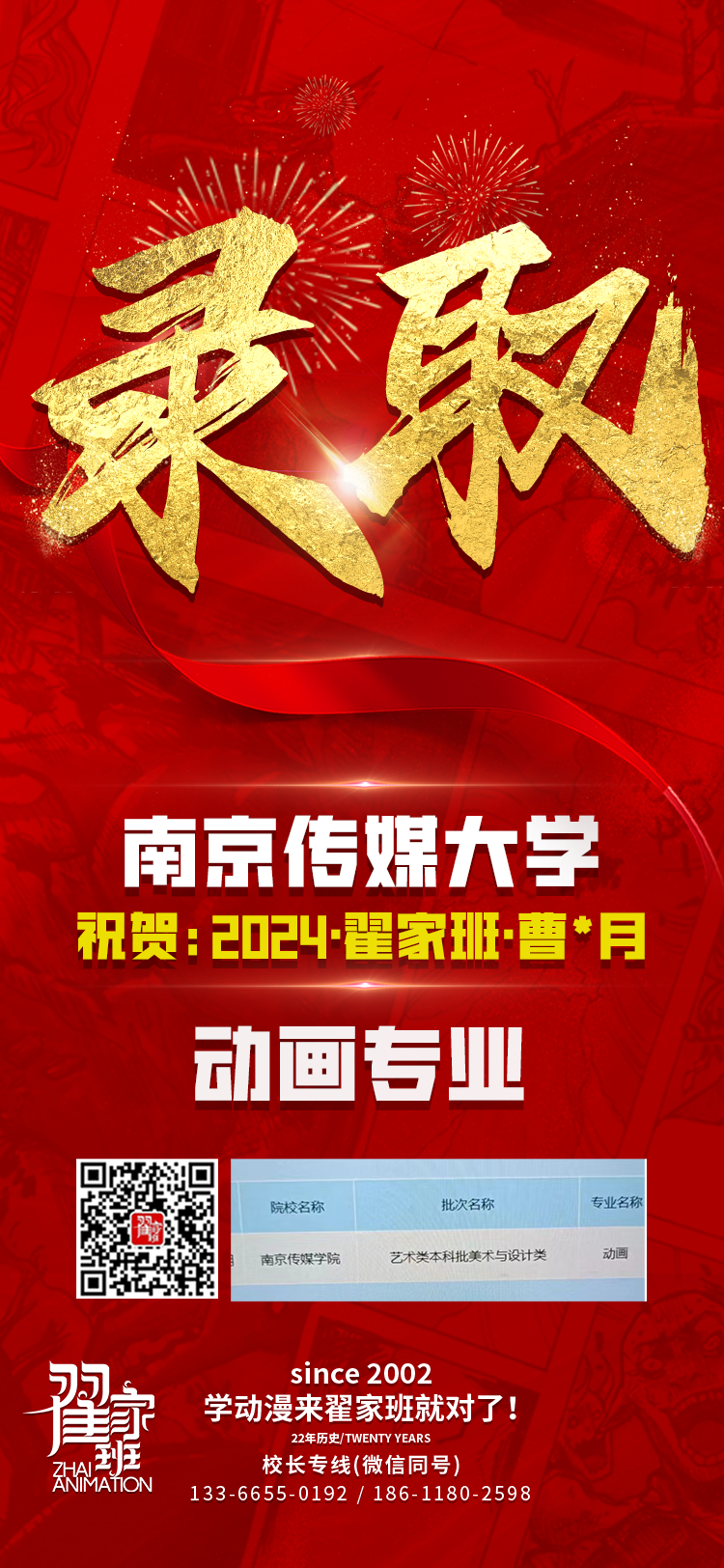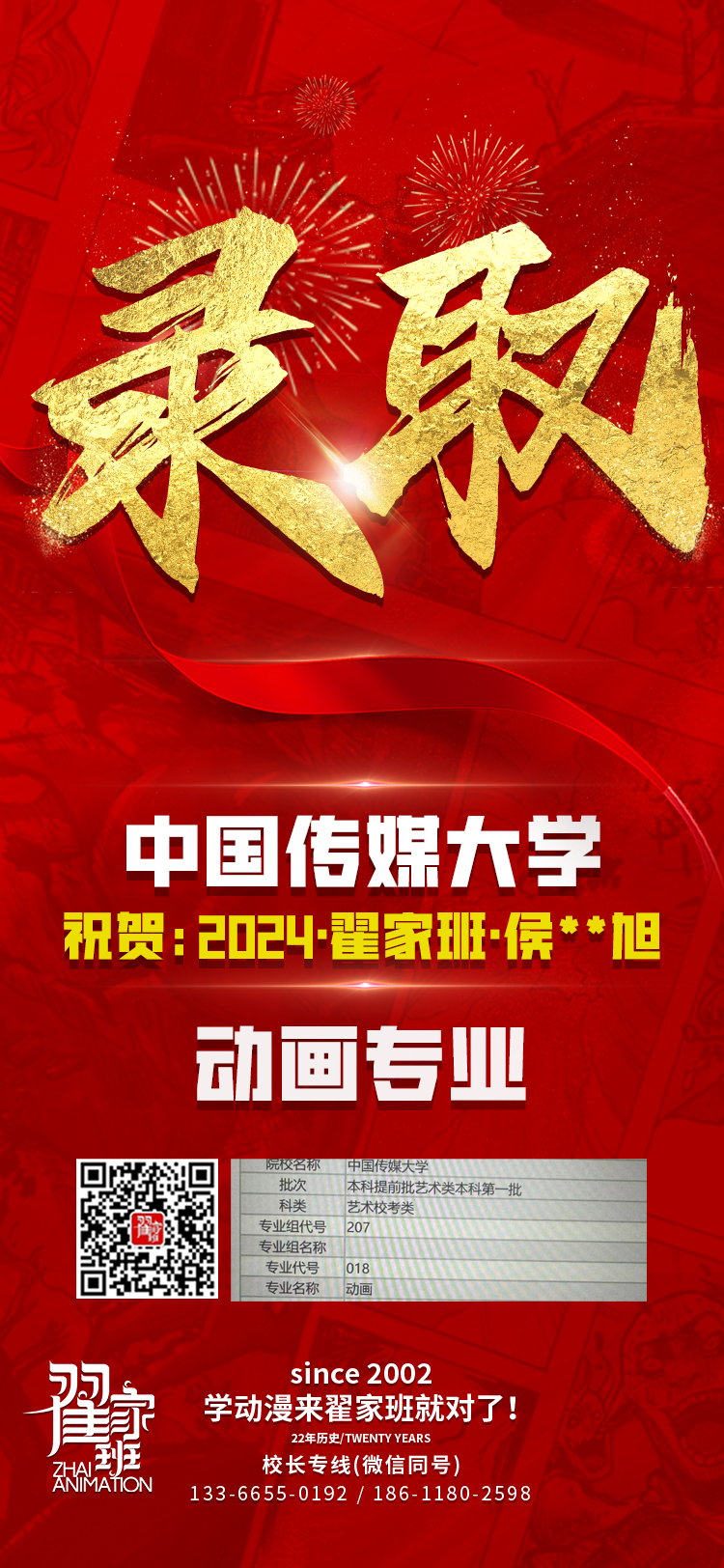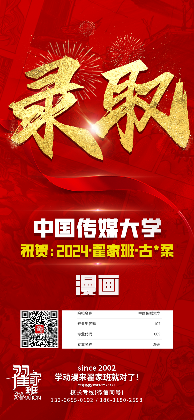 2024翟家班录取捷报丨连续三年中传北影录取率超1/3!王者实力再续辉煌战绩!
