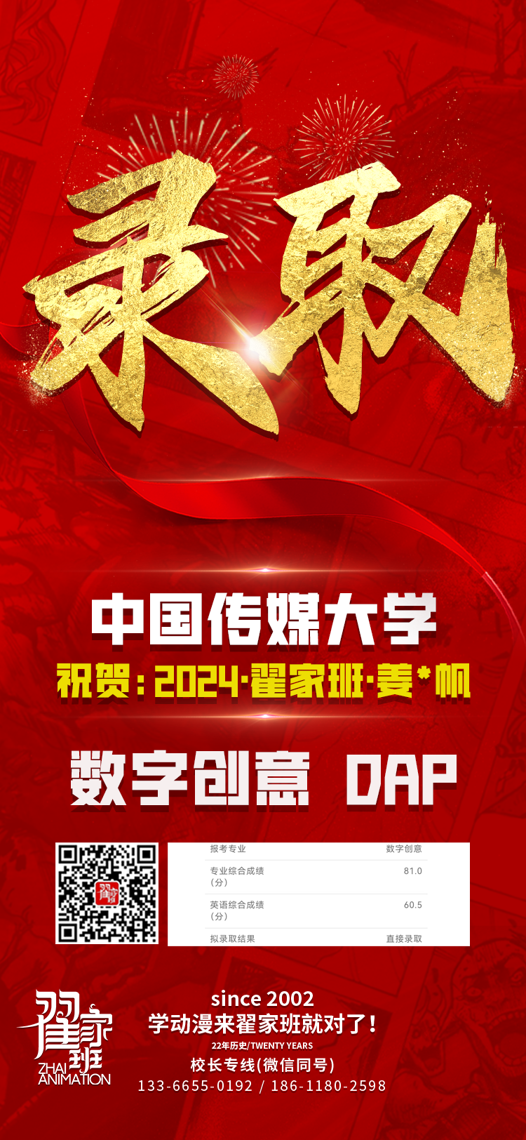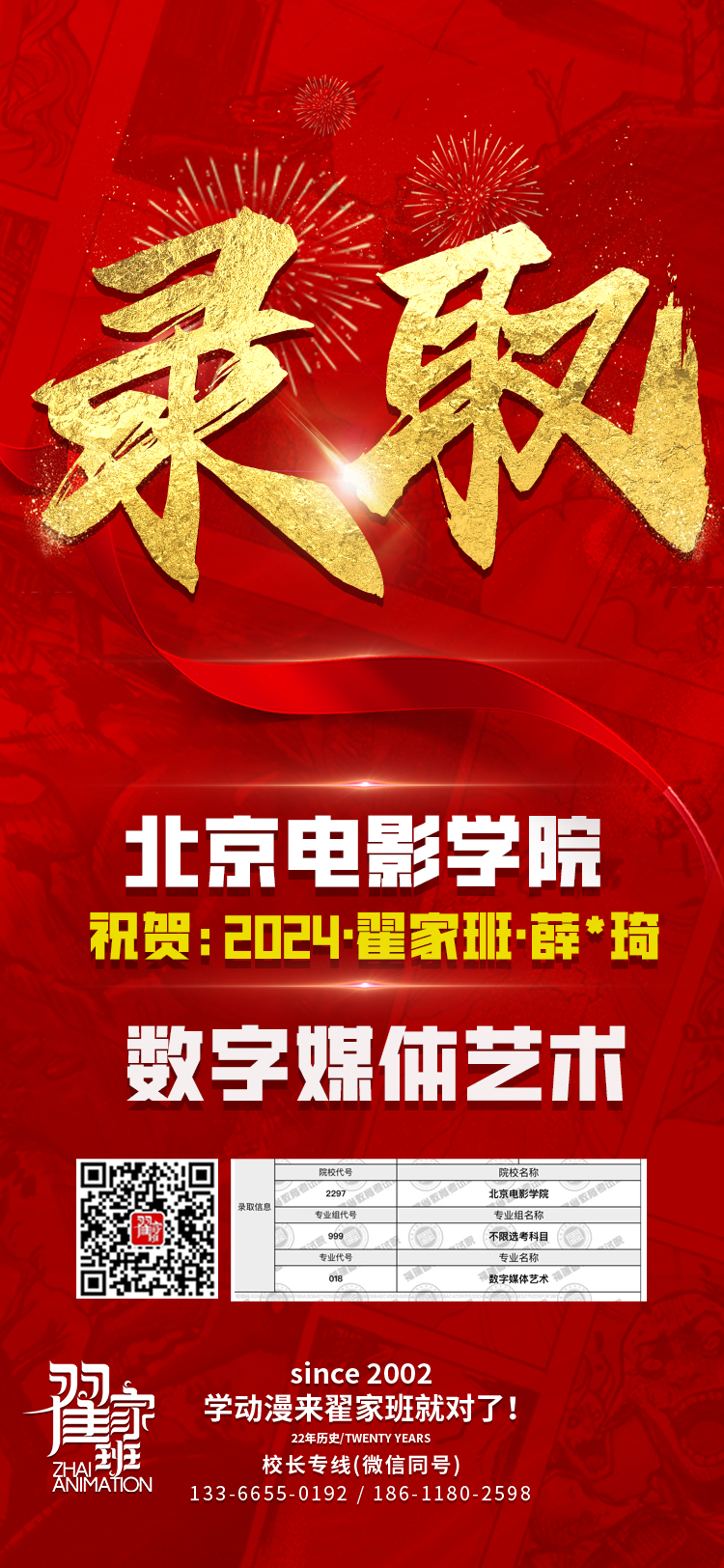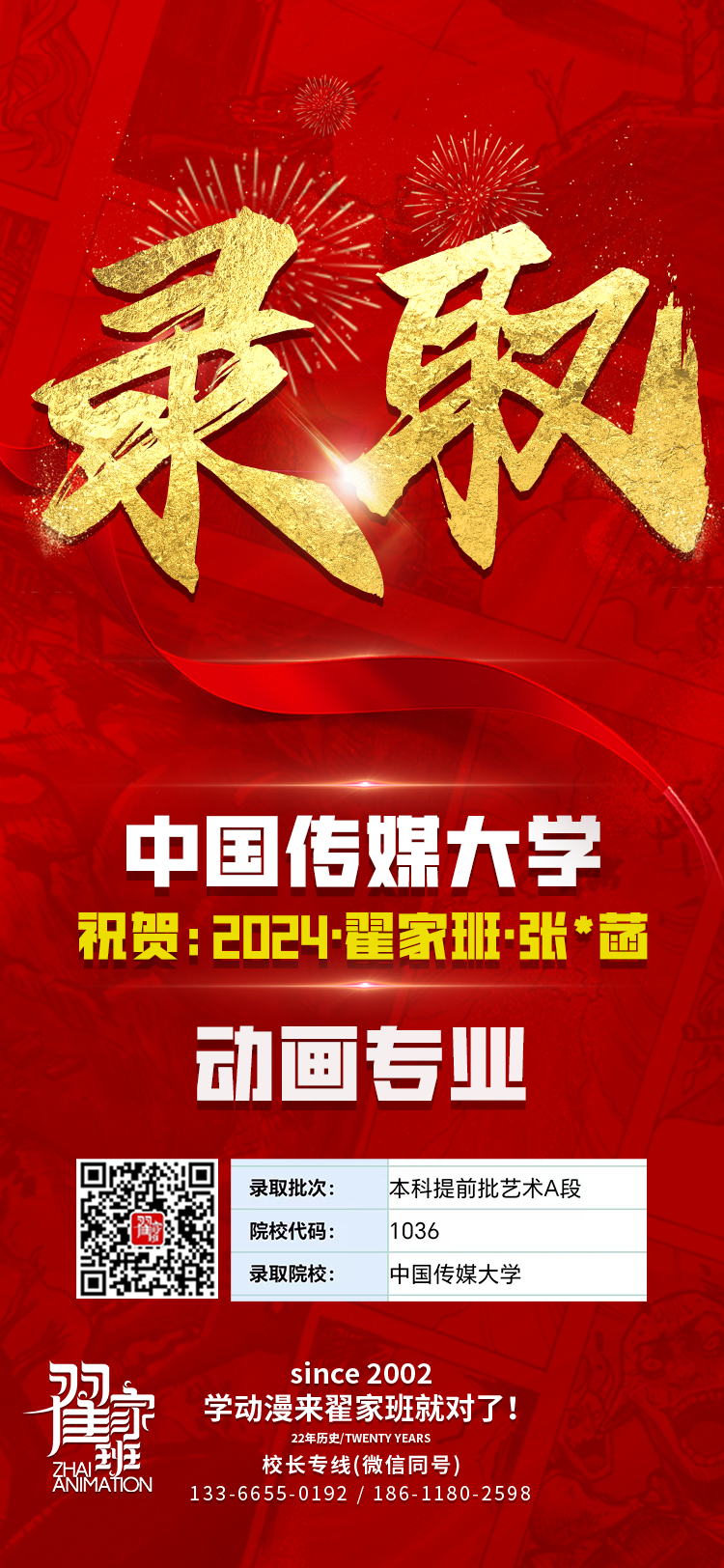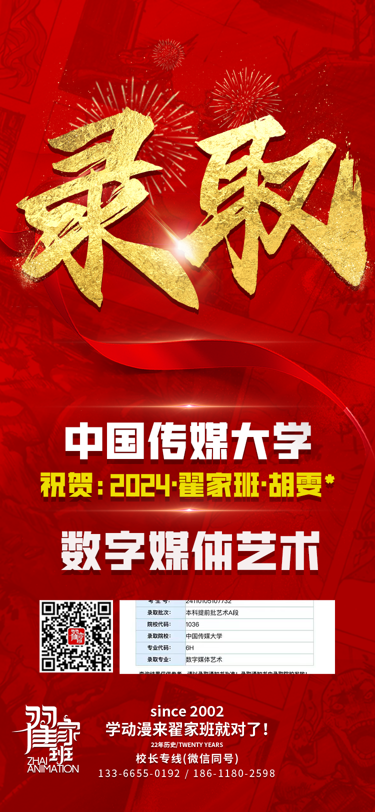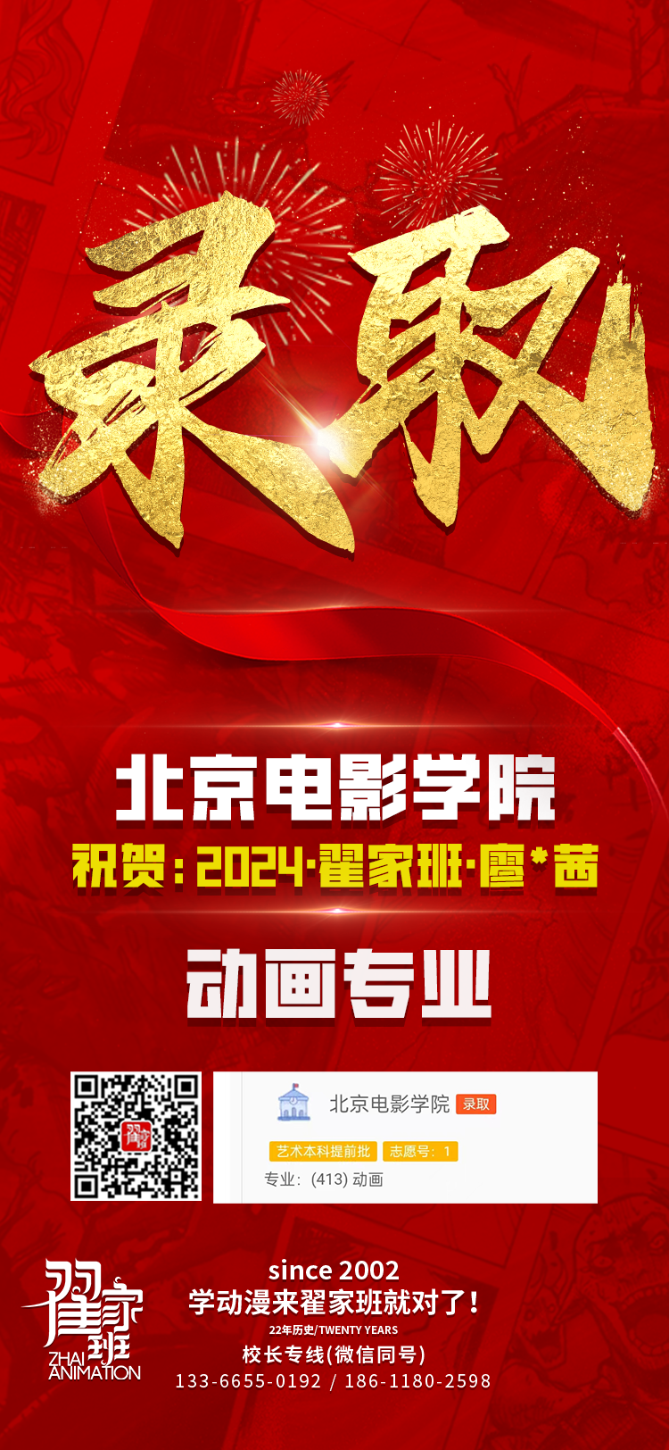 2024翟家班录取捷报丨连续三年中传北影录取率超1/3!王者实力再续辉煌战绩!