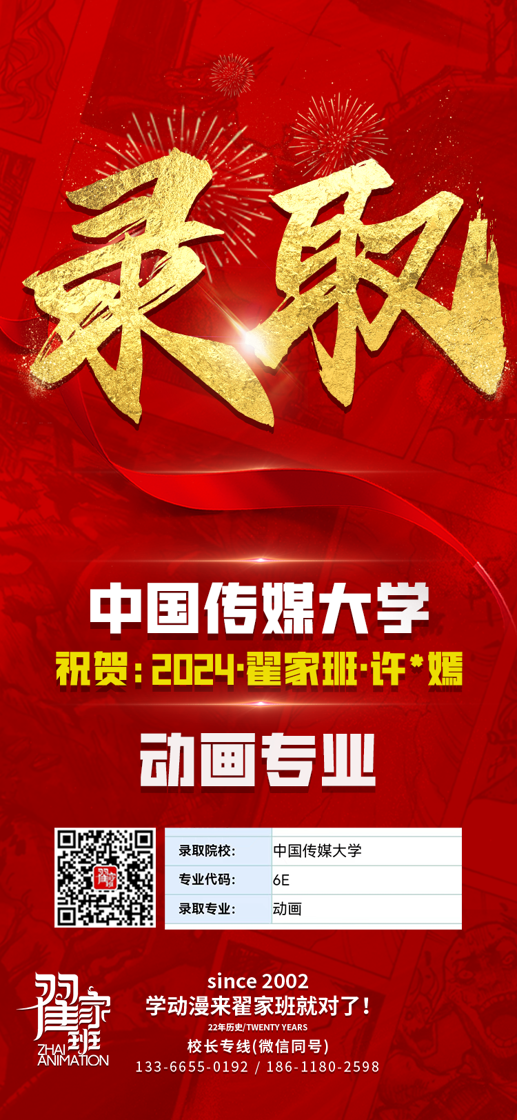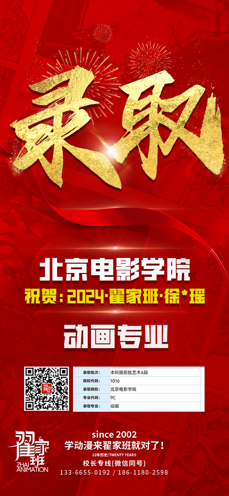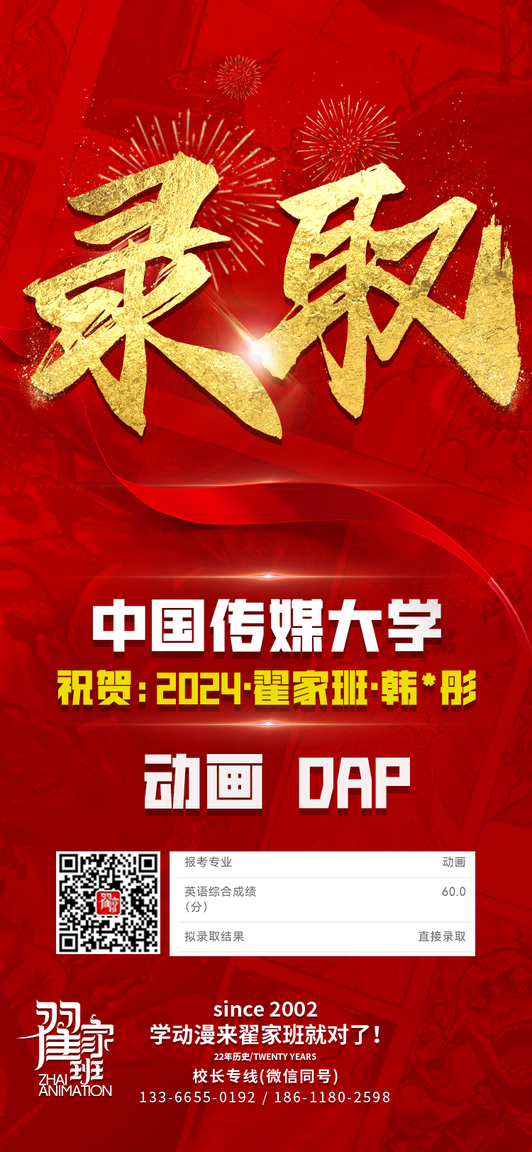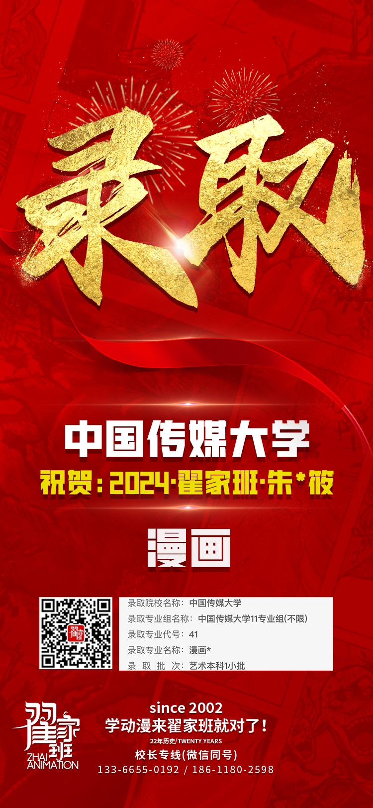 2024翟家班录取捷报丨连续三年中传北影录取率超1/3!王者实力再续辉煌战绩!