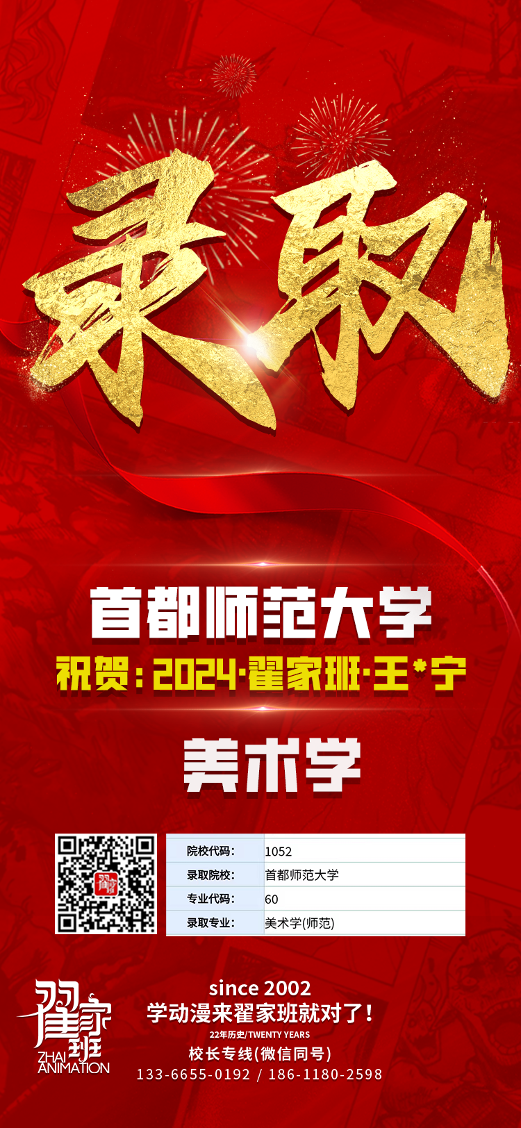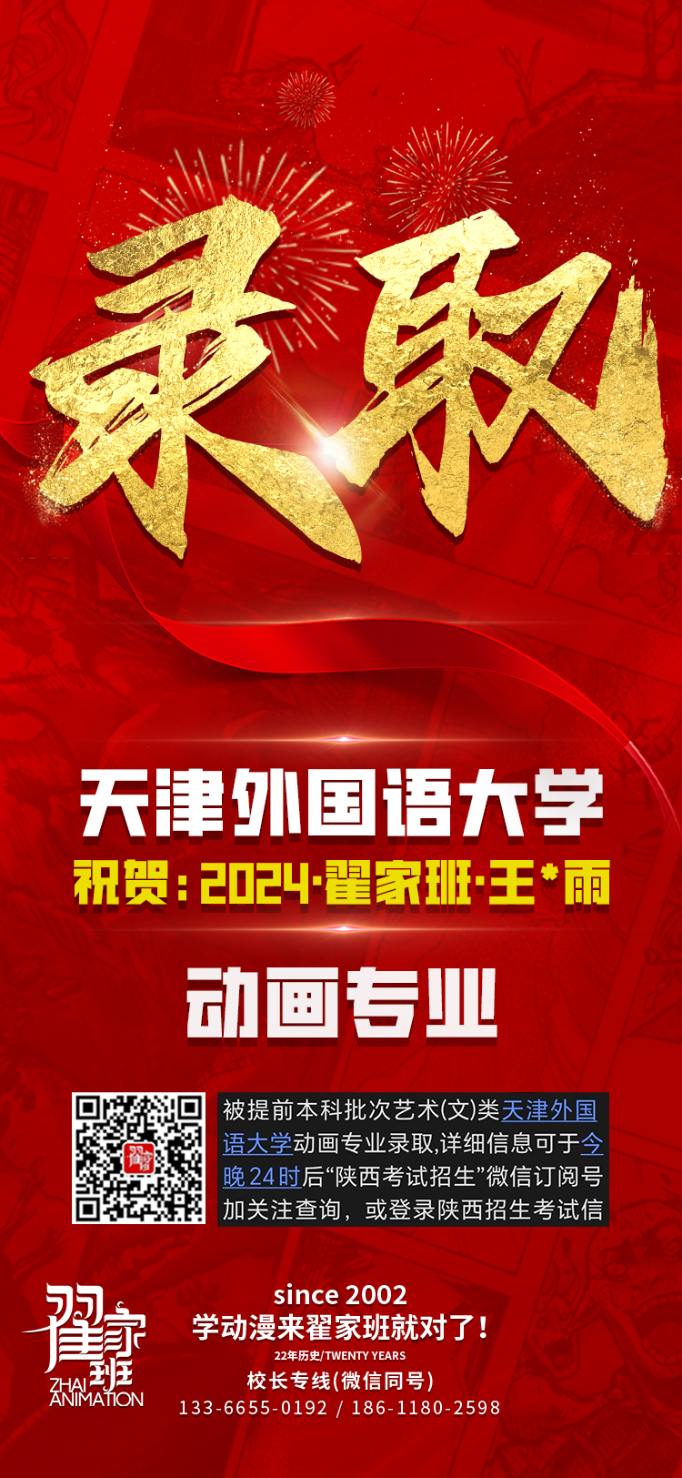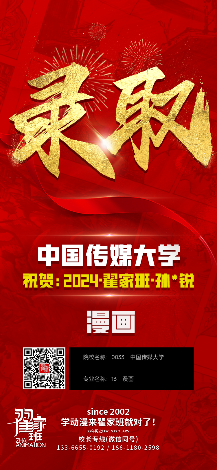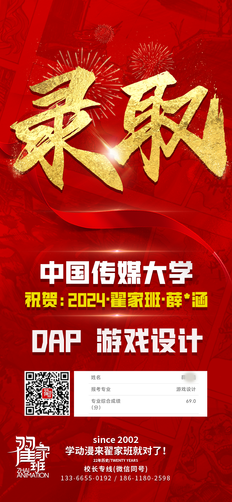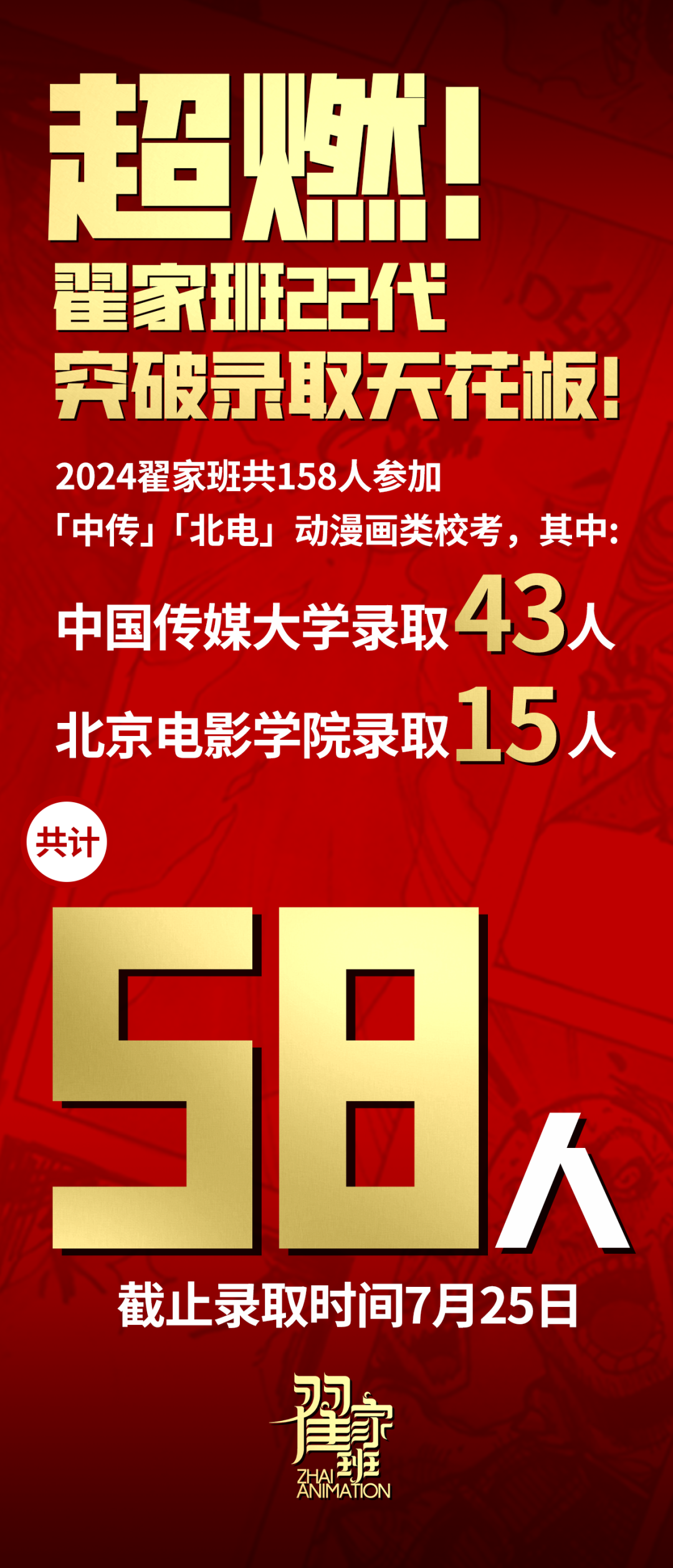 2024翟家班录取捷报丨连续三年中传北影录取率超1/3!王者实力再续辉煌战绩!