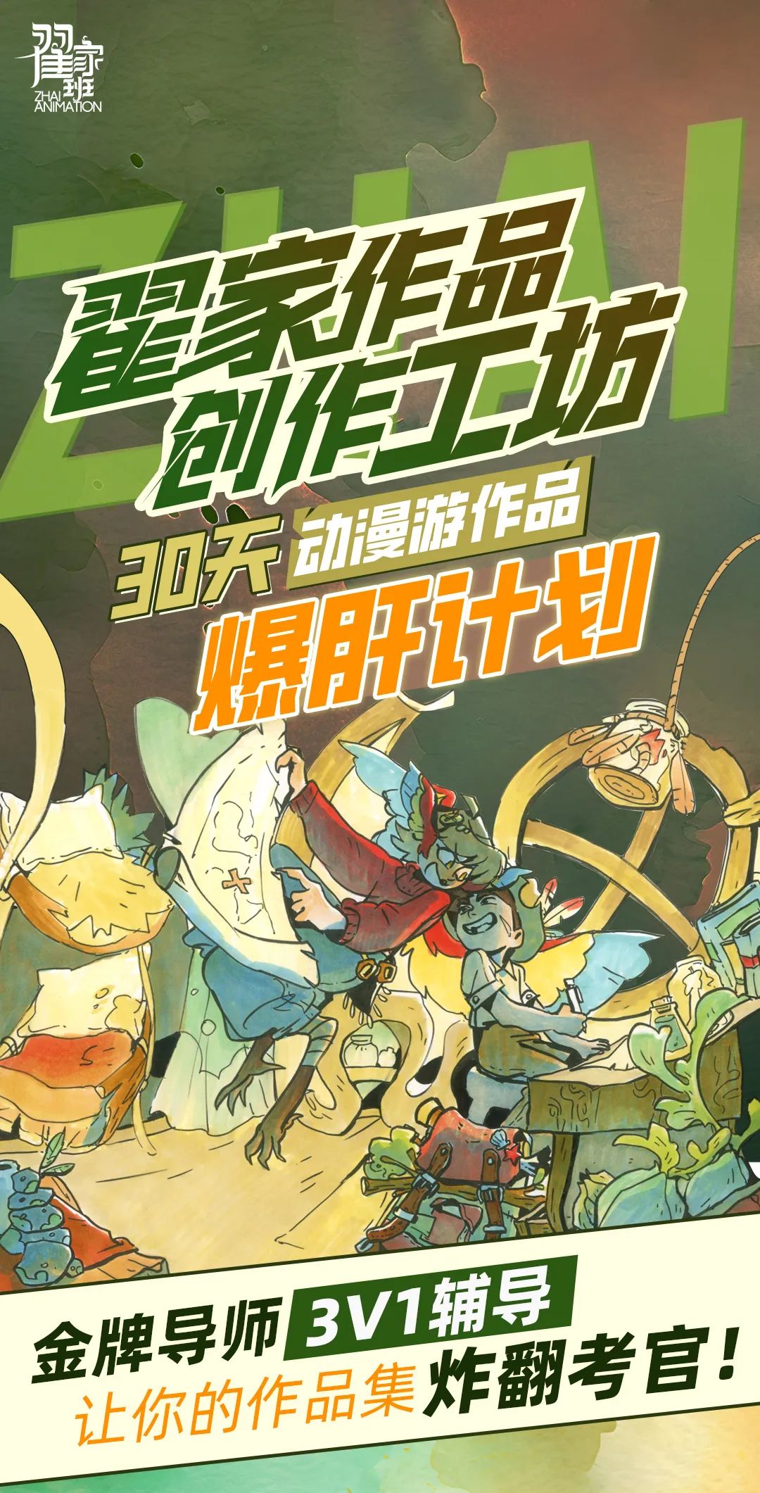 翟家作品创作工坊30天动漫游作品爆肝计划, 金牌导师3V1辅导,让你的作品集炸翻考官!