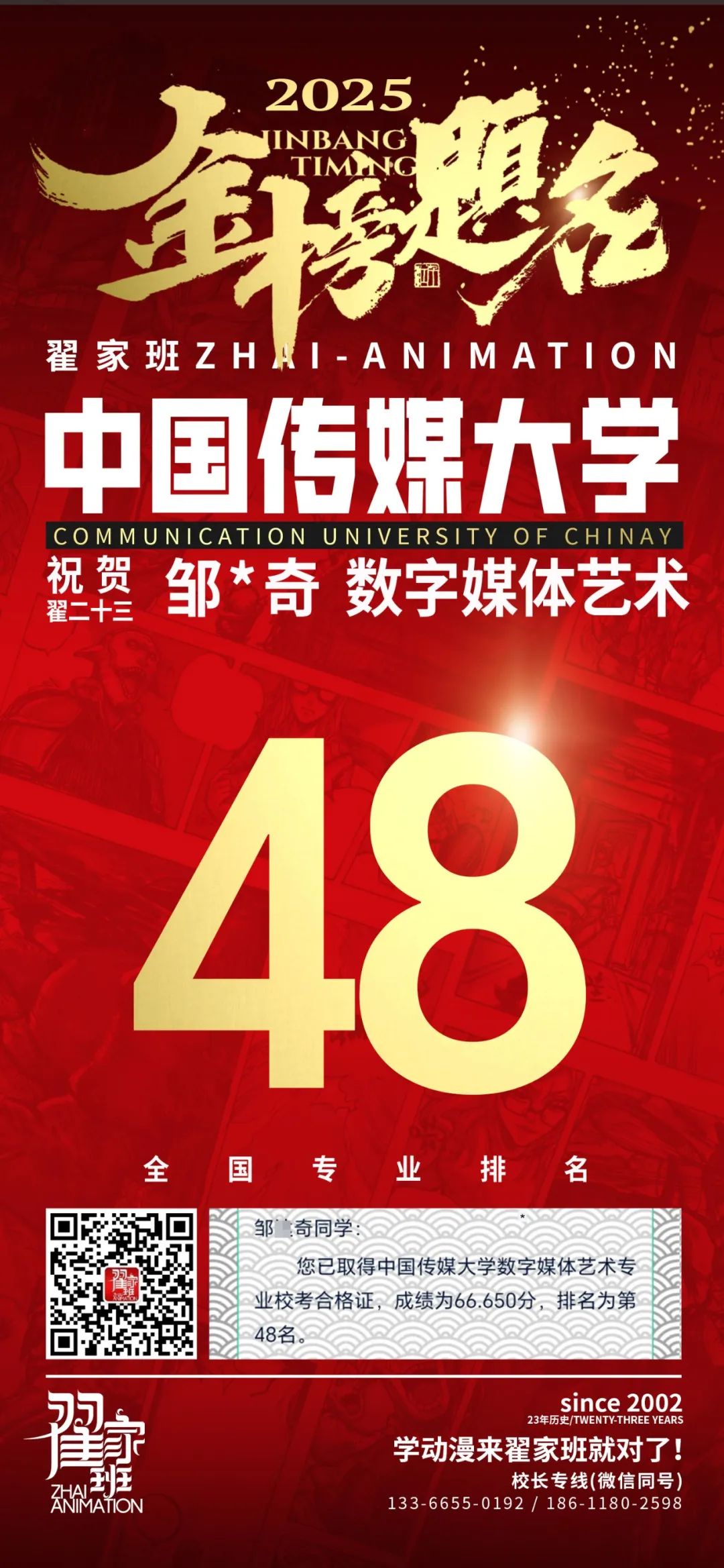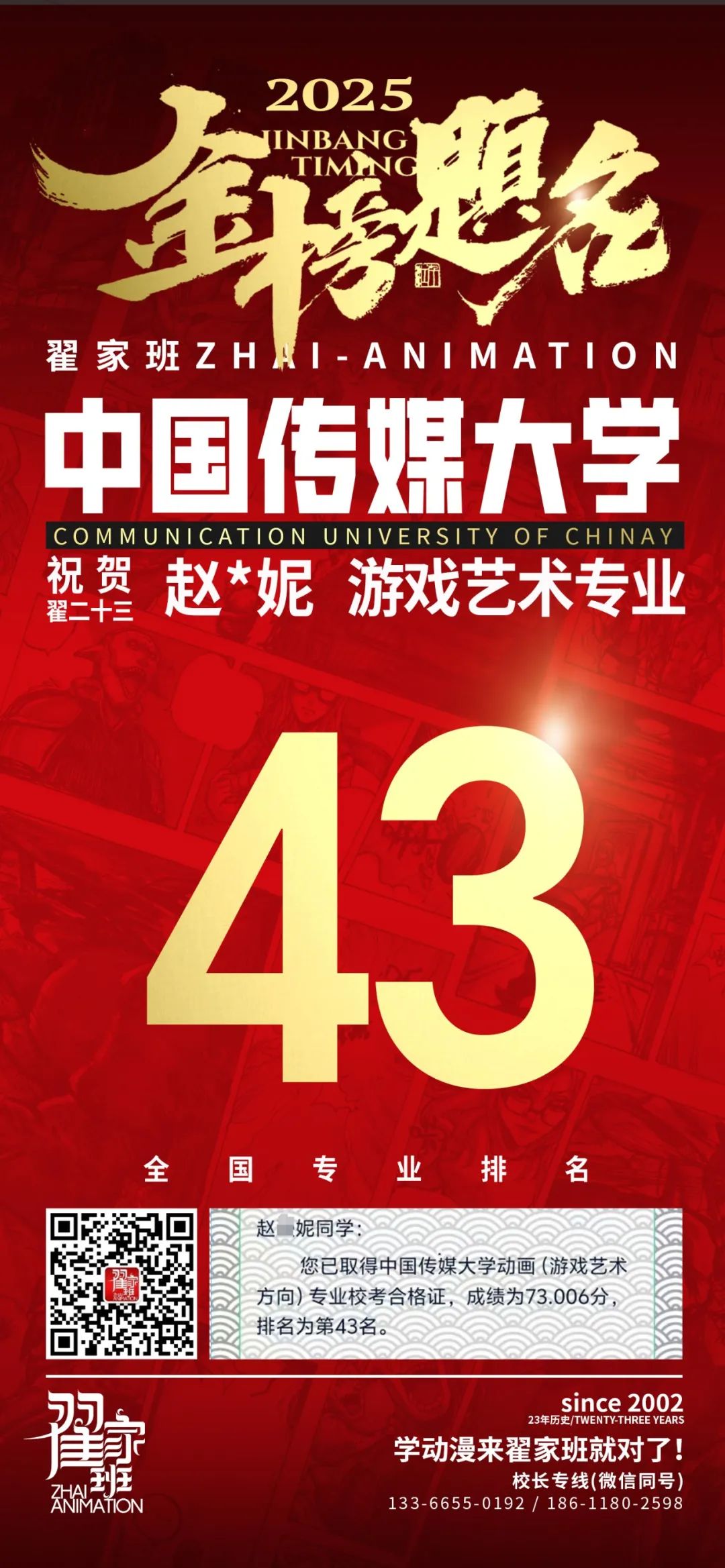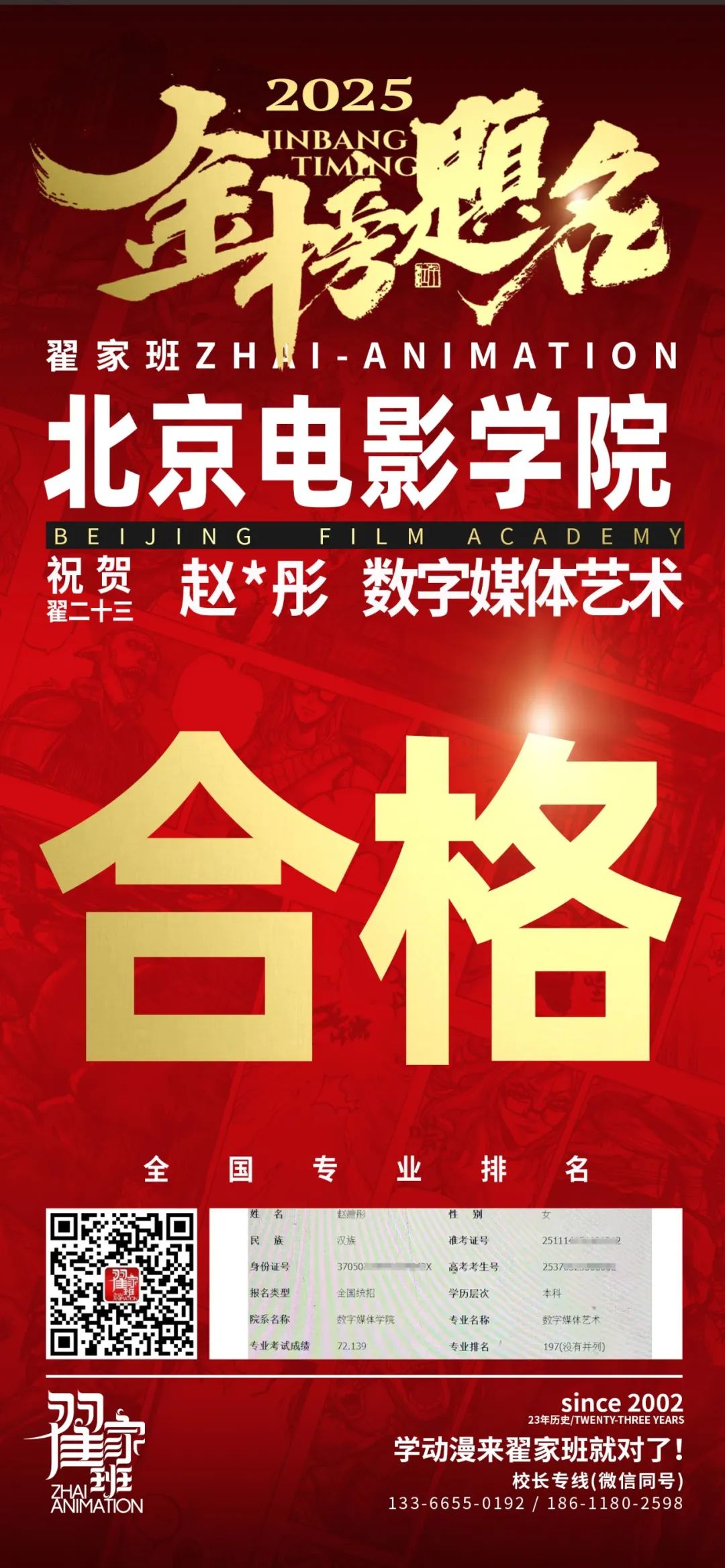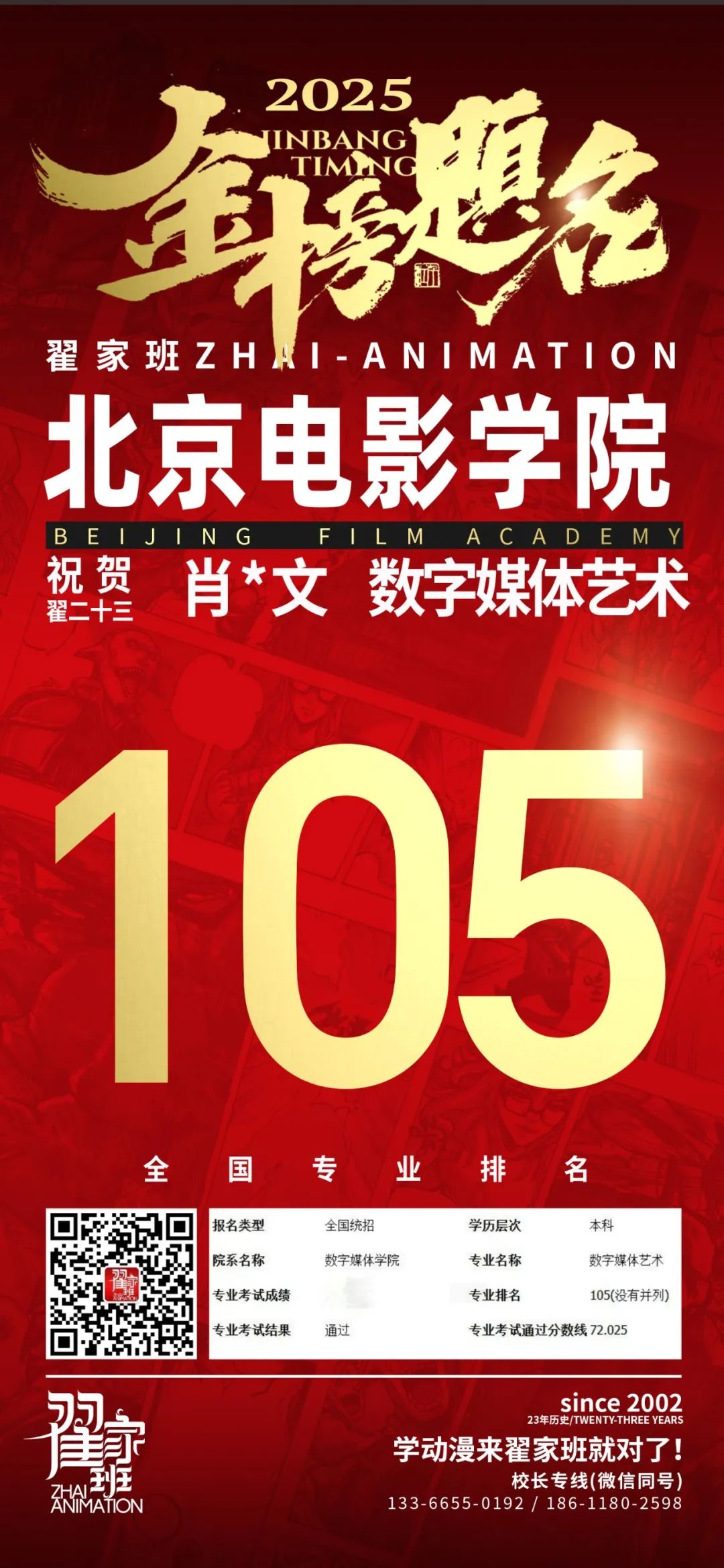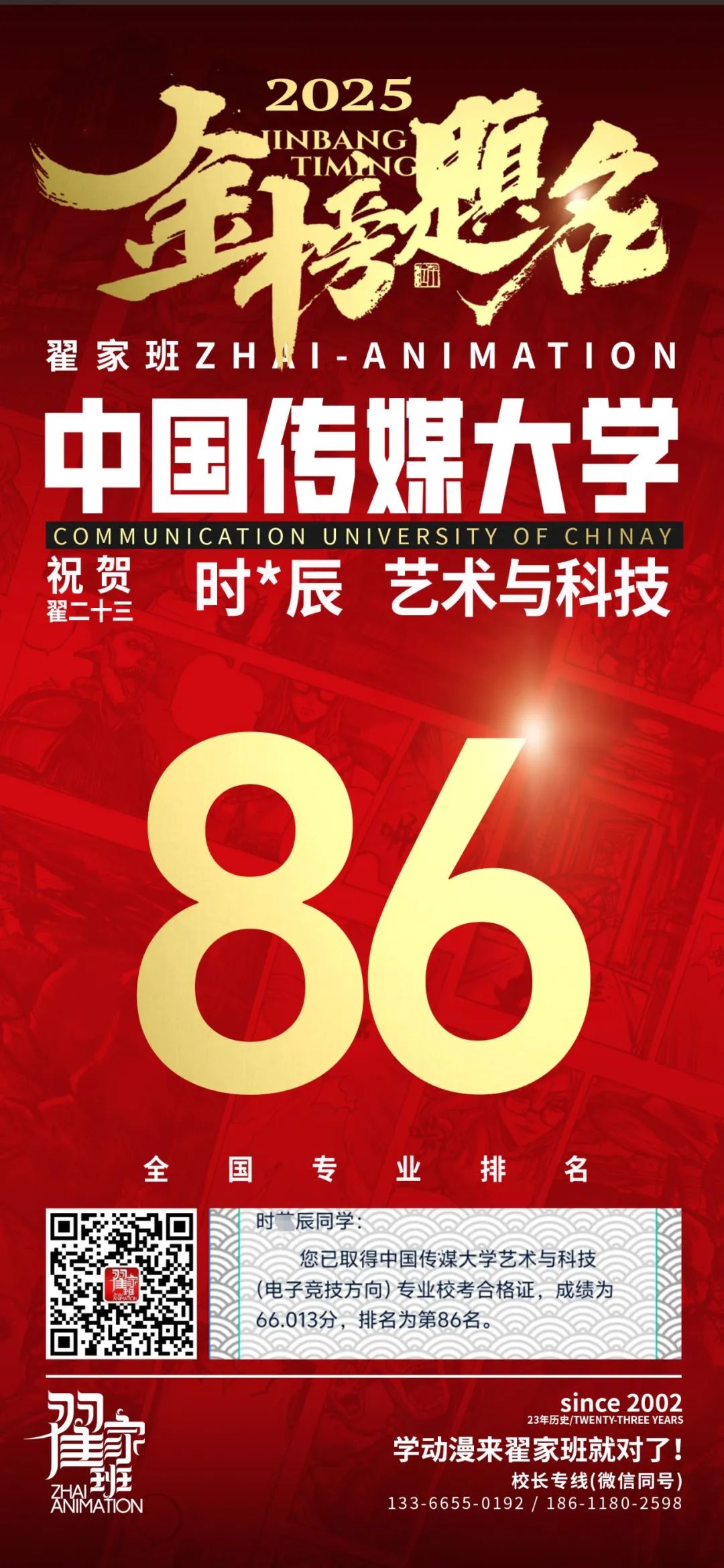 【荣耀战报】2025届动漫翟家班中传&北电校考大捷!