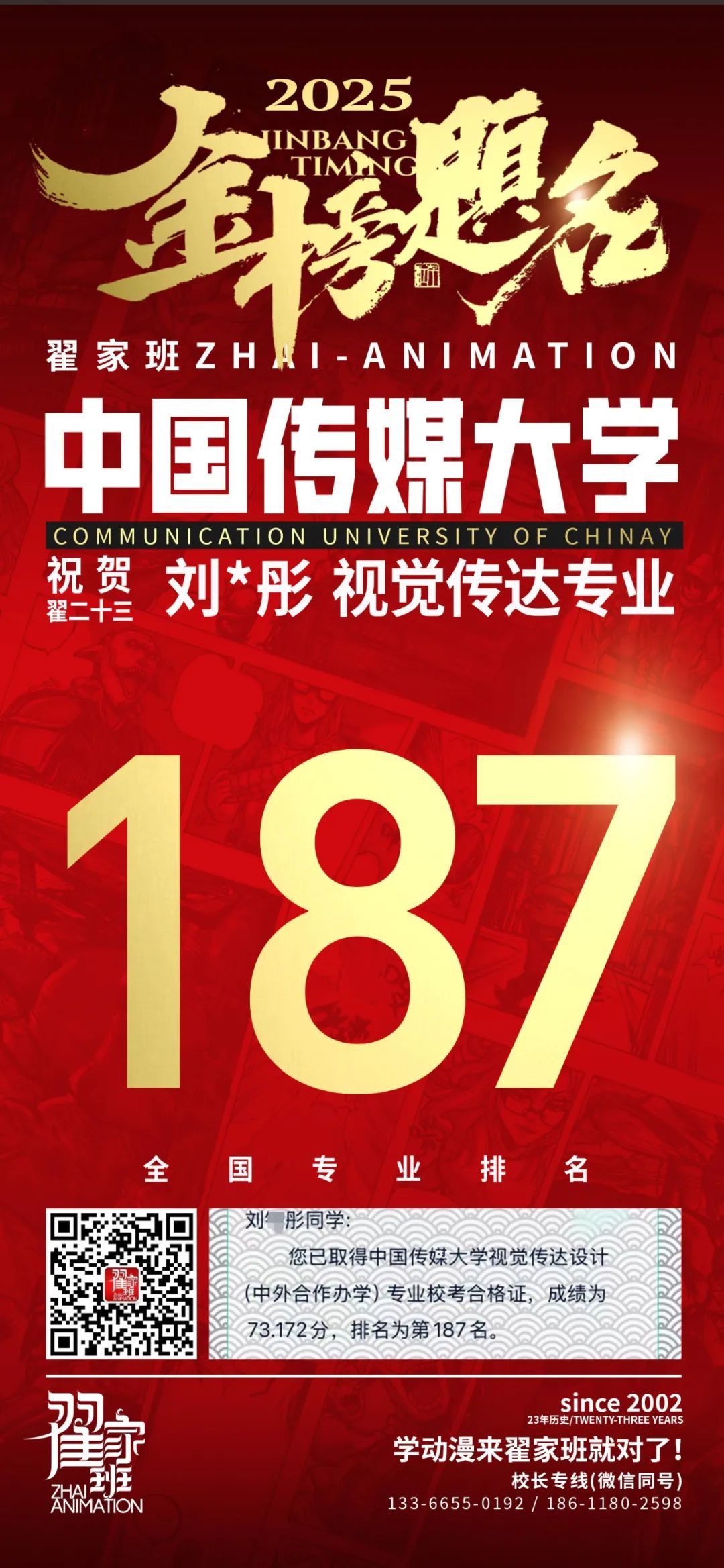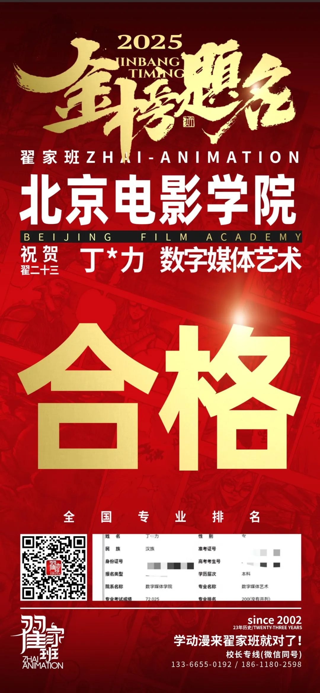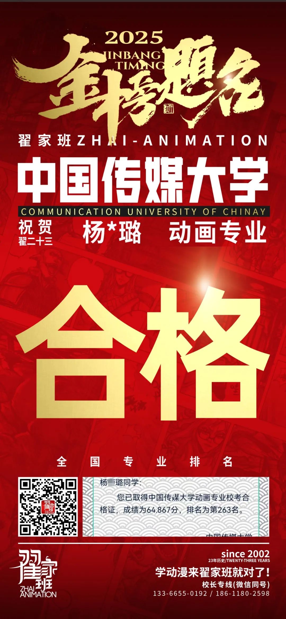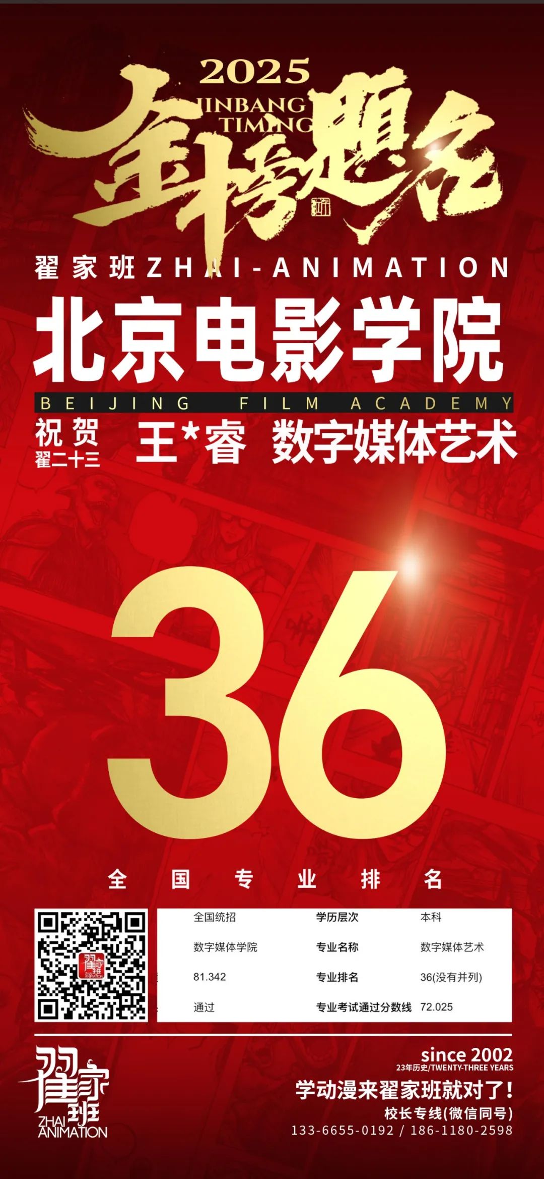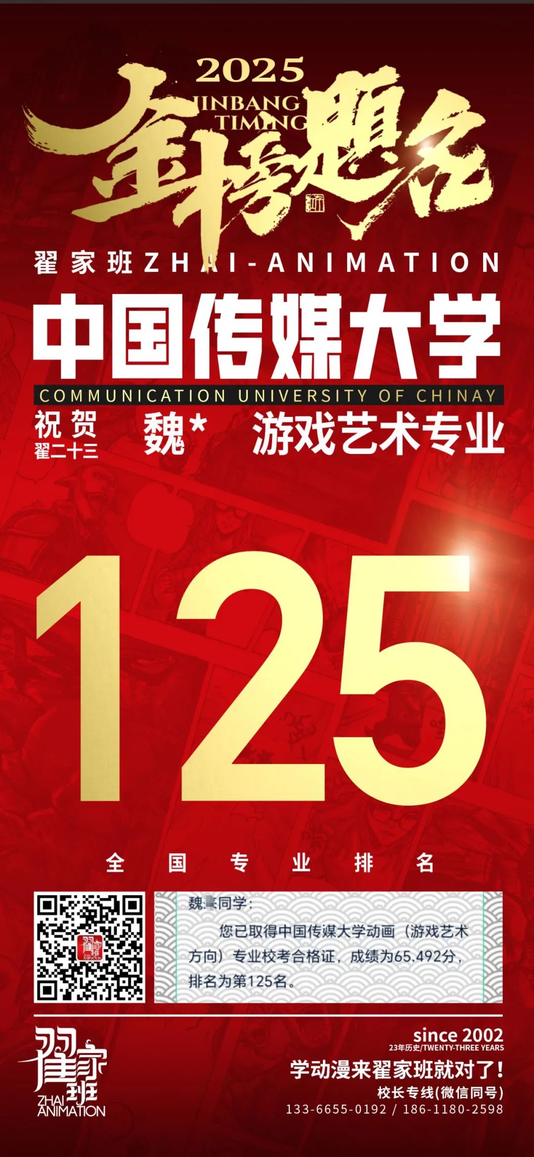 【荣耀战报】2025届动漫翟家班中传&北电校考大捷!