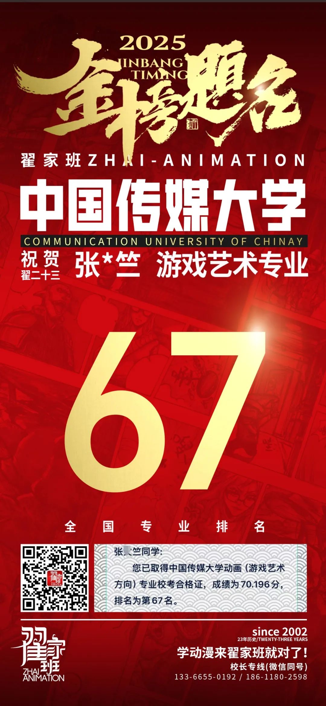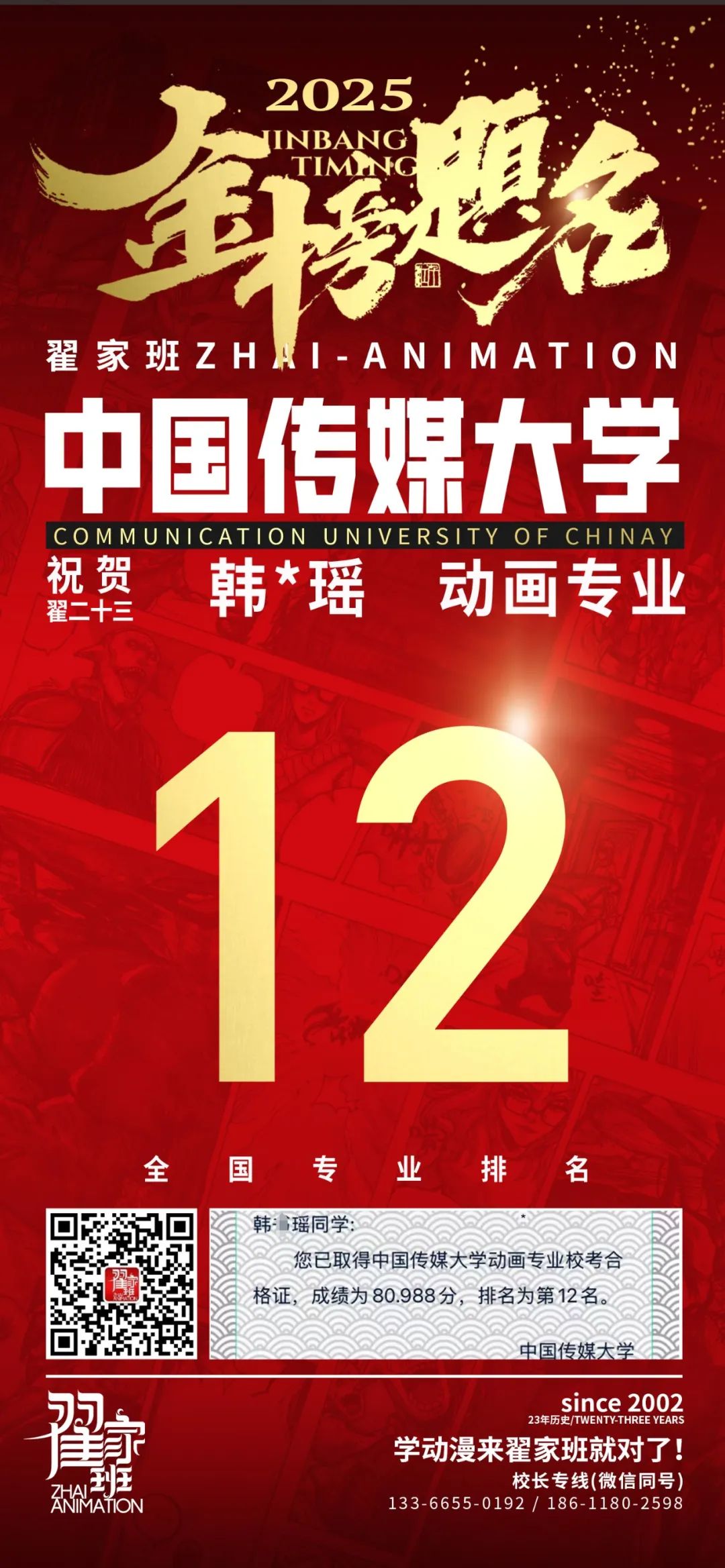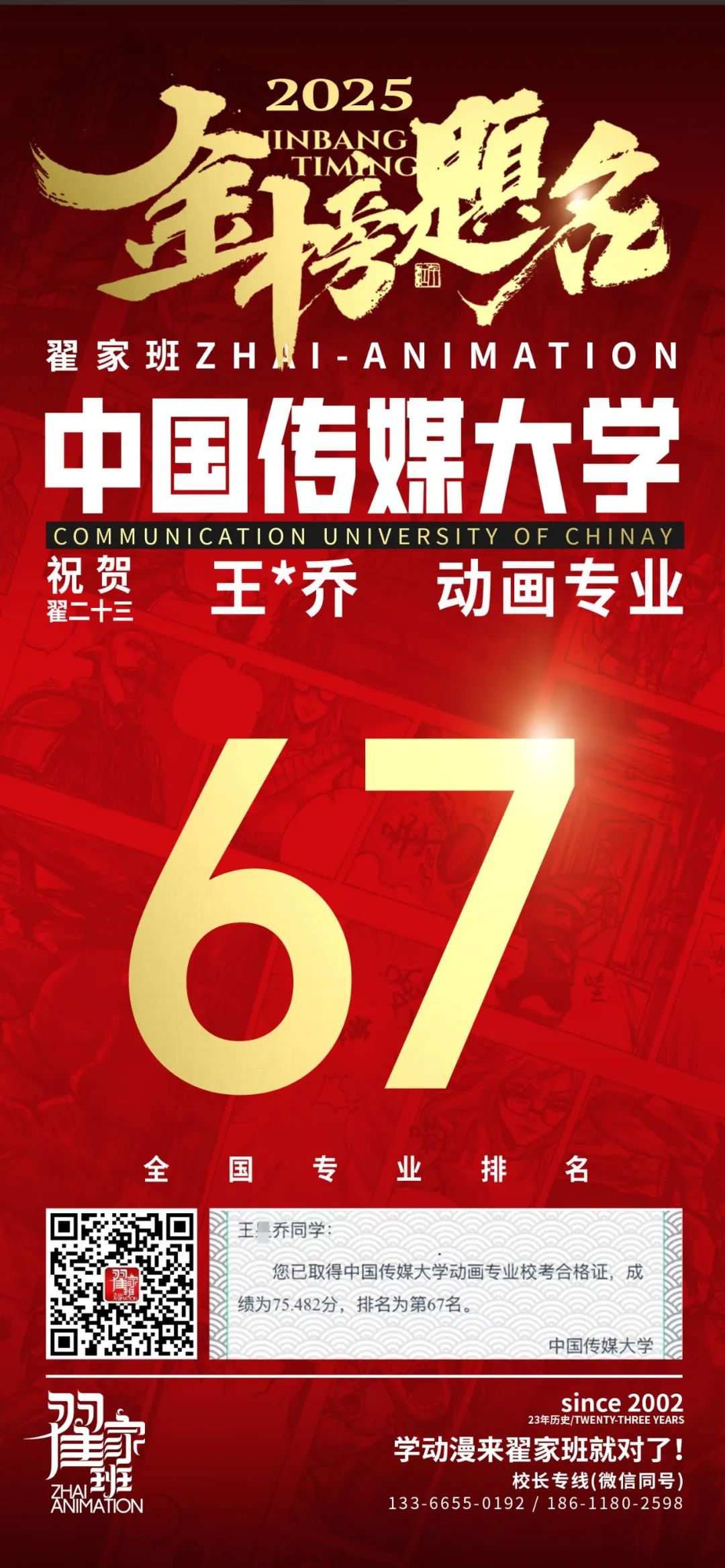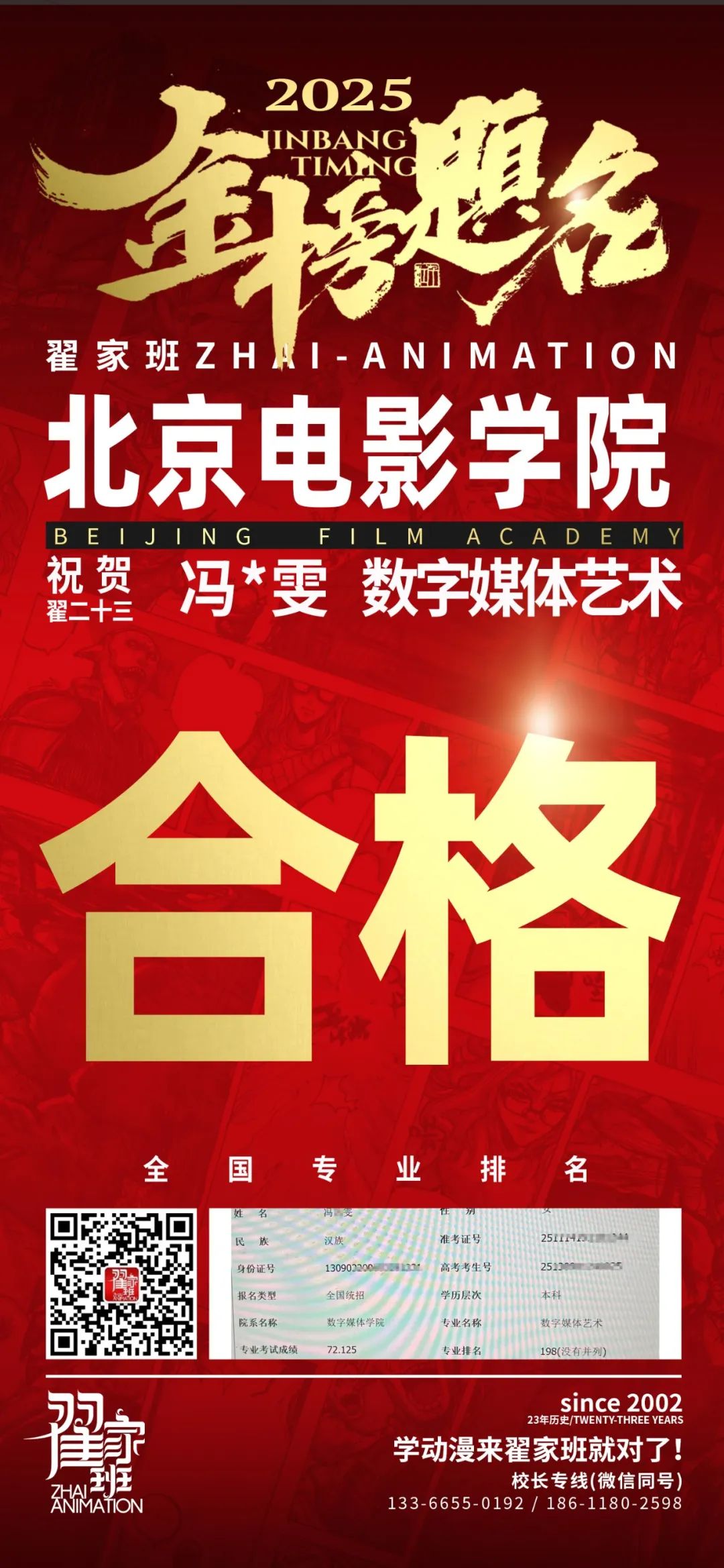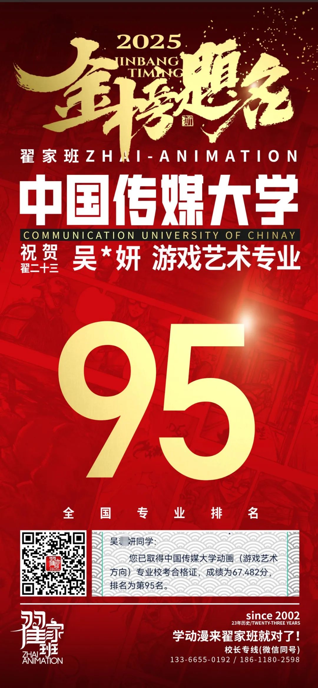 【荣耀战报】2025届动漫翟家班中传&北电校考大捷!