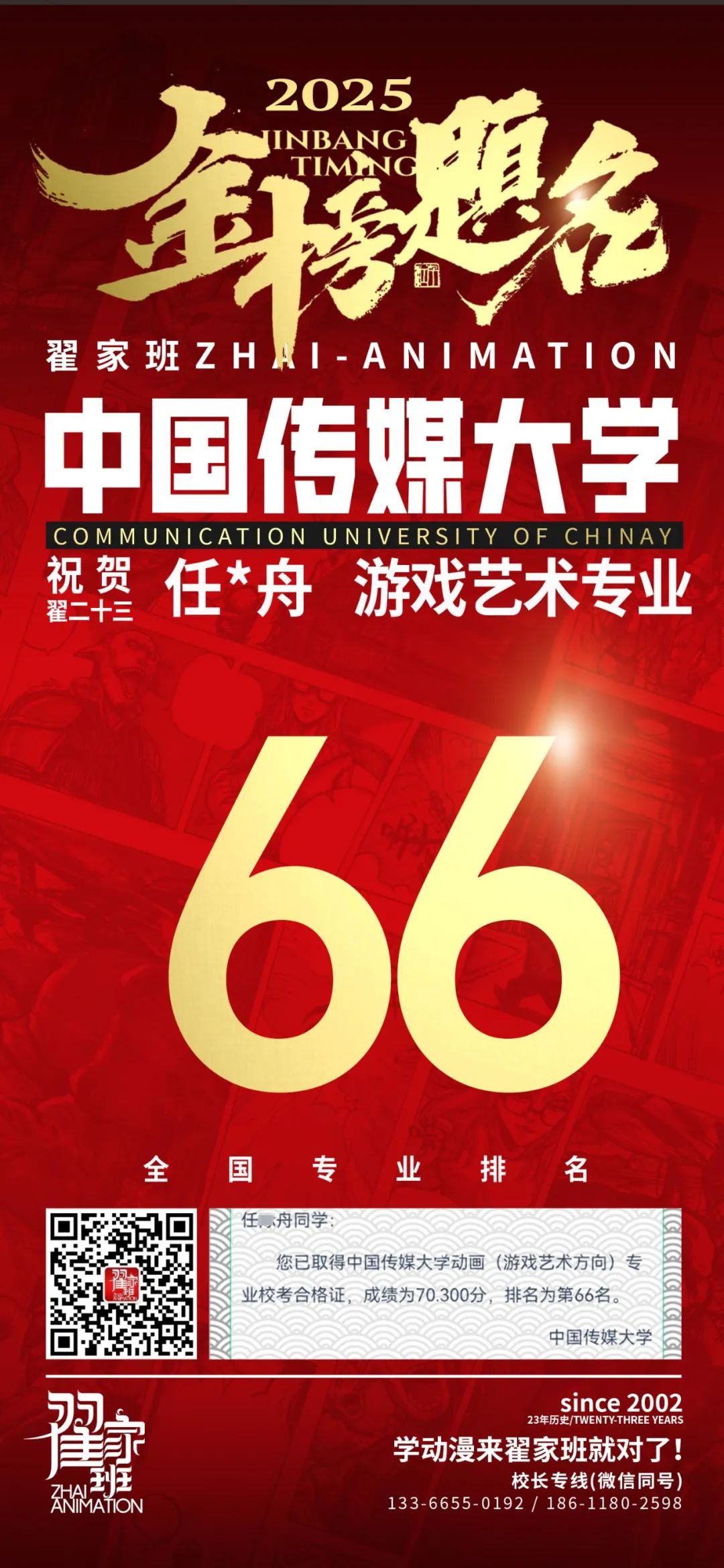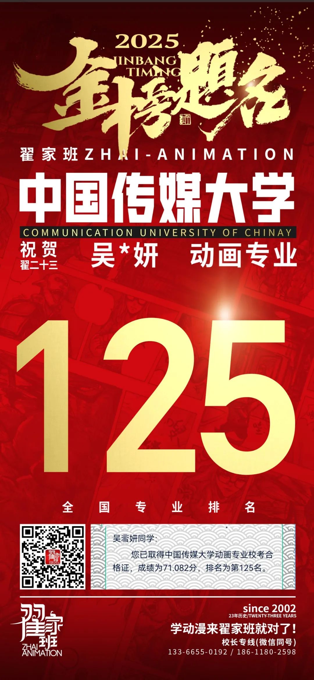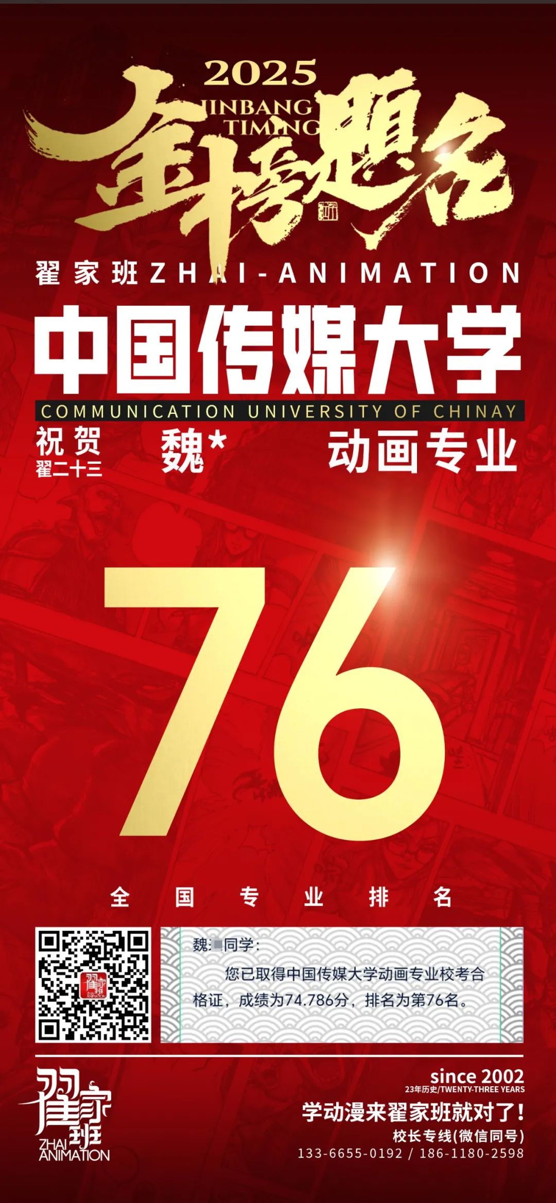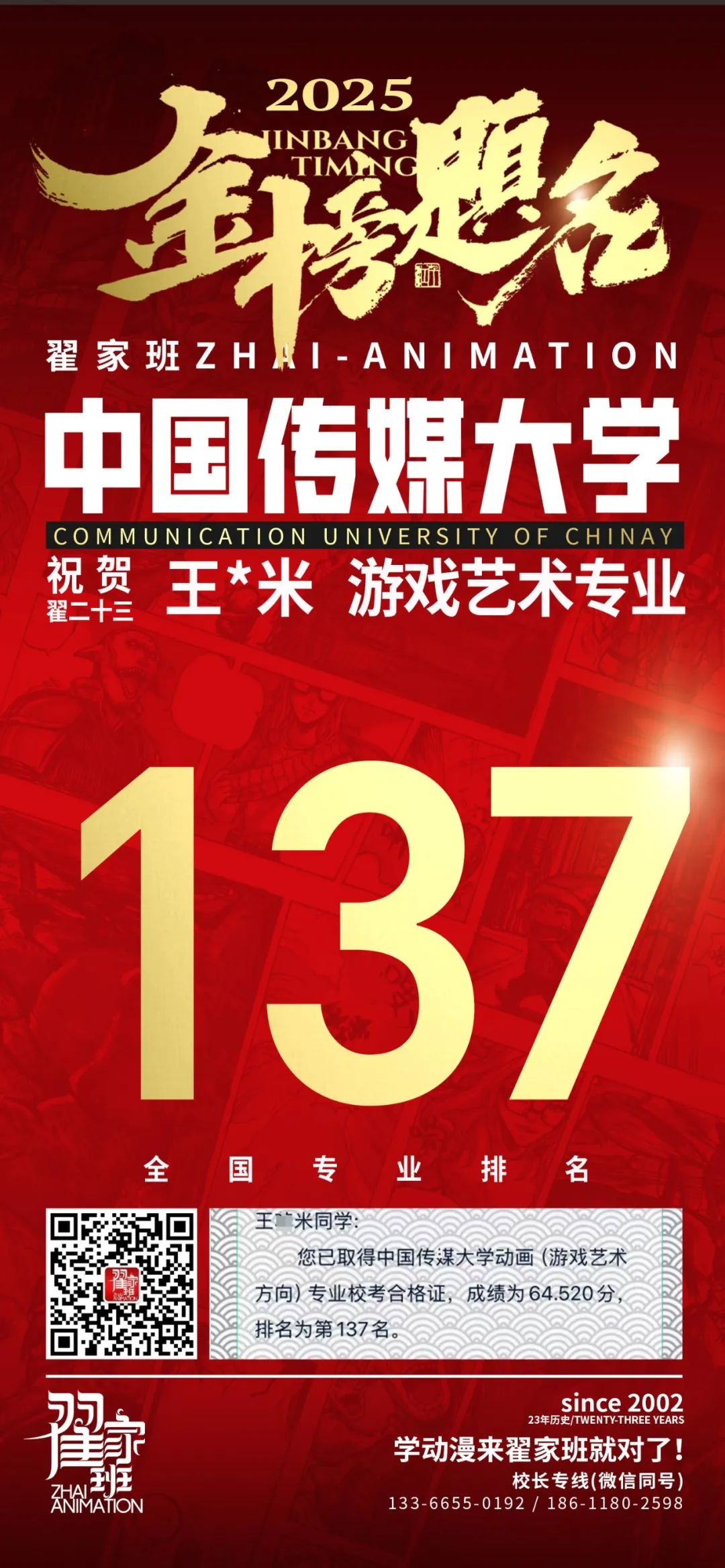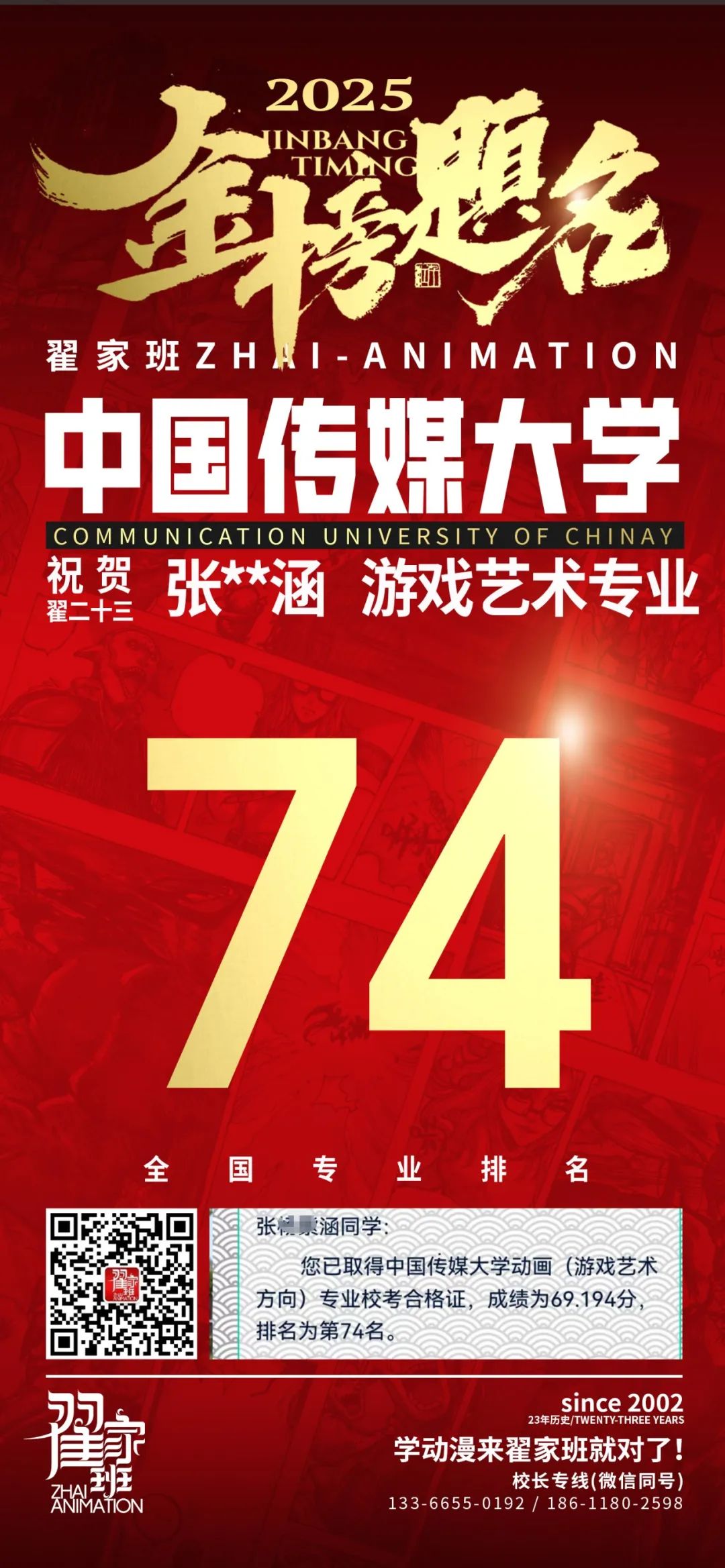 【荣耀战报】2025届动漫翟家班中传&北电校考大捷!