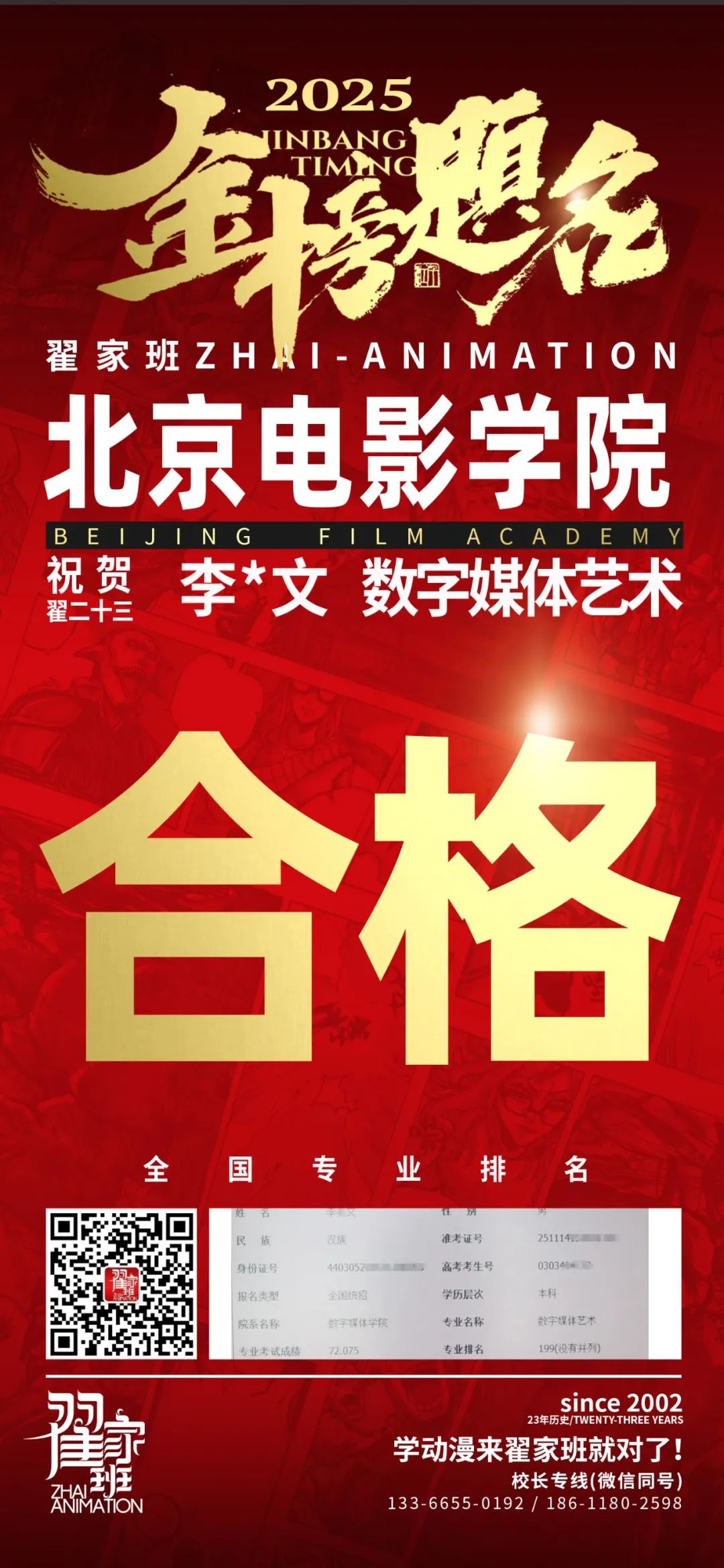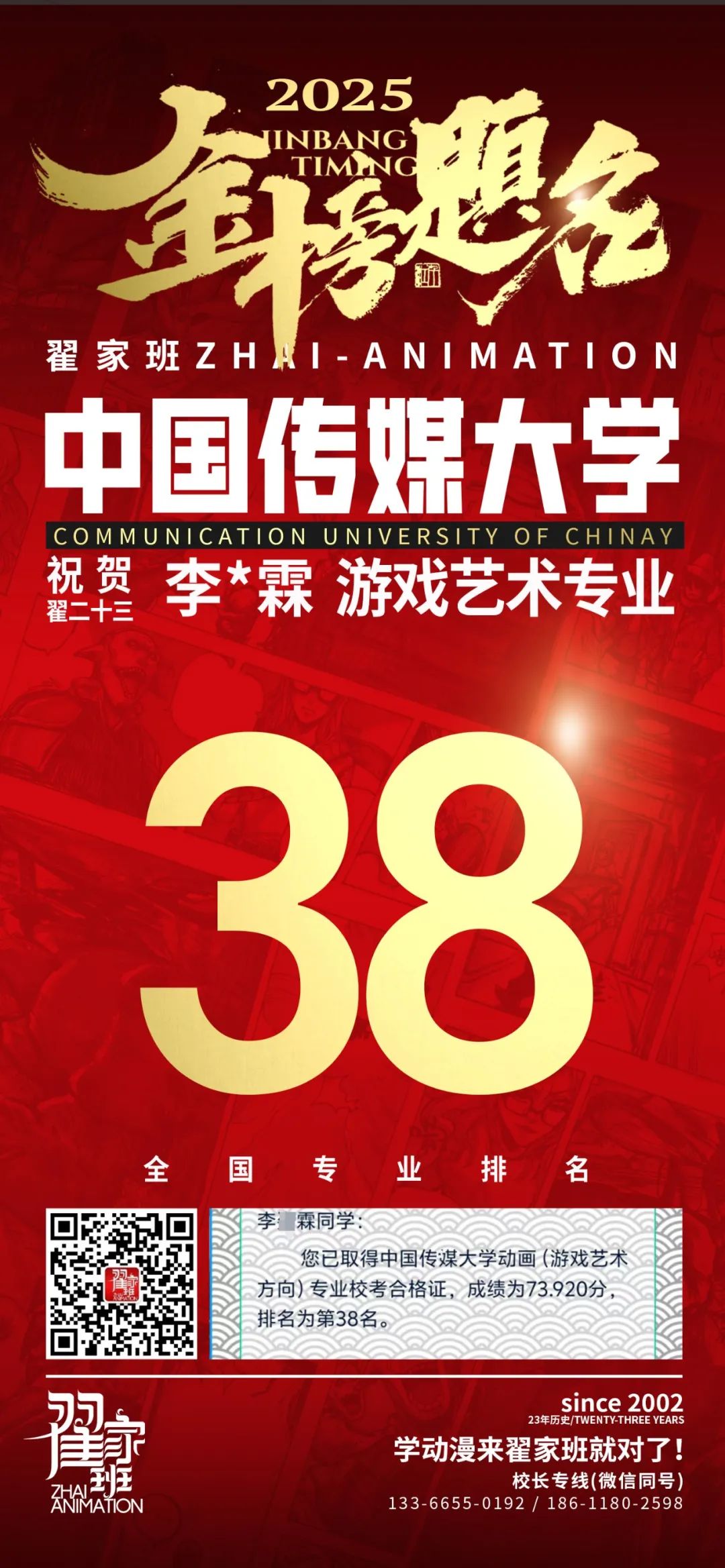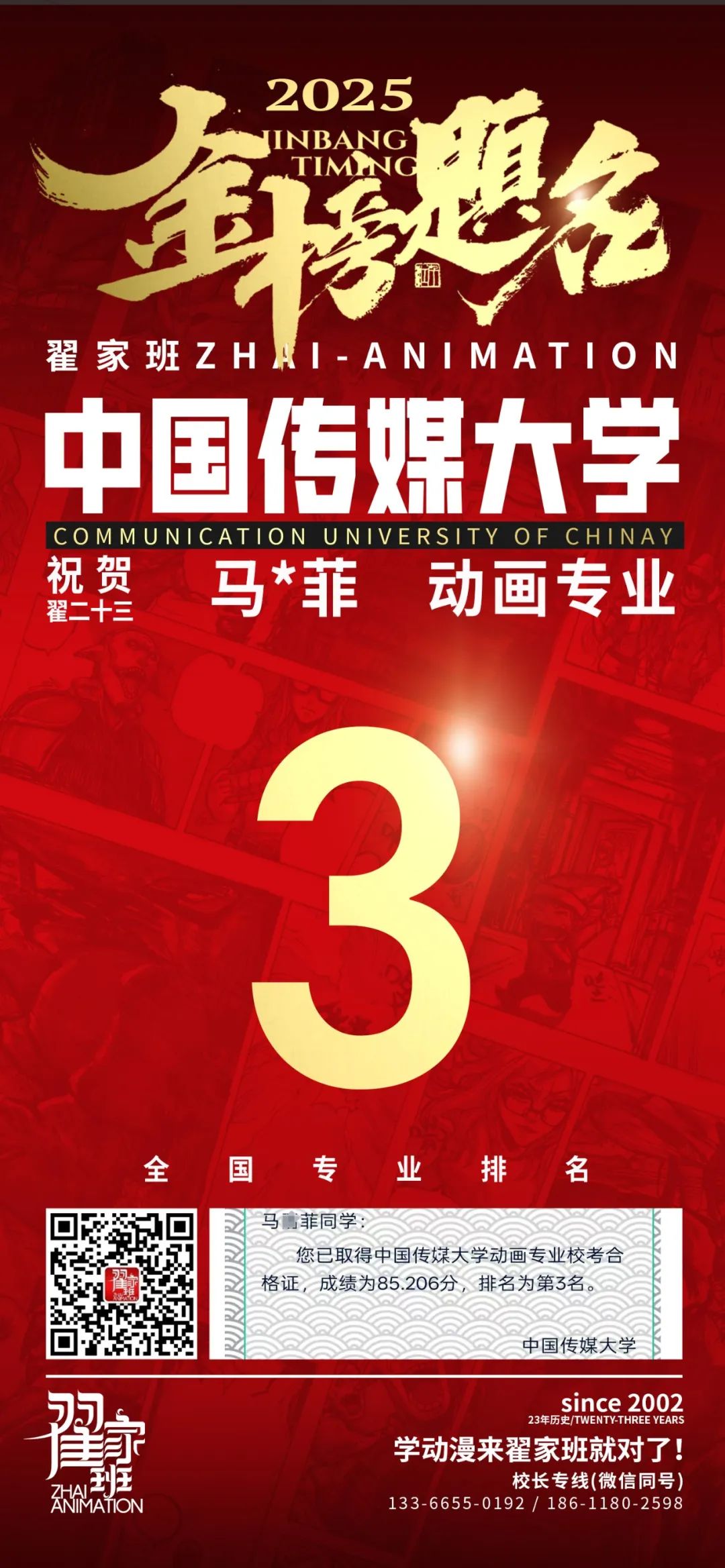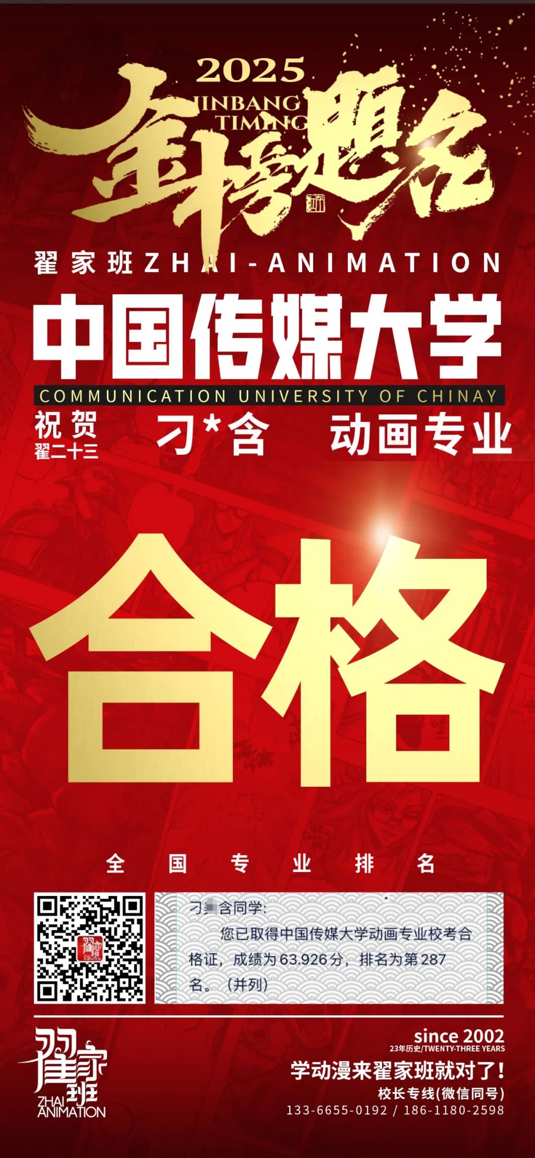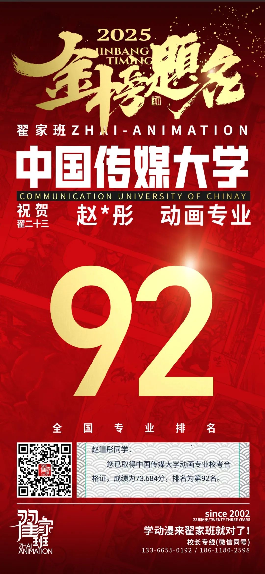 【荣耀战报】2025届动漫翟家班中传&北电校考大捷!