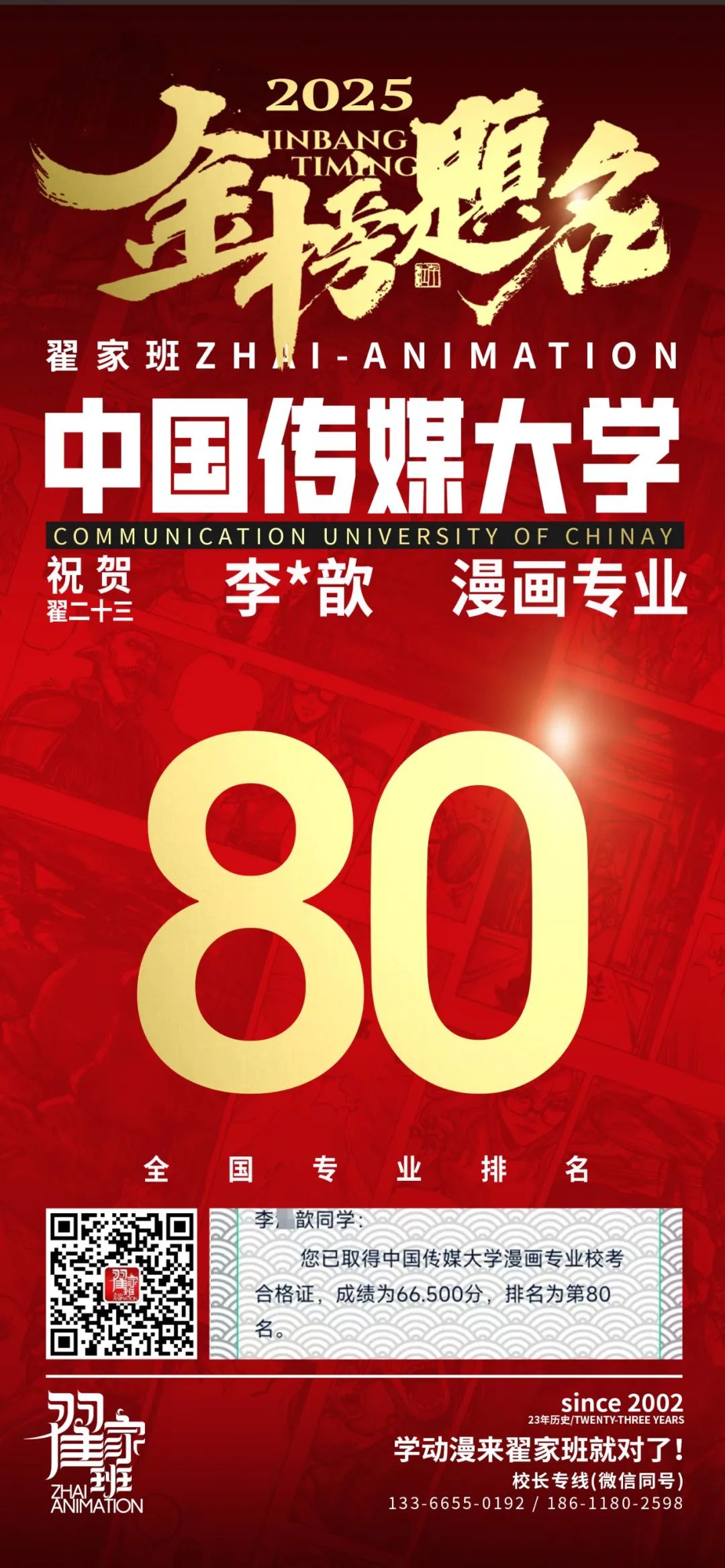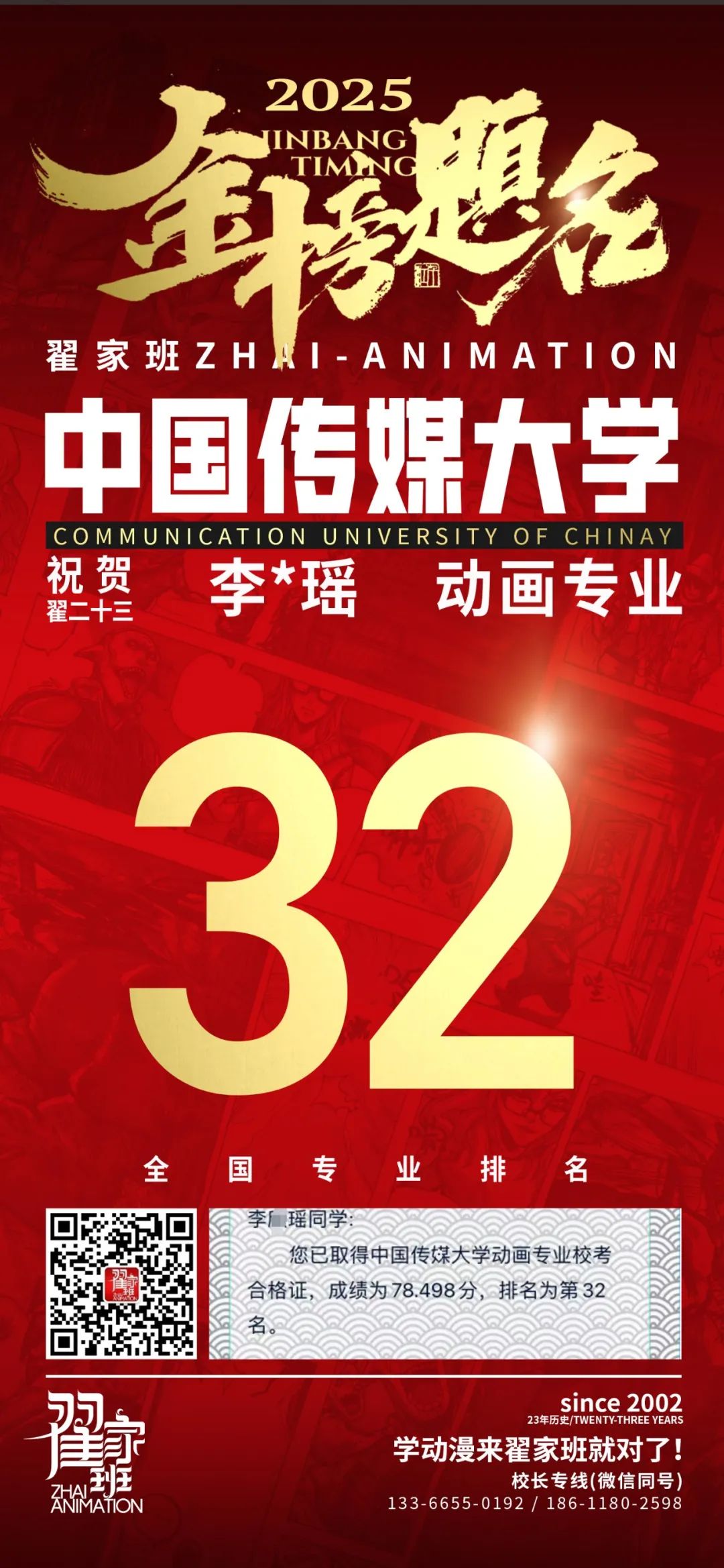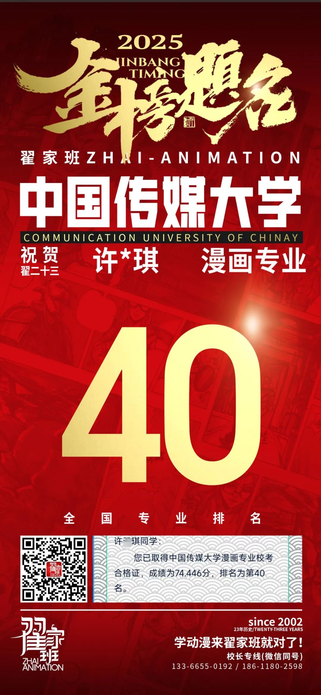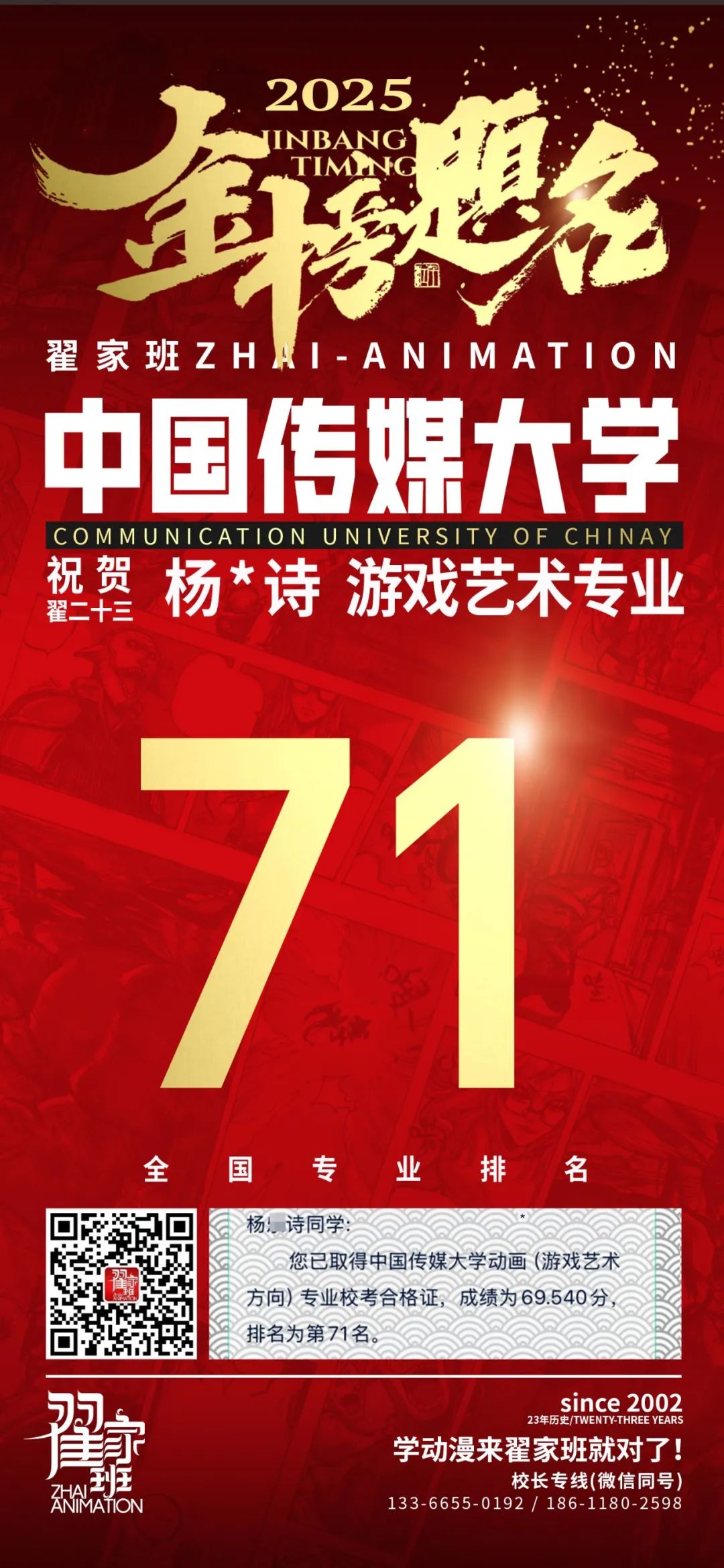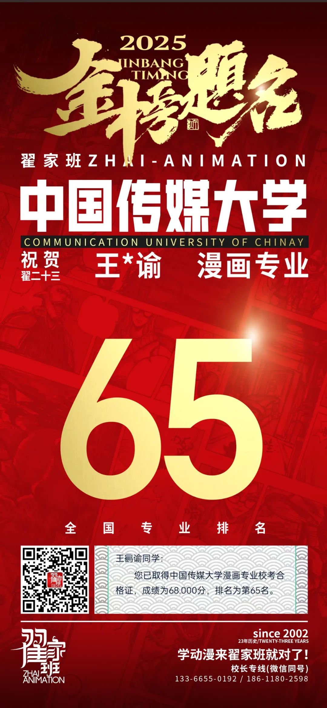 【荣耀战报】2025届动漫翟家班中传&北电校考大捷!