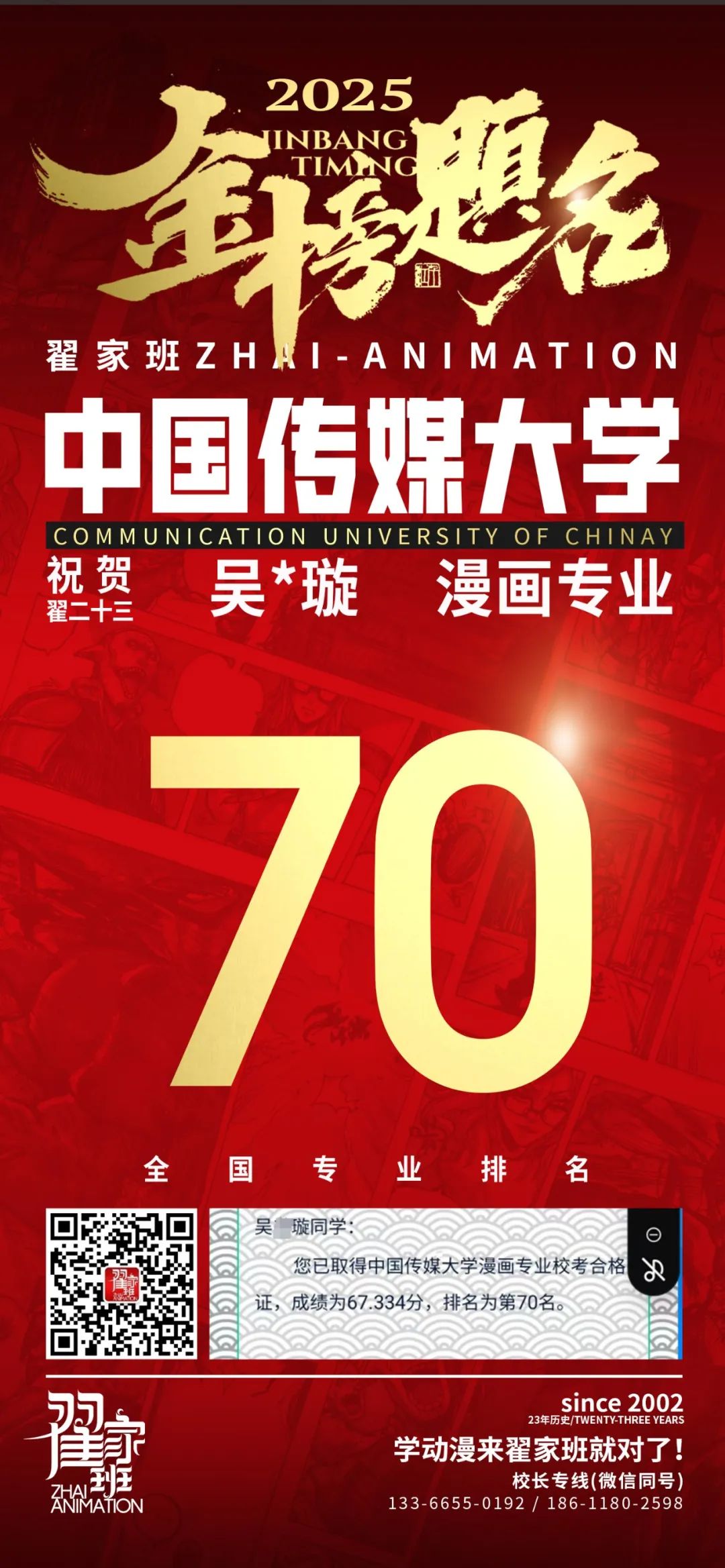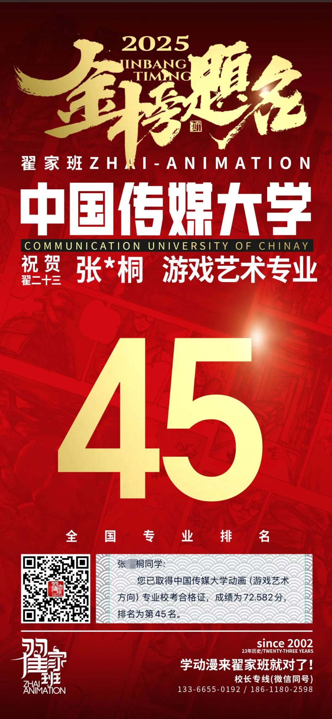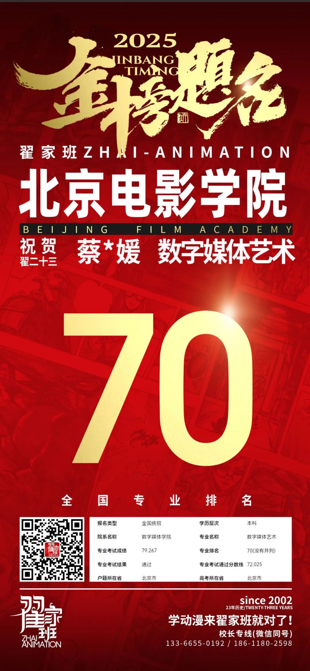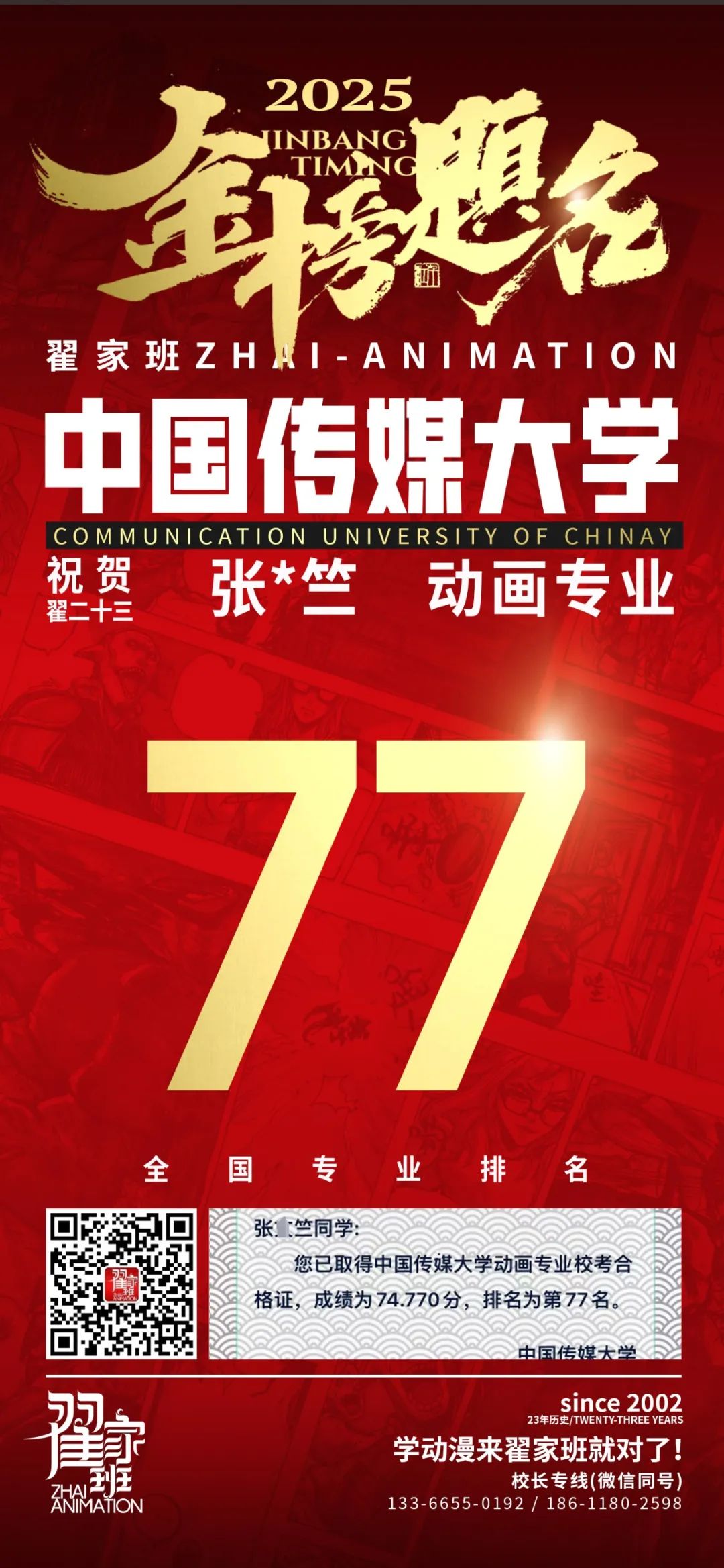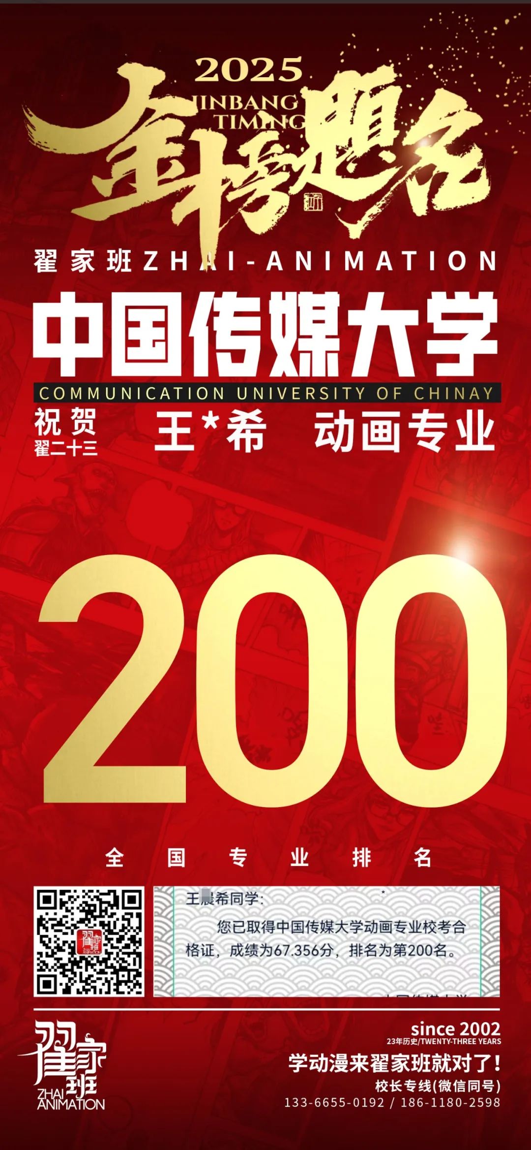 【荣耀战报】2025届动漫翟家班中传&北电校考大捷!