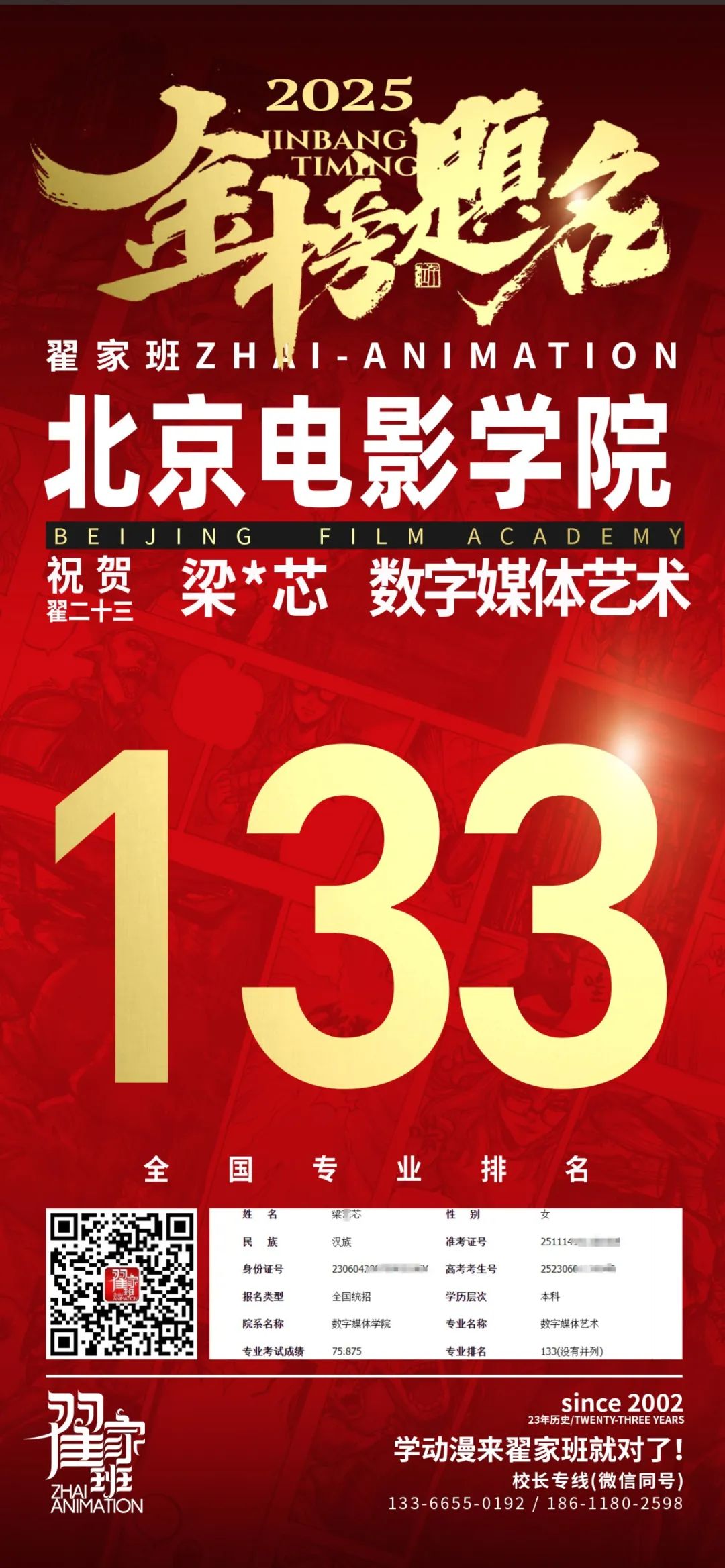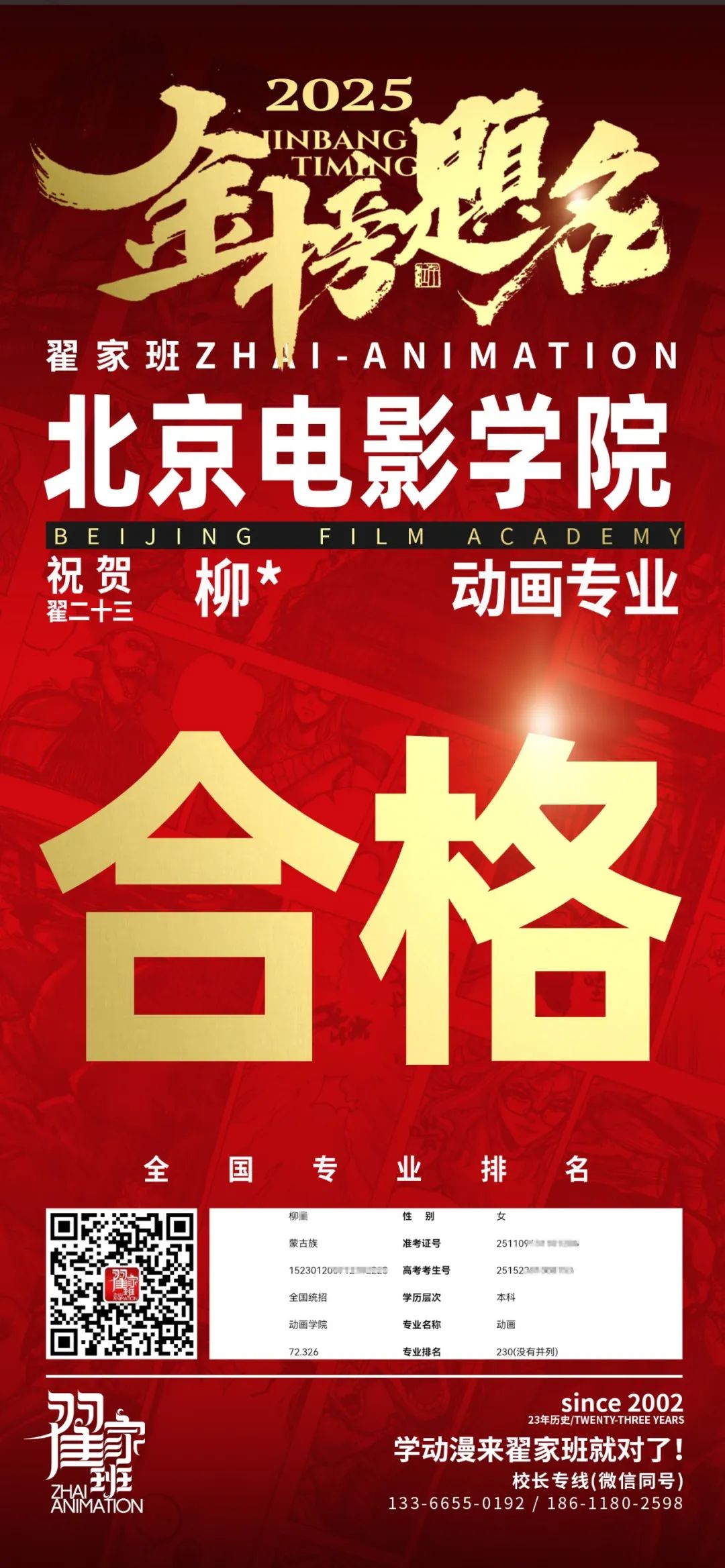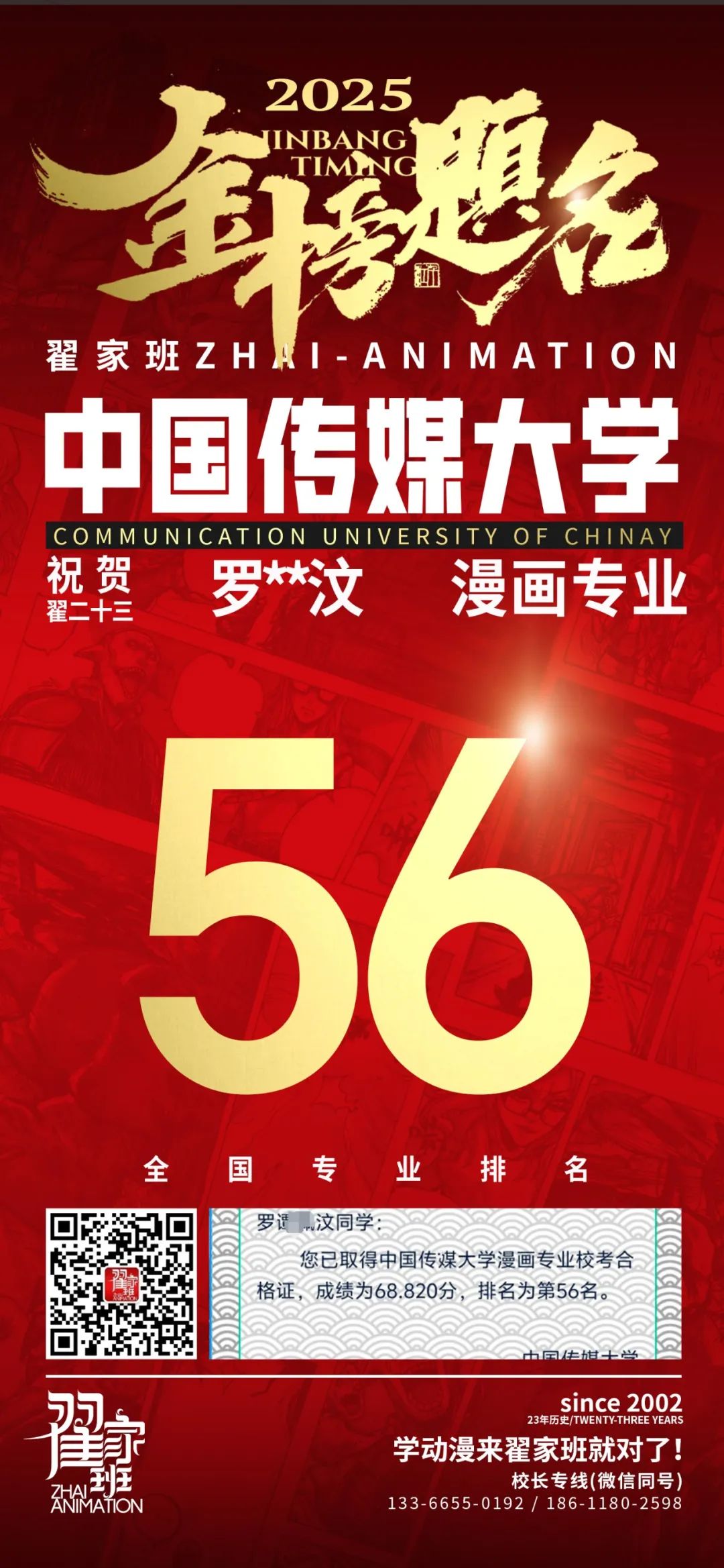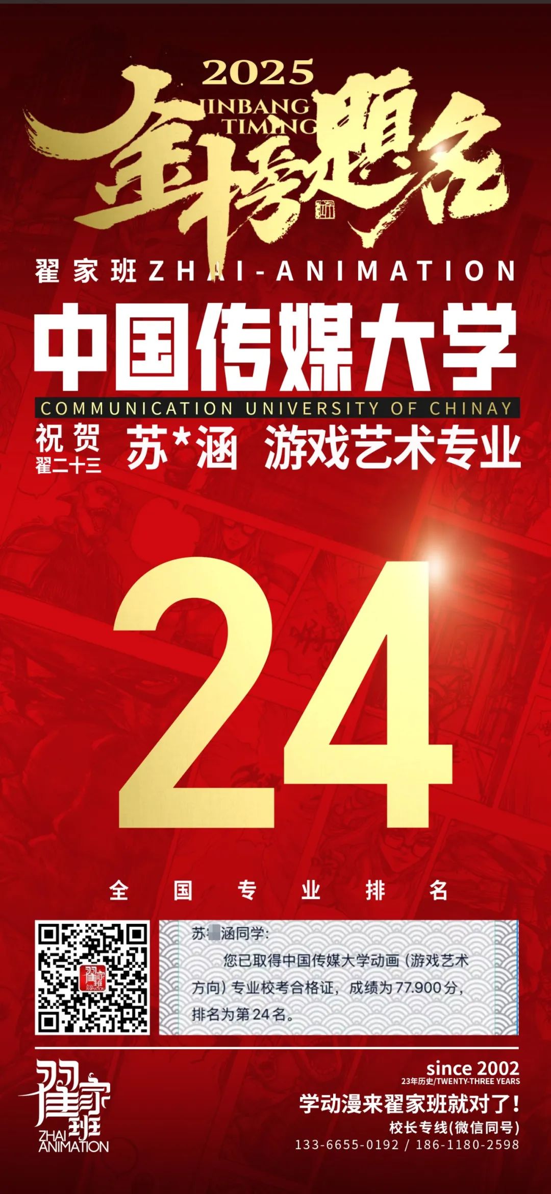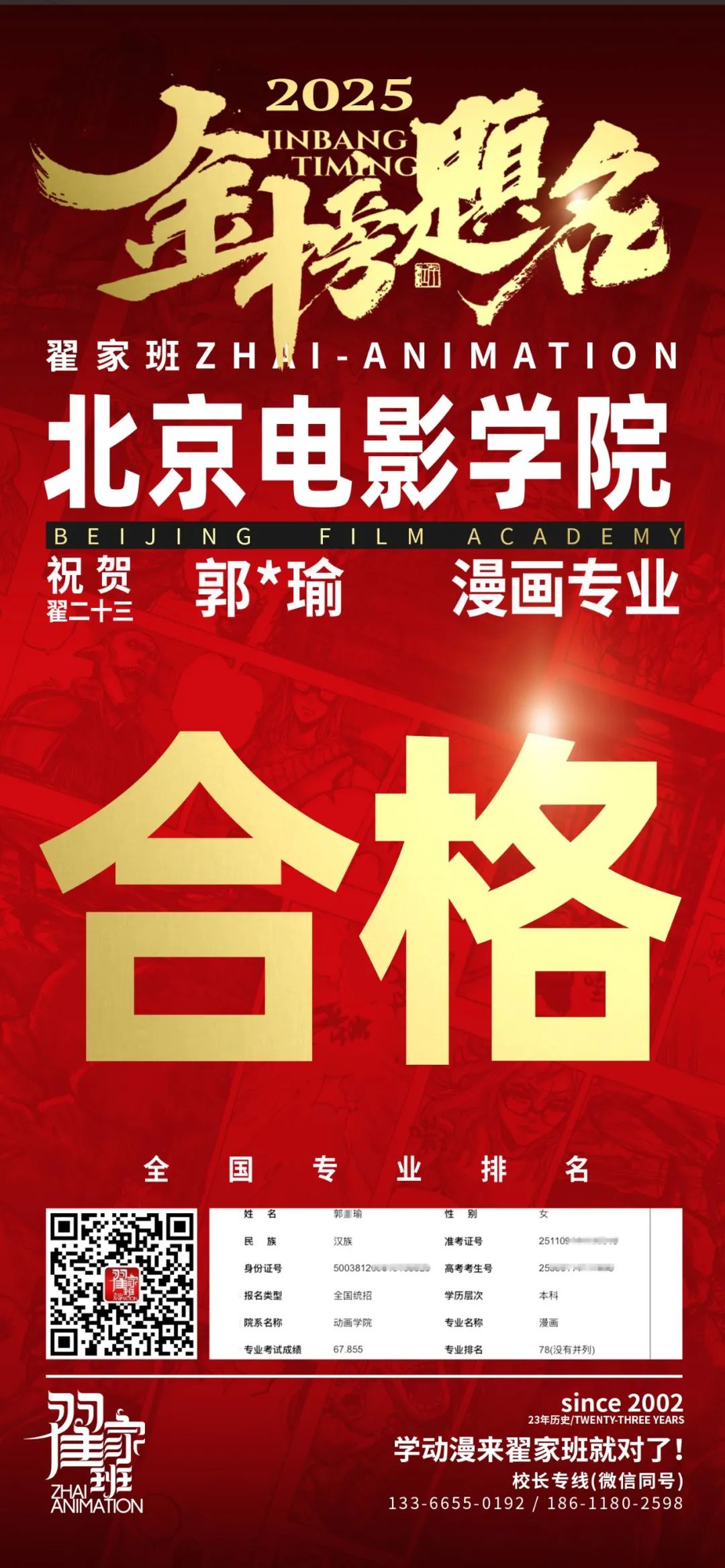 【荣耀战报】2025届动漫翟家班中传&北电校考大捷!