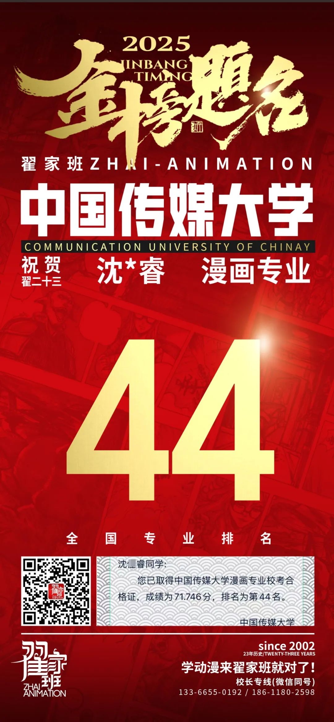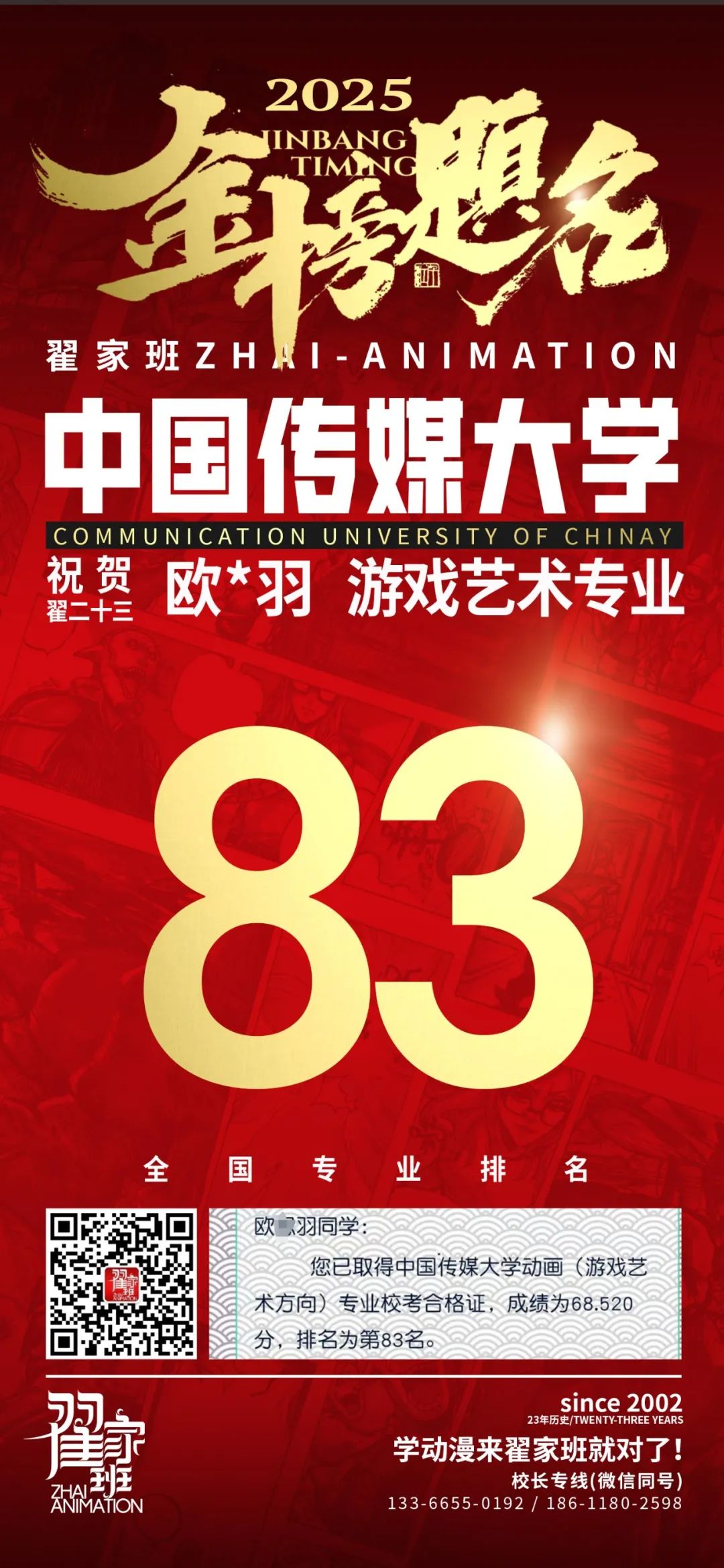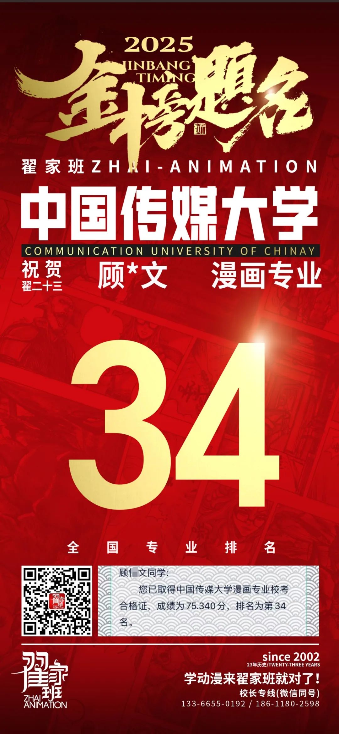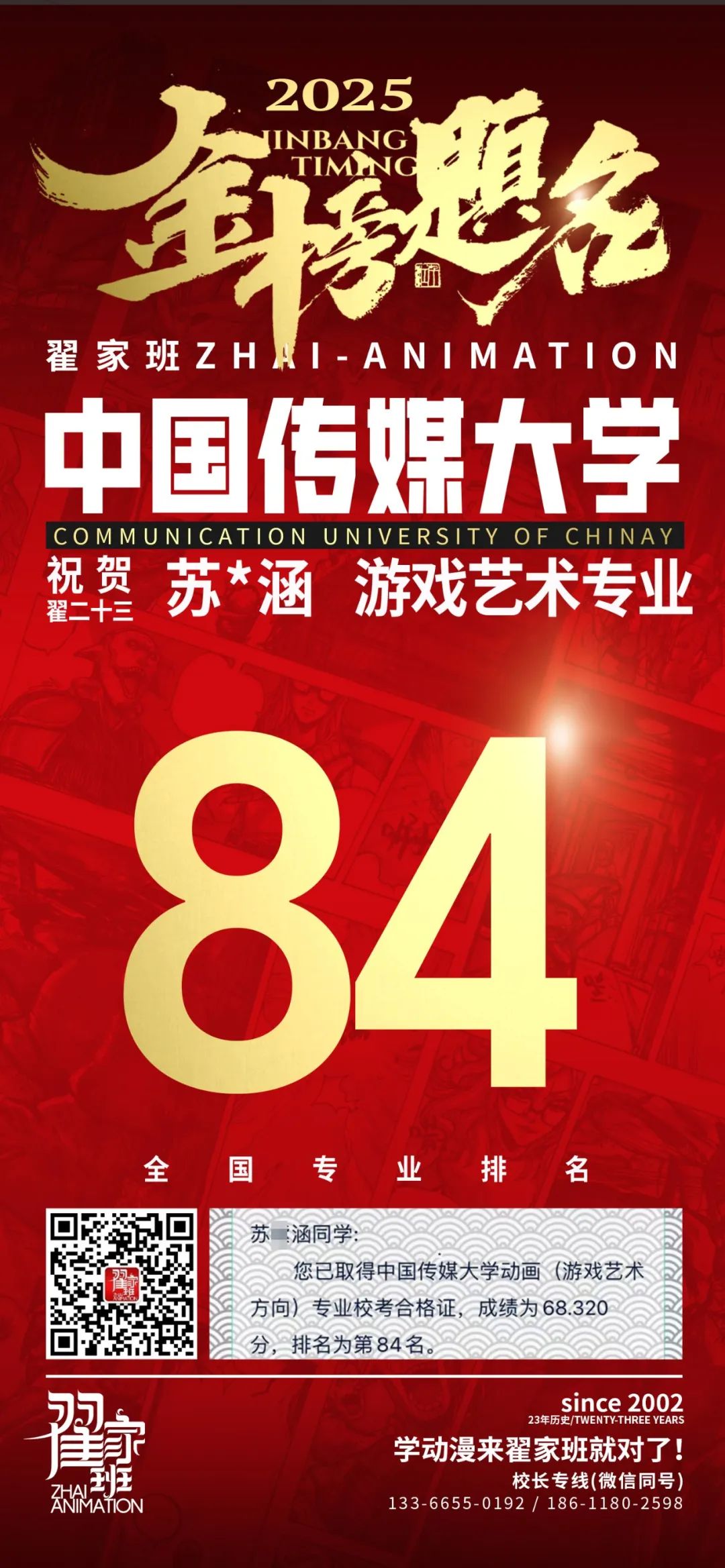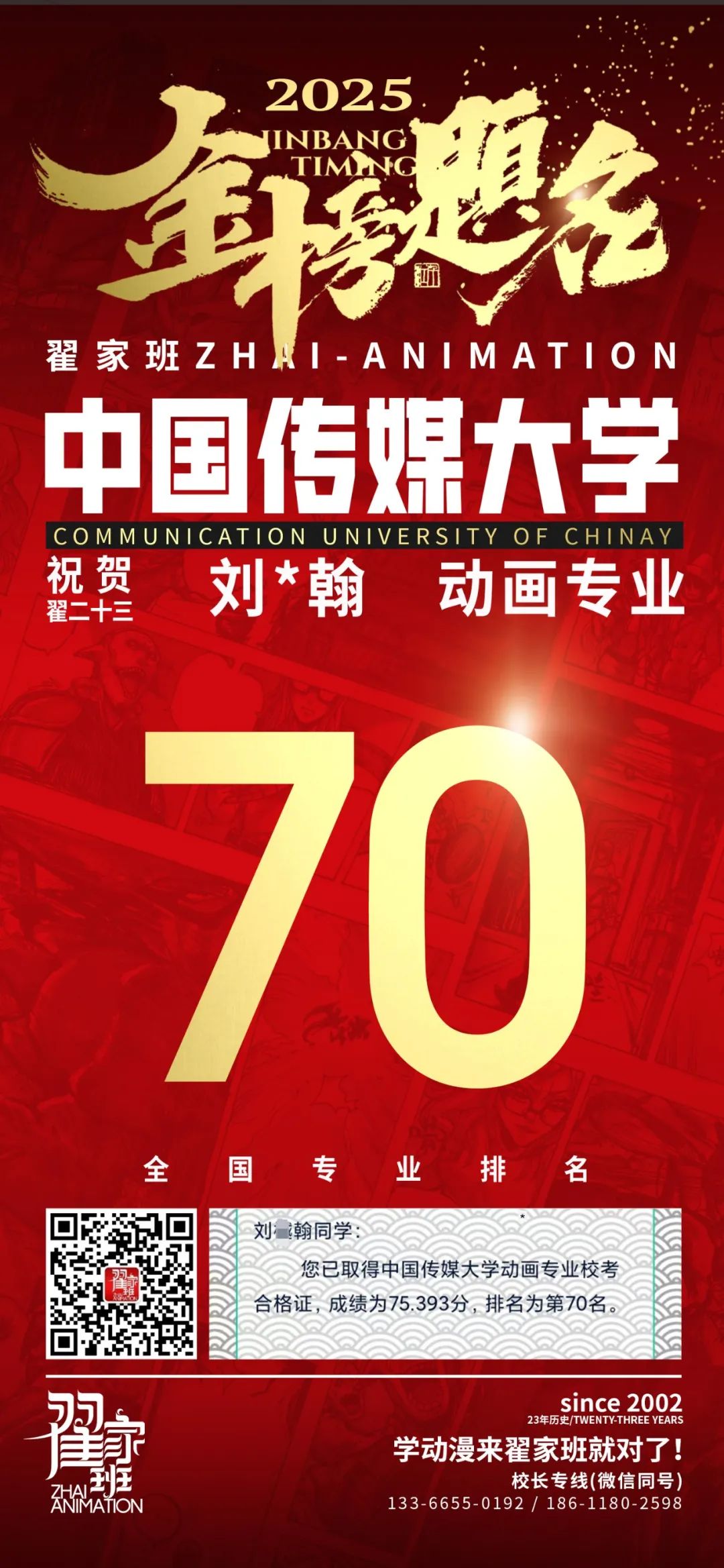 【荣耀战报】2025届动漫翟家班中传&北电校考大捷!