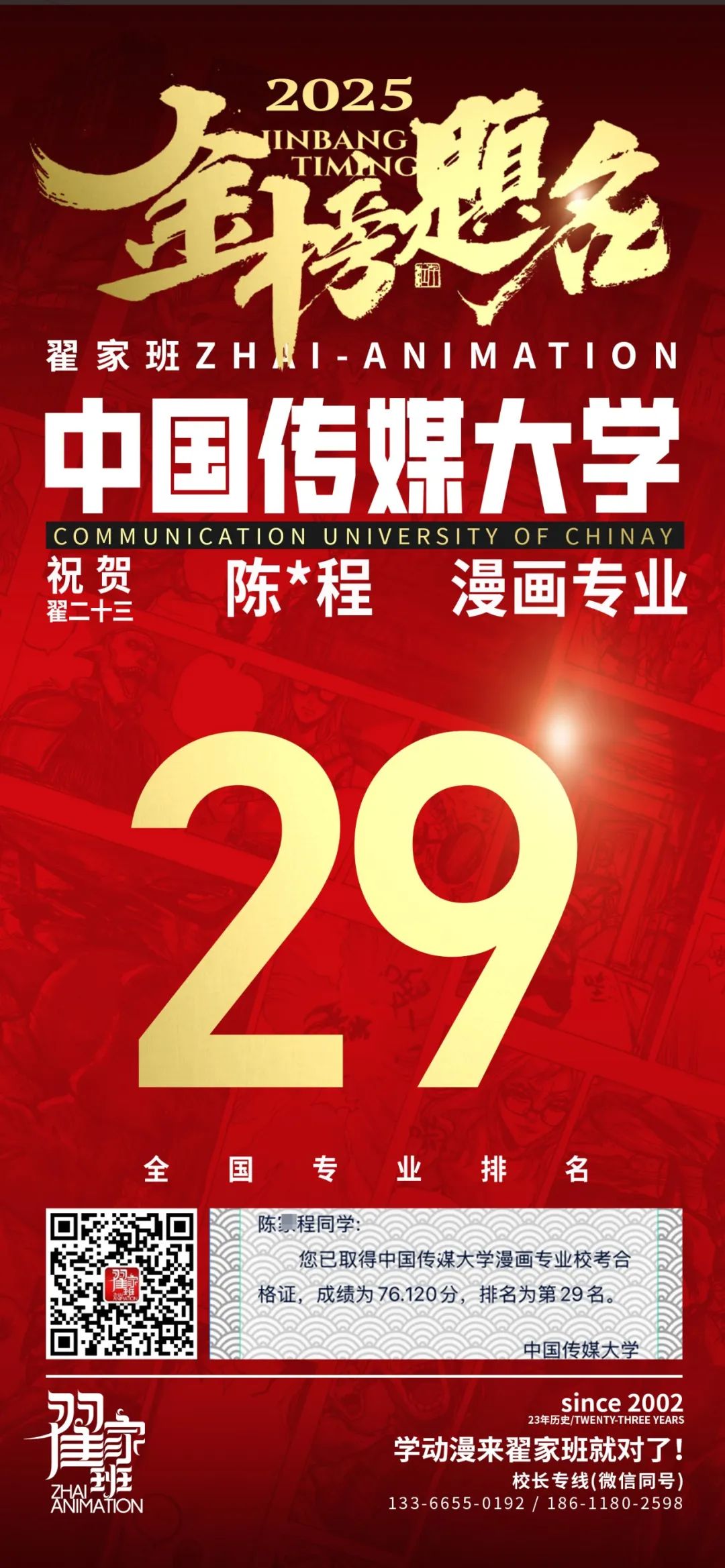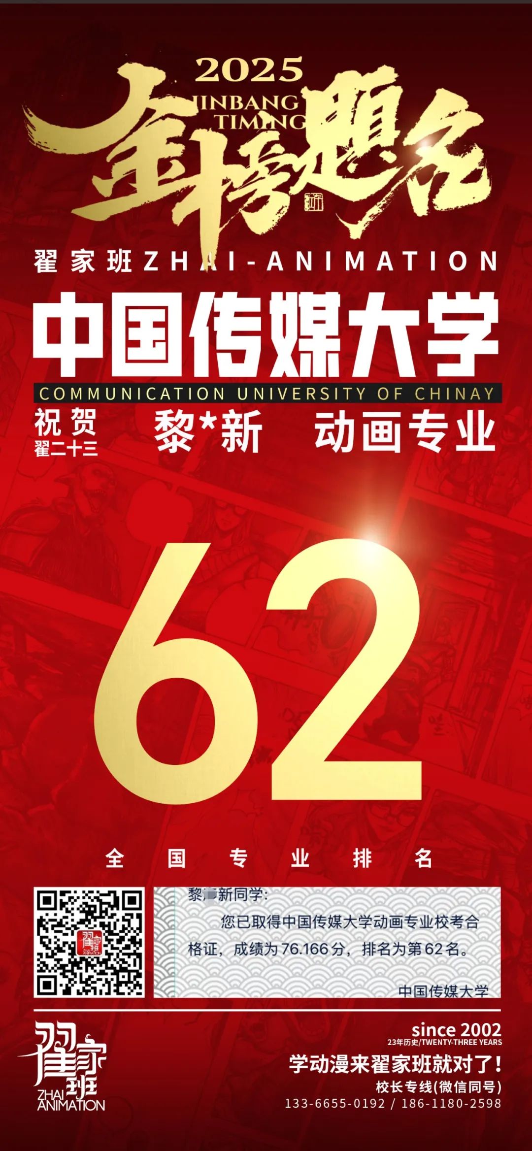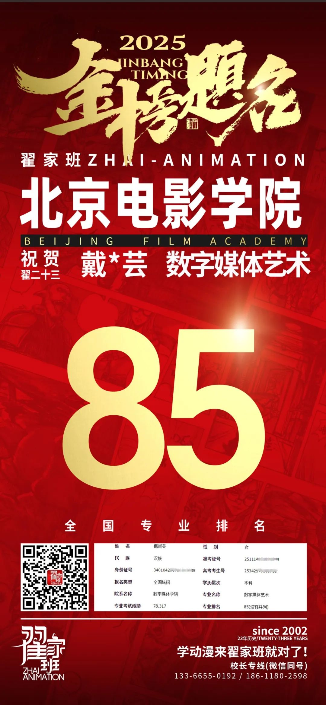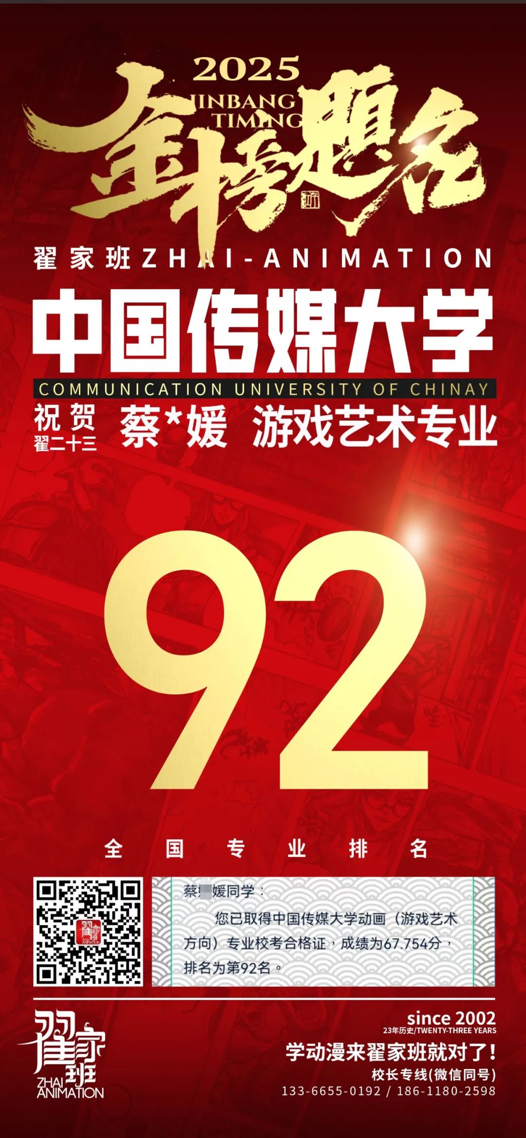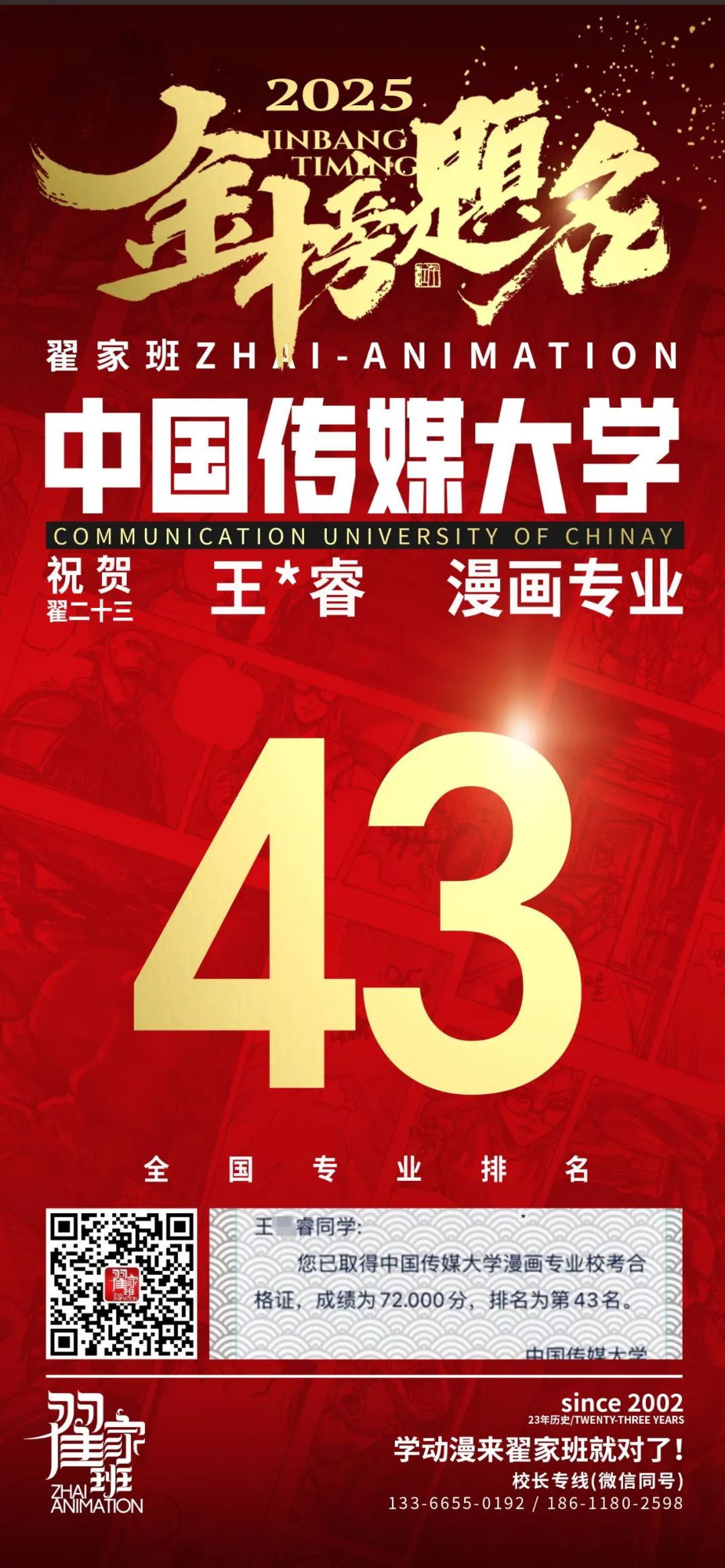 【荣耀战报】2025届动漫翟家班中传&北电校考大捷!