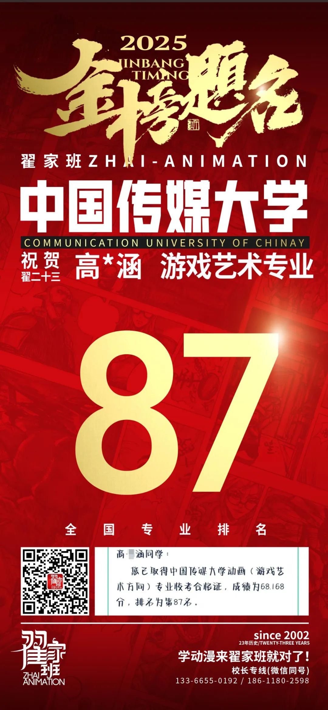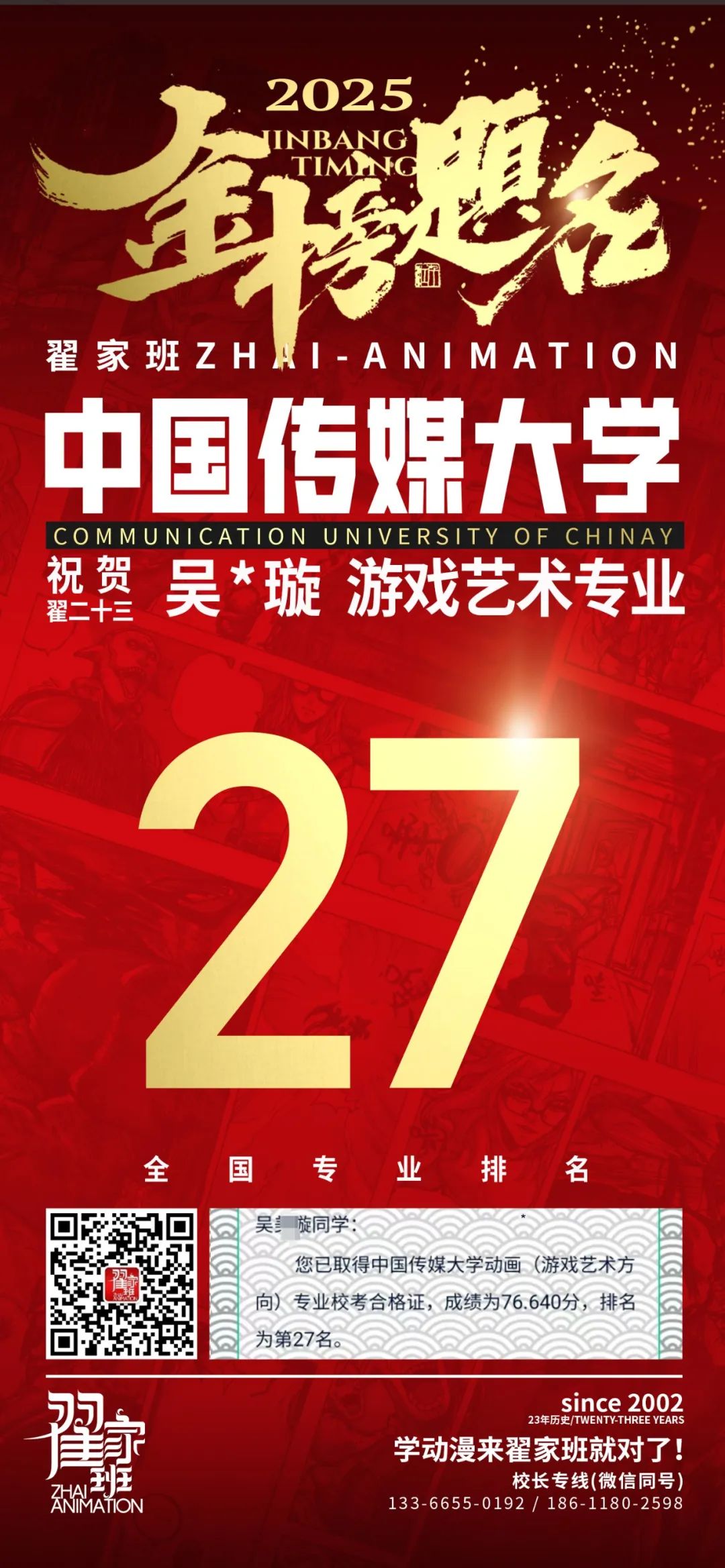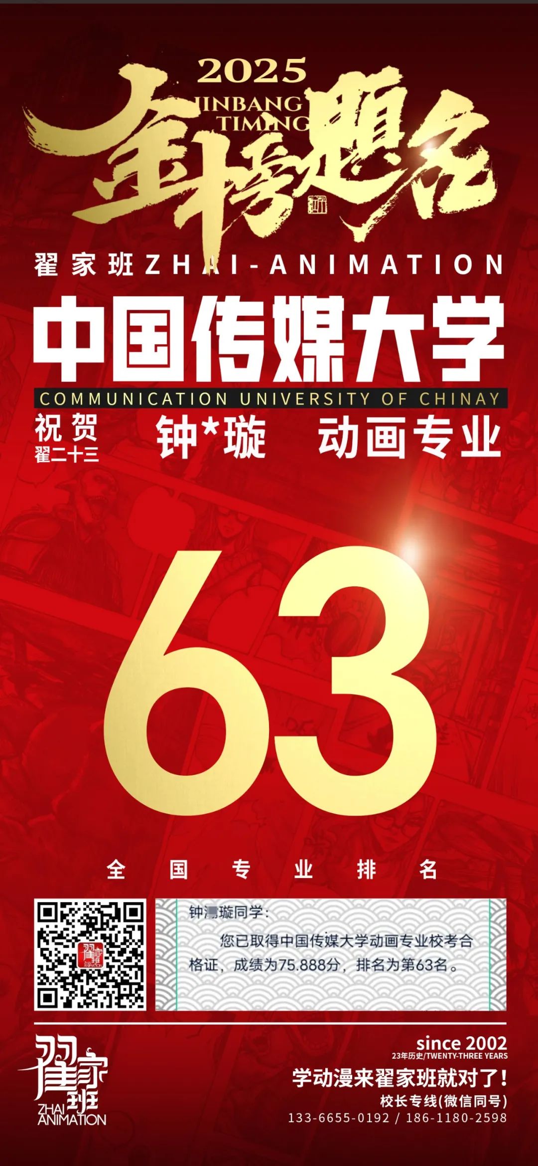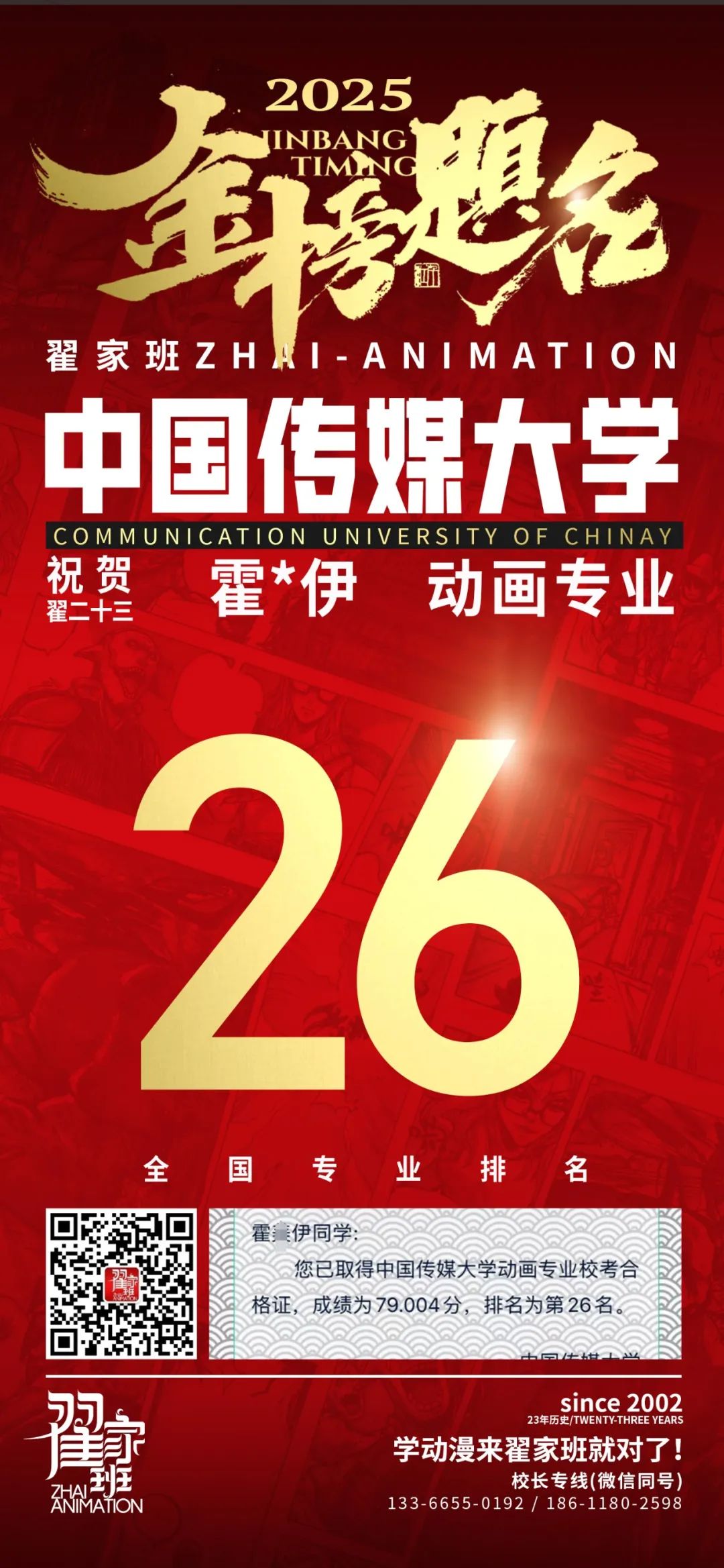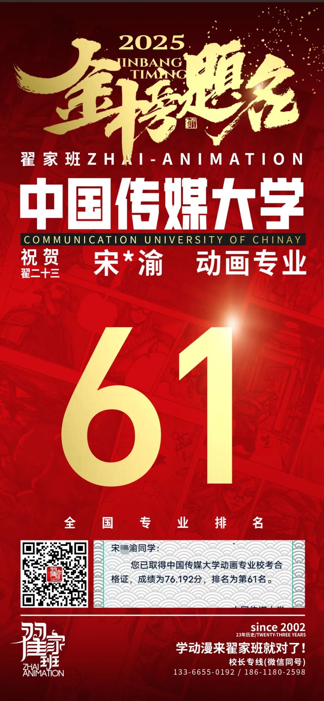 【荣耀战报】2025届动漫翟家班中传&北电校考大捷!
