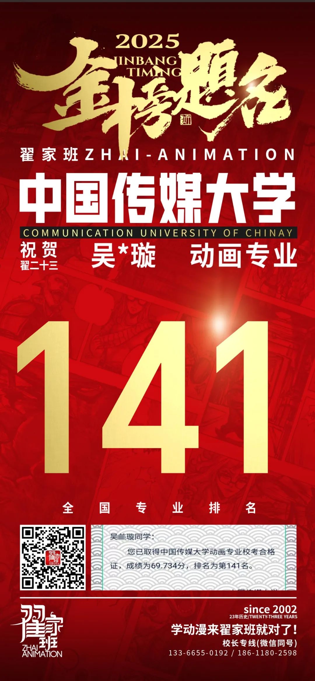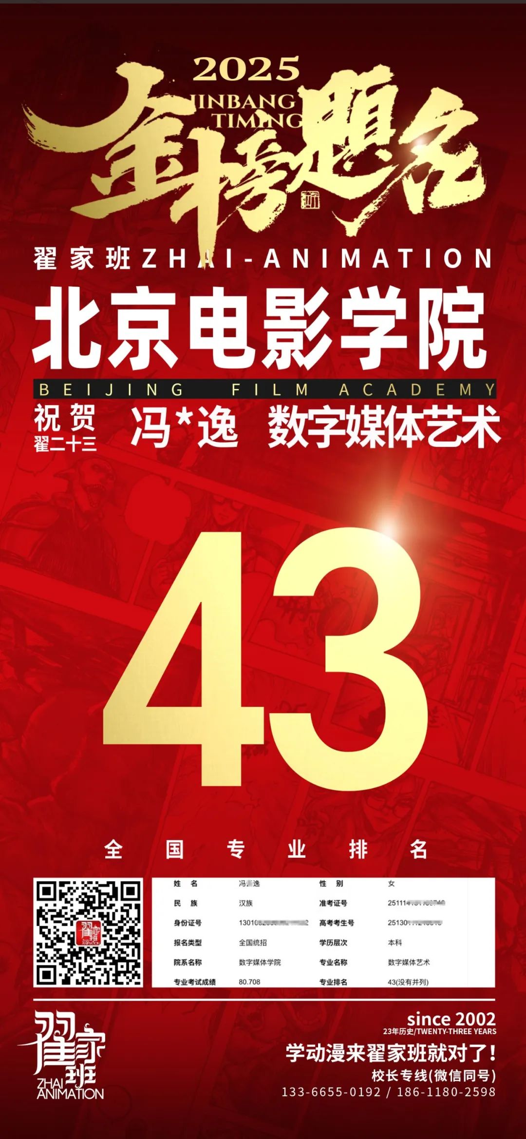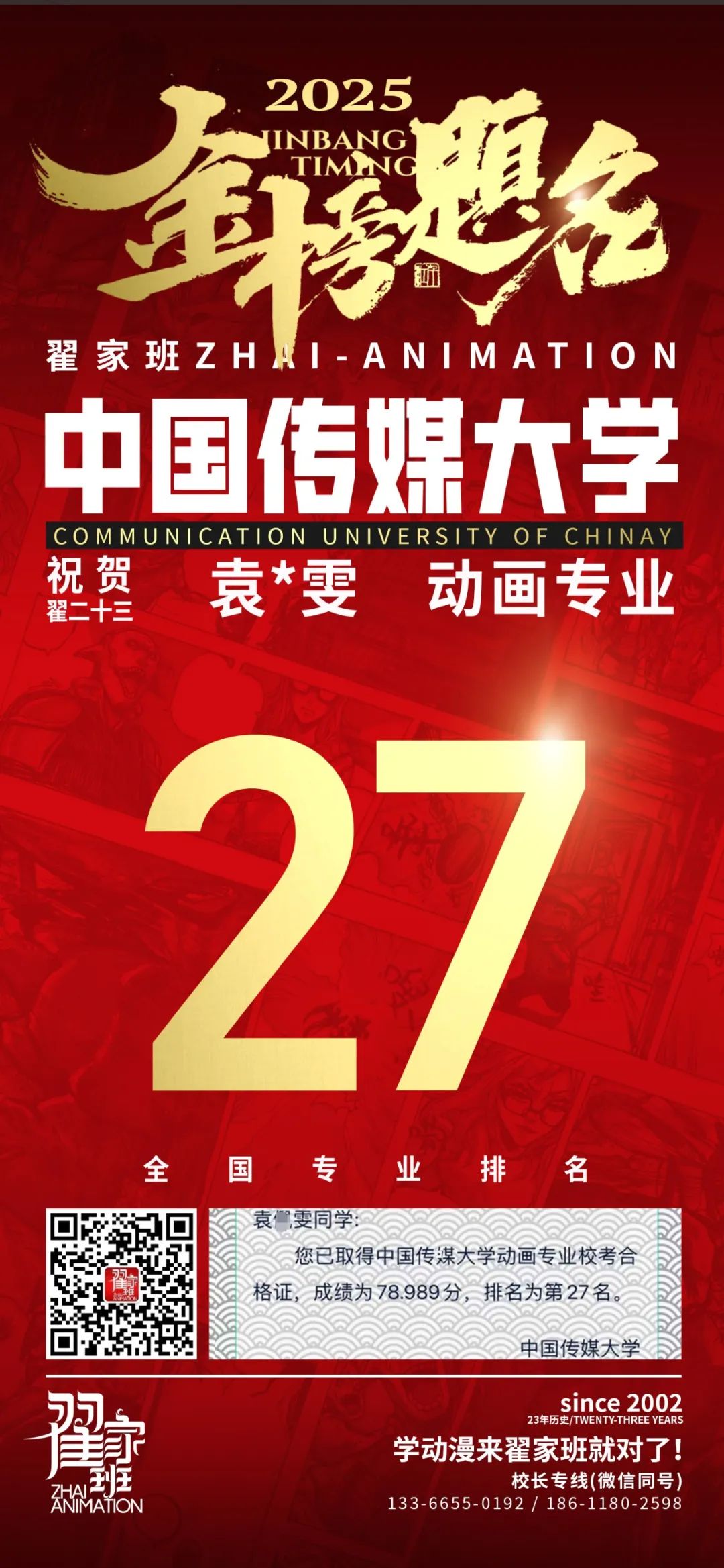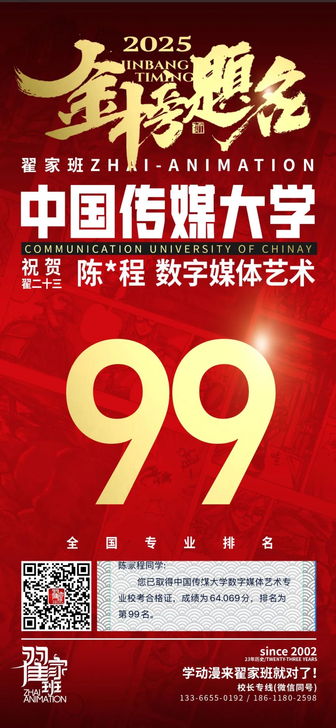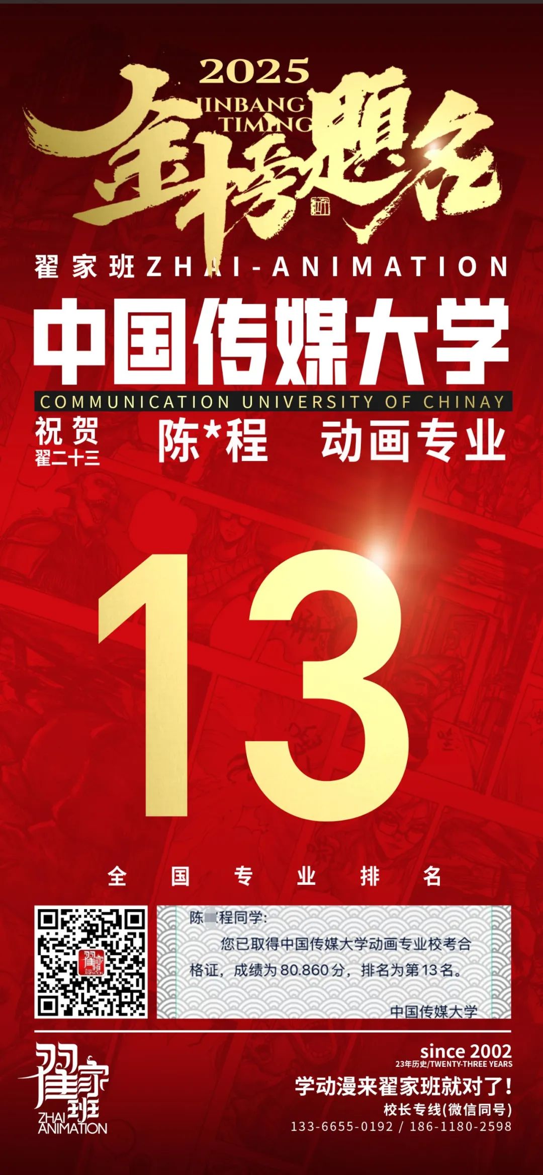【荣耀战报】2025届动漫翟家班中传&北电校考大捷!