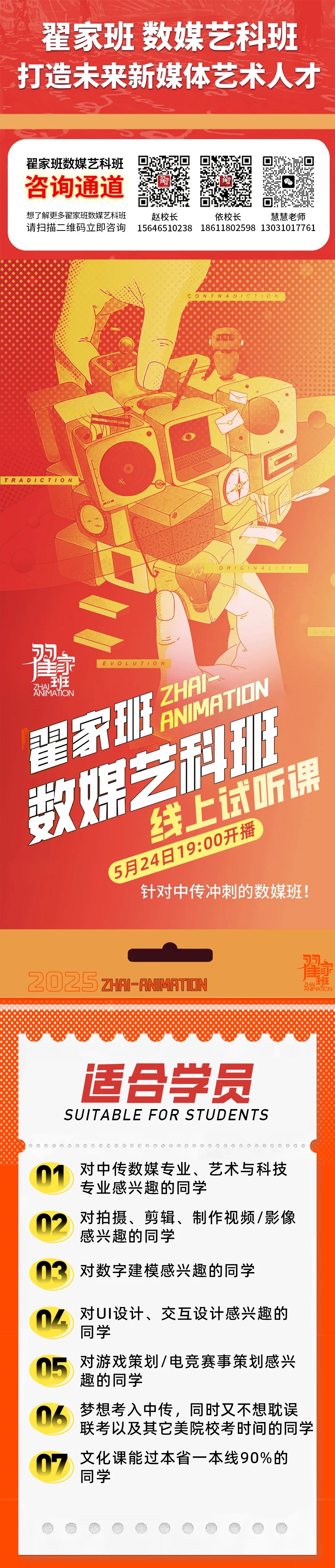 2025年数媒艺科班线上试听课来袭!针对中传冲刺的数媒班