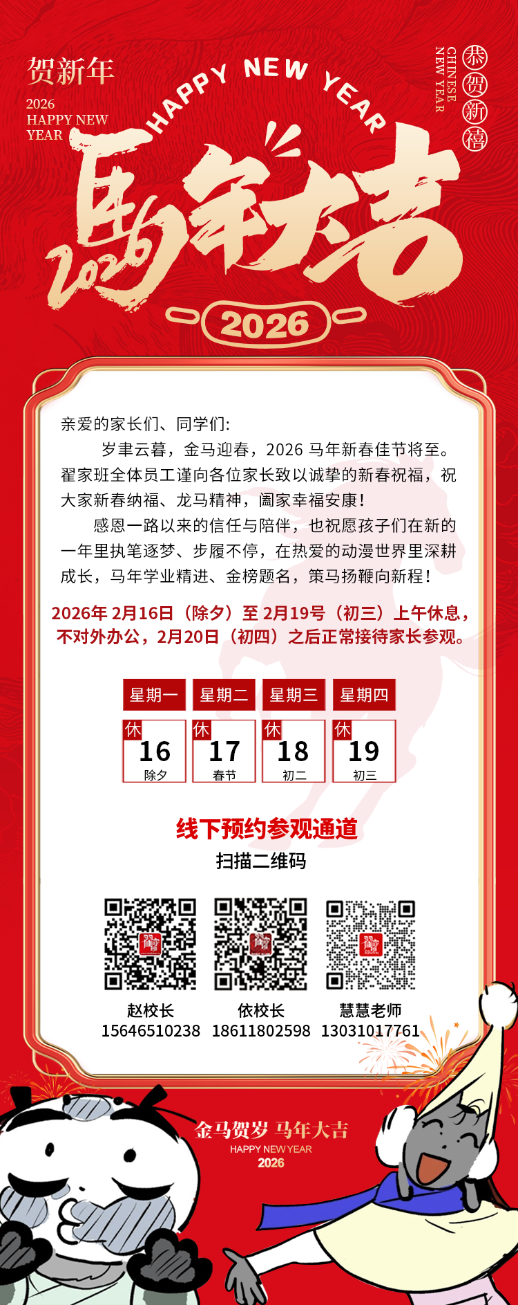 驰骋逐梦 马到功成|翟家班画室2026年春节放假通知