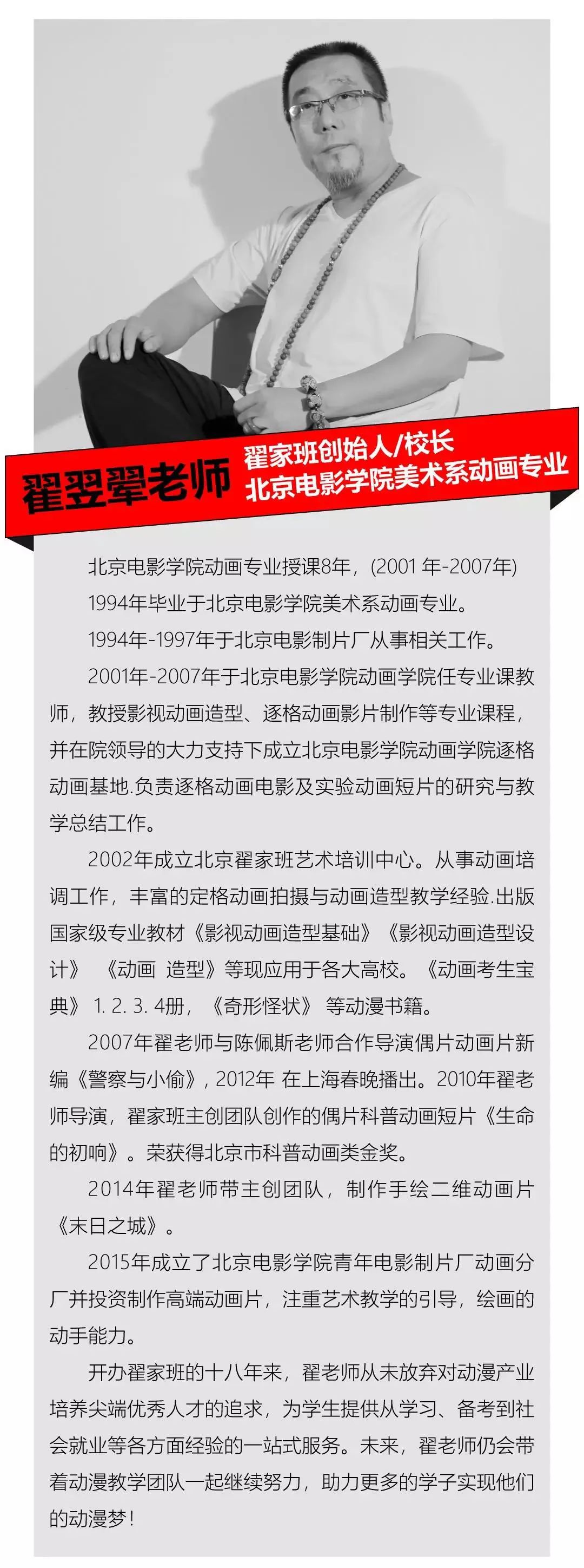 A:翟家班的教学团队是一个集体,由翟老师领导,凝聚了行业大咖授课,动漫专项课老师均来自北京电影学院、中国传媒大学动画学院等顶尖高校,基础课则是中央美术学院优秀毕业生进行授课。